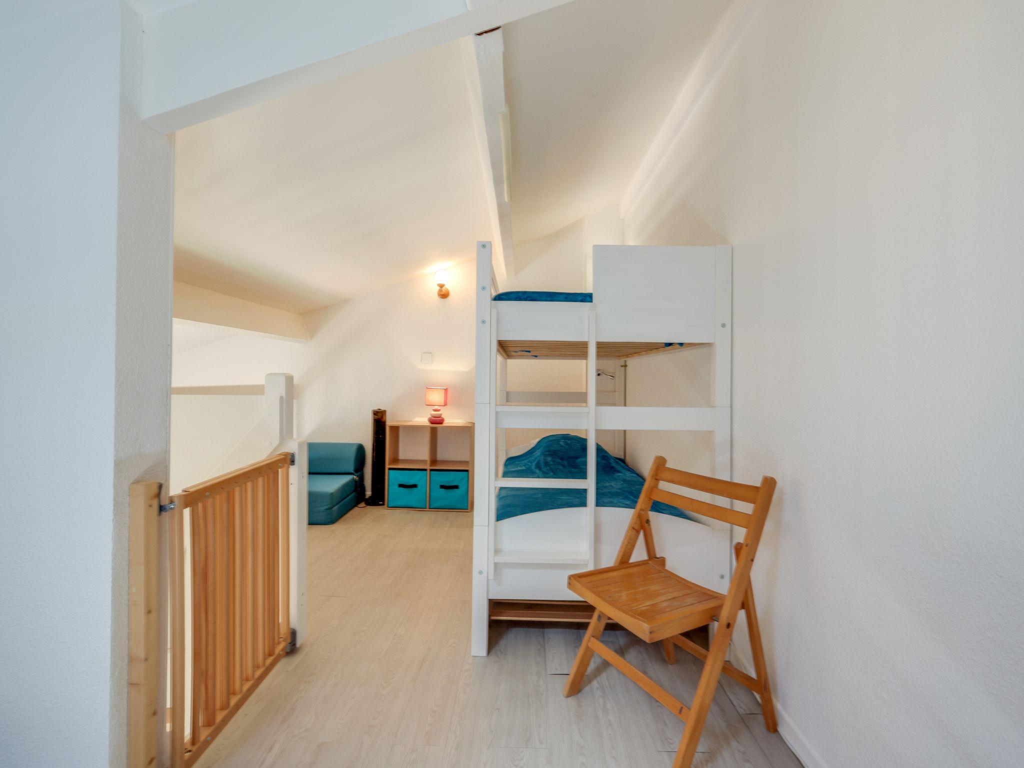 2-room terraced house 35 m2 on 2 levels. Beautiful furnishings: living/dining room with fan. Exit to the terrace. 1 room with sliding door with 1 sofabed (120 cm, length 190 cm), TV (flat screen). Kitchenette (oven, dishwasher, 2 ceramic glass hob hotplates, toaster, microwave, electric coffee machine, Capsules for coffee machine (Senseo) extra) with air conditioning. Bathroom, sep. WC. Upper floor: (steep stair) open gallery with sloping ceilings with 1 x 2 bunk beds (90 cm, length 190 cm), 1 french bed (140 cm, length 190 cm). Terrace 20 m2 partly roofed, south facing position. Terrace furniture, barbecue. Facilities: washing machine, iron, hair dryer. Internet (WiFi, extra). Parking space n 118. Please note: non-smoking house. Smoke alarm. Instead of an enclosed bedroom, some sleeping areas are located in an open-plan area (gallery, alcove, etc.). Offer by a private individual according to Art. 155, IV of CGI. 661710234997