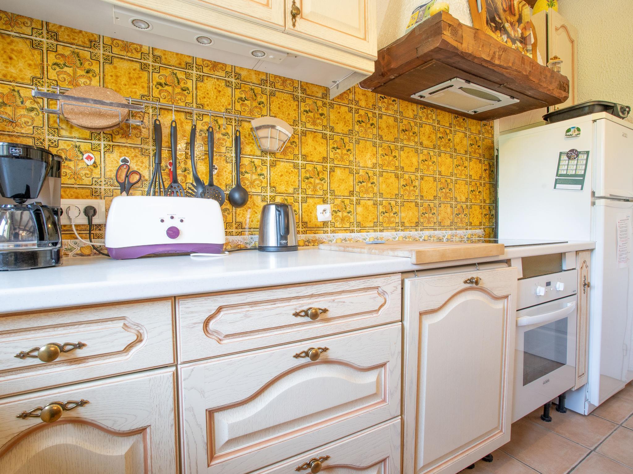 3-room terraced house 50 m2 on 2 levels. Living/dining room with 1 double sofabed (130 cm, length 190 cm), TV, flat screen and DVD. Exit to the terrace. Open kitchen (oven, dishwasher, 4 ceramic glass hob hotplates, toaster, kettle, microwave, freezer, electric coffee machine). Shower/WC. Upper floor: 1 room with 1 french bed (140 cm, length 190 cm). 1 room with 2 beds (90 cm, length 190 cm). Bath/WC. Electric heating. Terrace 30 m2, north-west facing position. Terrace furniture. Facilities: washing machine, iron. Internet (WiFi, extra). Parking at the house. Please note: maximum 1 pet/ dog allowed. TV only FR. Smoke alarm. 83112 000281 QA