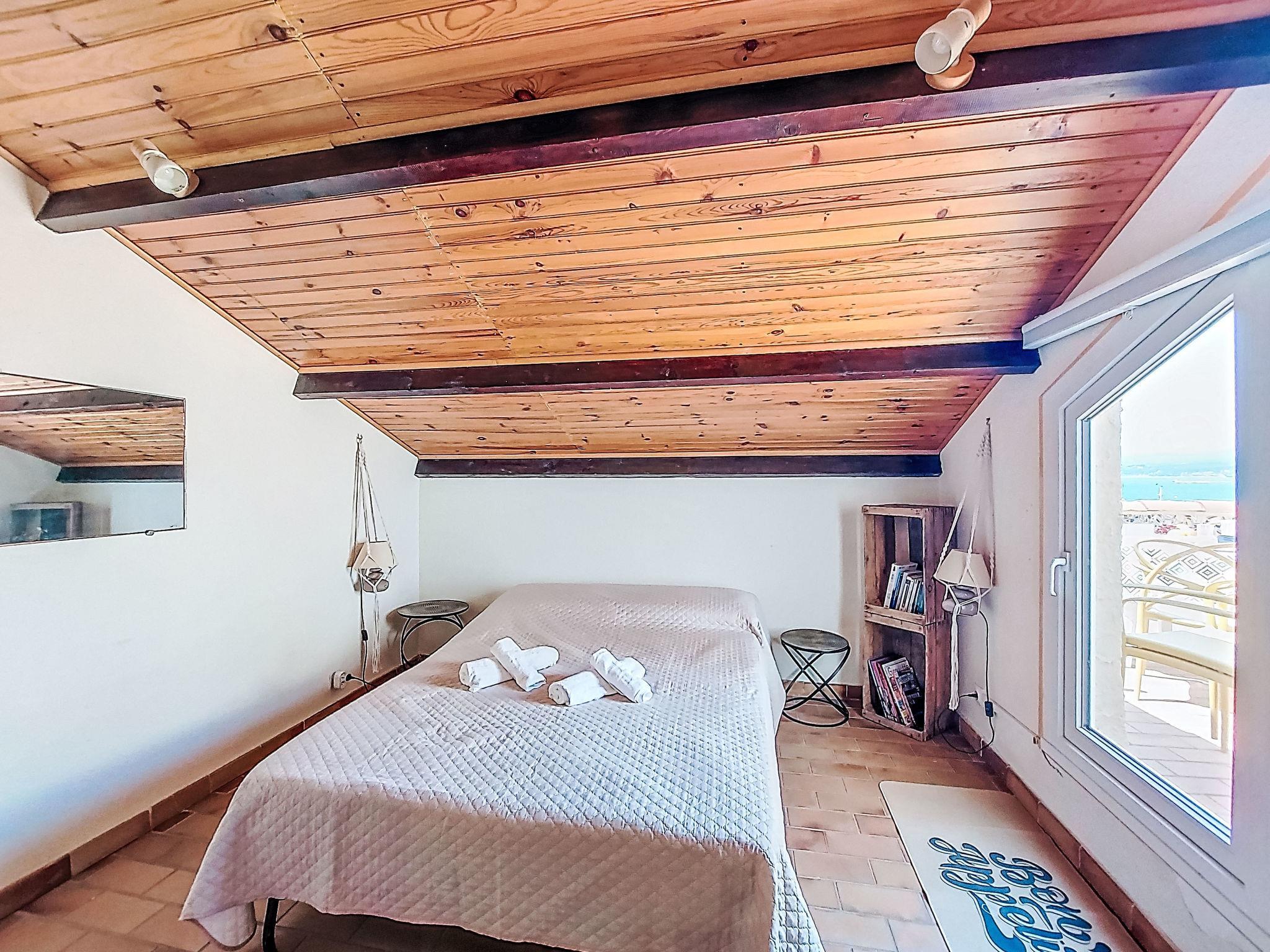 3-room apartment 50 m2 on 2nd floor. With sloping ceilings, comfortable and beautiful furnishings: living/dining room with TV (flat screen). Exit to the terrace. 1 room with sloping ceilings, ceiling height 150 - 200 cm with 1 sofabed (140 cm, length 190 cm). Exit to the terrace. 1 room with sloping ceilings, ceiling height 150 - 200 cm with 1 french bed (140 cm, length 190 cm). Exit to the terrace. Kitchen (mini-oven, dishwasher, 3 ceramic glass hob hotplates, toaster, kettle, microwave, freezer, electric coffee machine, Capsules for coffee machine (Nespresso) extra). Exit to the terrace. Shower, sep. WC. Electric heating. Terrace 12 m2, north-west facing position terrace 9 m2, south-east facing position. Terrace furniture. Panoramic view of the sea and the port. Facilities: washing machine. Internet (WiFi, extra). Parking space n 45. Please note: 1 small pet/ dog allowed. TV only FR. Offer by a private individual according to Art. 155, IV of CGI. 8311200175135