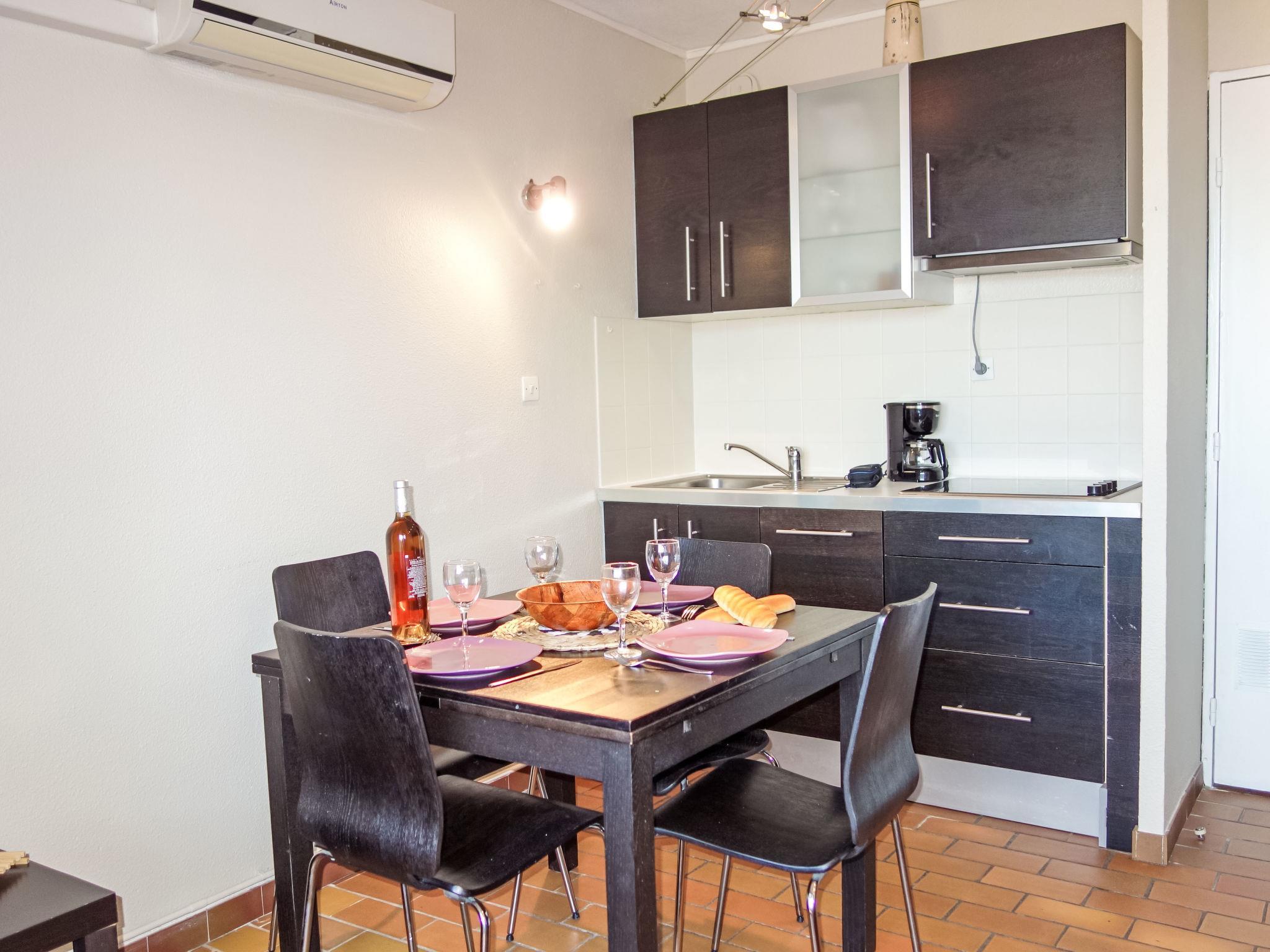 2-room apartment 33 m2 on 2nd floor. Comfortable and beautiful furnishings: living/dining room with 1 double sofabed (140 cm, length 190 cm), TV and air conditioning. Exit to the terrace. 1 room with sliding door with 1 french bed (140 cm, length 190 cm). Exit to the terrace. Kitchenette (oven, 4 ceramic glass hob hotplates, toaster, kettle, microwave, electric coffee machine). Shower/WC. Forced-air heating. Terrace 9 m2, north-west facing position. Terrace furniture, electric barbecue. Facilities: washing machine, dryer. Internet (WiFi, extra). Parking space n 649. Please note: TV only FR. Smoke alarm. 83112 000566 HM