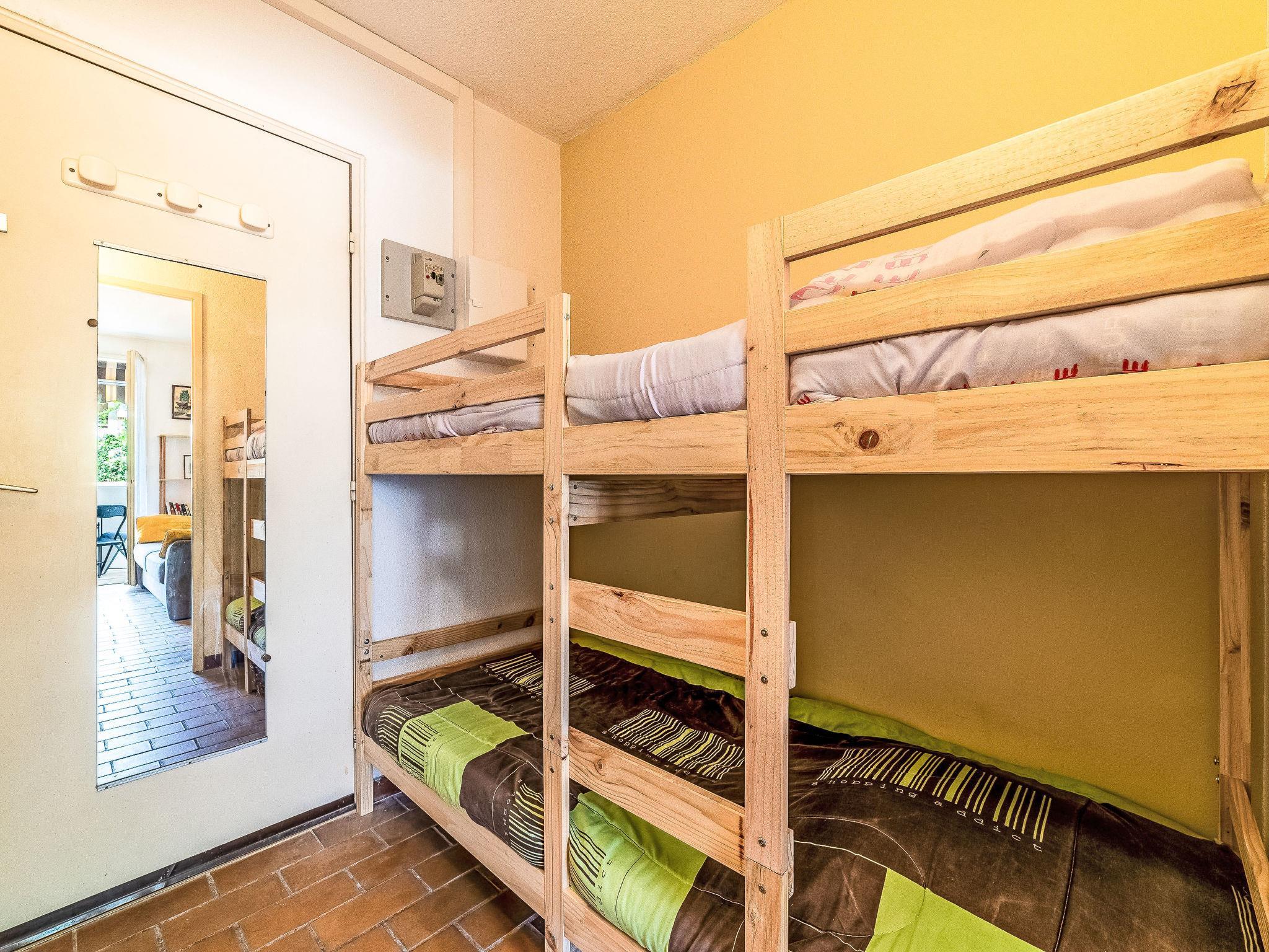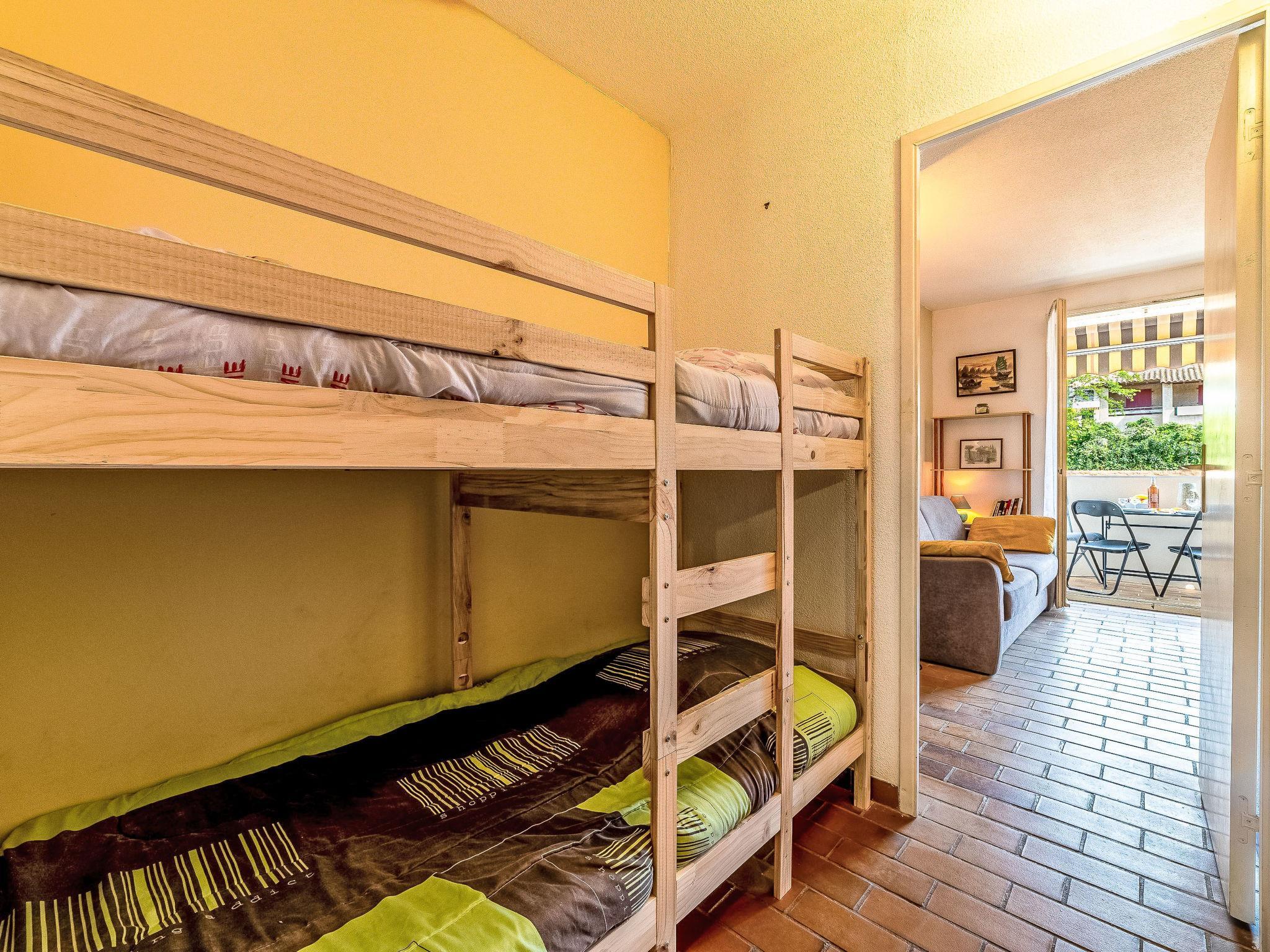 1-room studio 21 m2 on 1st floor, east facing position. Object suitable for 2 adults + 2 children. Practical and beautiful furnishings: entrance hall with 1 x 2 bunk beds (80 cm, length 190 cm). Living/dining room with 1 sofabed (160 cm, length 200 cm), TV (flat screen). Exit to the terrace. Kitchenette (2 hot plates, toaster, kettle, freezer, electric coffee machine, combination microwave). Shower/WC. Air-conditioning, forced-air heating. Terrace 5 m2, roofed, east facing position. Terrace furniture. Facilities: washing machine. Internet (WiFi, free). Parking space n 572. Please note: apartment carpark side. Non-smokers only. TV only FR. Smoke alarm. Offer by a private individual according to Art. 155, IV of CGI. 83112001457RH
