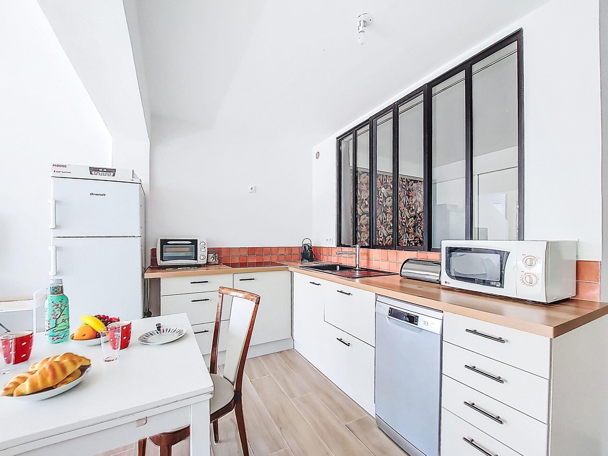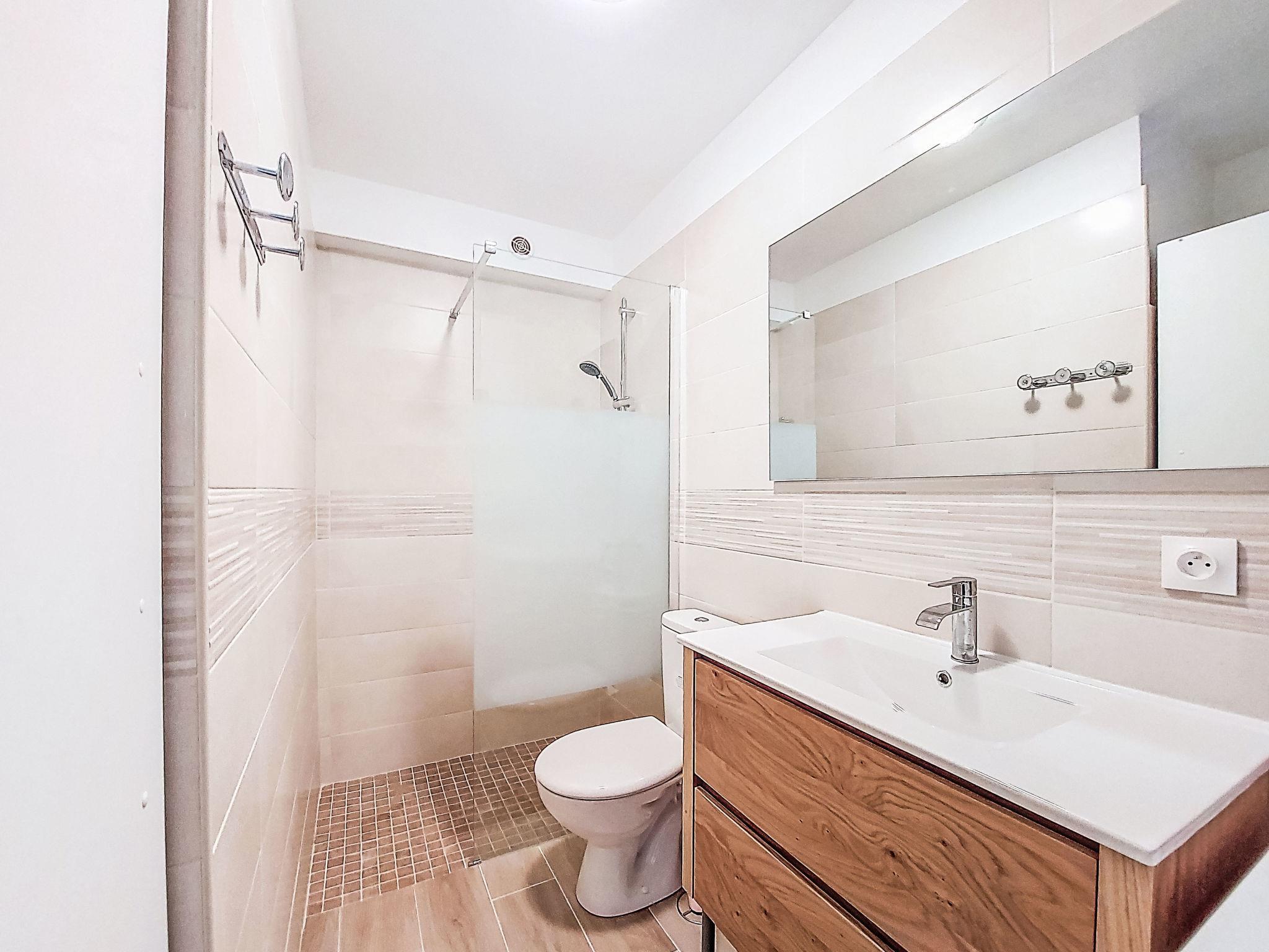 2-room apartment 35 m2, on the ground floor. Bright, comfortable and beautiful furnishings: living/dining room with 1 double sofabed (140 cm, length 200 cm), TV (flat screen), air conditioning. Exit to the terrace. 1 room with 1 french bed (140 cm, length 190 cm). Kitchenette (mini-oven, dishwasher, 3 induction hot plates, toaster, kettle, microwave, electric coffee machine). Shower/WC. Electric heating. Terrace 25 m2, south-east facing position. Terrace furniture, electric barbecue. Facilities: washing machine. Internet (WiFi, extra). Please note: non-smokers only. 1 small pet/ dog allowed. TV only FR. Smoke alarm. Offer by a private individual according to Art. 155, IV of CGI. 83112001795QC