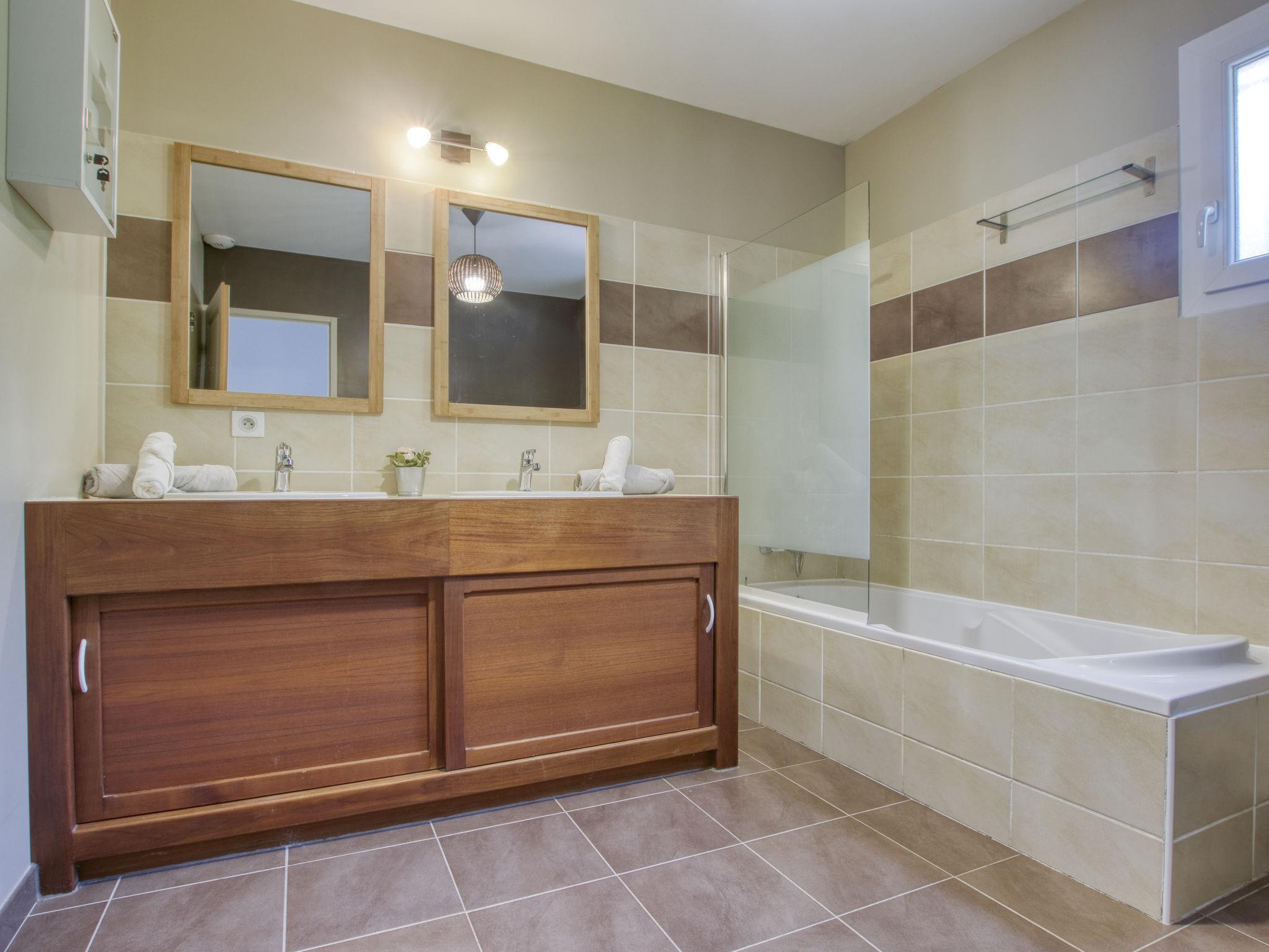 4-room house 90 m2 on 2 levels. Comfortable and beautiful furnishings: living/dining room with TV (flat screen), air conditioning. Exit to the terrace. Open kitchen (oven, dishwasher, 2 induction hot plates, 2 gas rings, toaster, kettle, microwave, freezer, electric coffee machine, Capsules for coffee machine (Nespresso) extra). Upper floor: 1 room with 1 double bed (160 cm, length 200 cm), TV and fan. 1 room with 1 double bed (1 x 140 cm, length 200 cm), fan. 1 room with 1 bed (140 cm, length 200 cm), fan. Bath/WC. Terrace 20 m2. Terrace furniture, barbecue. Facilities: washing machine, iron, mosquito net. Internet (WiFi, free). Parking (fenced 2 cars). Please note: non-smoking house. TV only FR. Smoke alarm. Offer by a private individual according to Art. 155, IV of CGI. 831120012800X