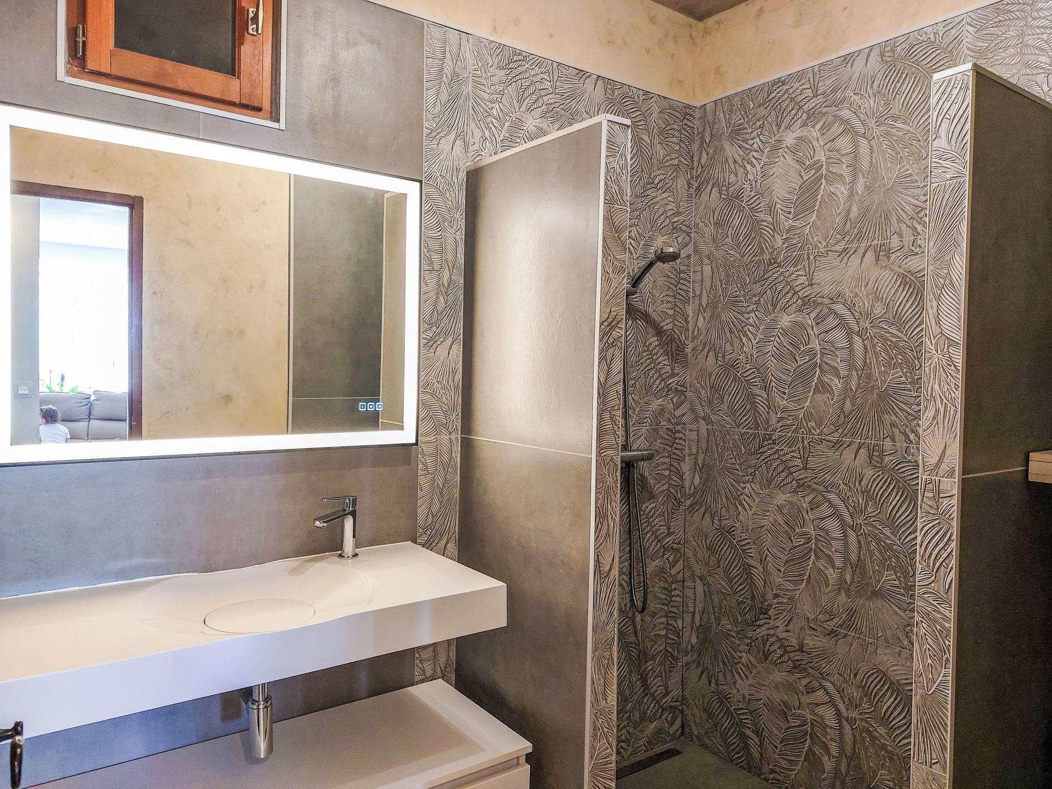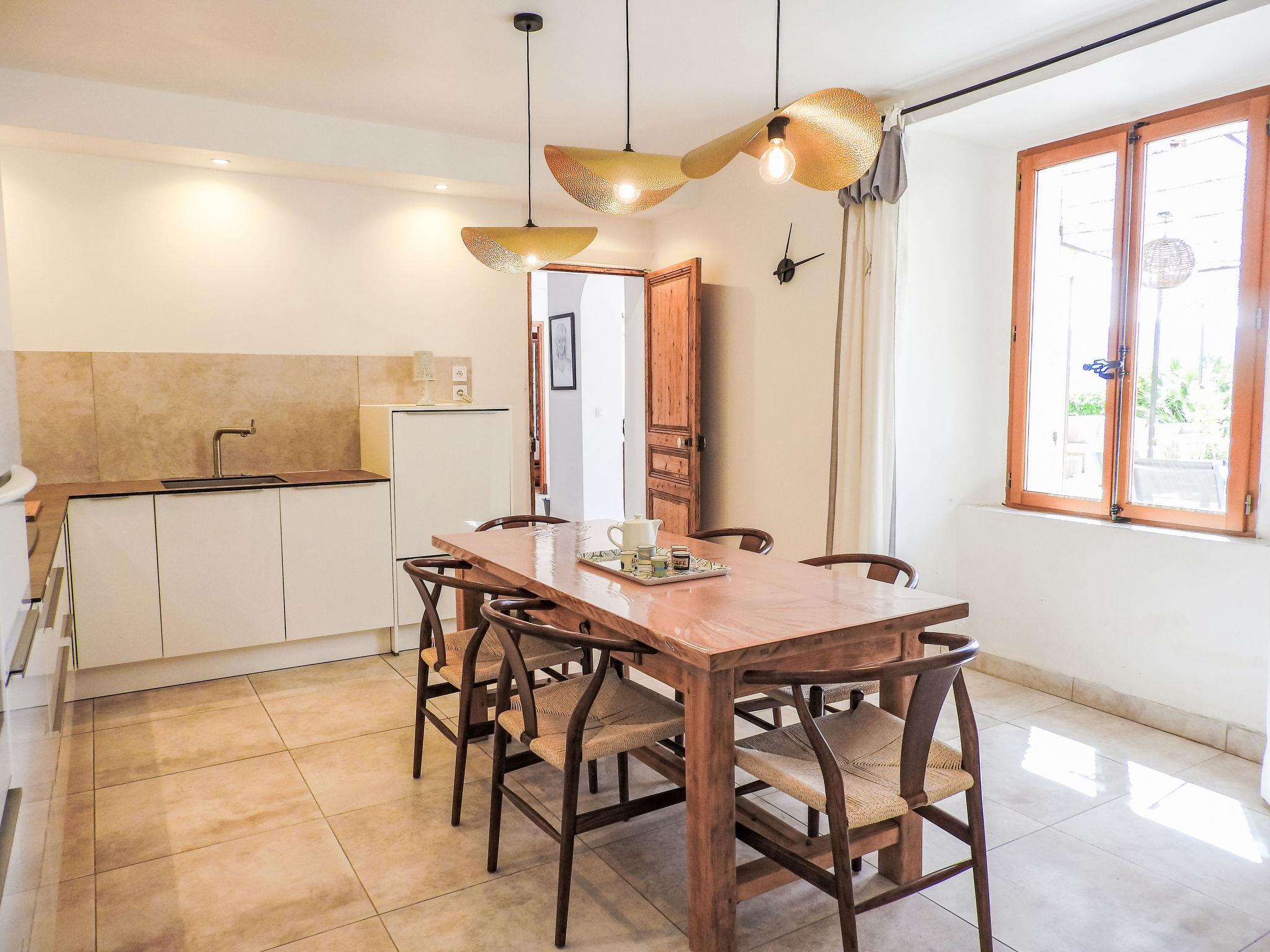 "La Bastide Neuve", 5-room apartment 100 m2, on the ground floor. Beautiful and cosy furnishings: living room with open-hearth fireplace (only for decoration), satellite TV and wood-burning stove. Exit to the terrace. 1 room with 1 french bed (160 cm). Exit to the terrace. 1 room with 1 french bed (160 cm). 1 room with 2 beds. Studio with 1 french bed (160 cm), shower/WC. Kitchen (oven, dishwasher, 5 gas rings, toaster, kettle, microwave, freezer, electric coffee machine) with dining table. Shower, sep. WC. Terrace. Terrace furniture, barbecue, deck chairs (6). Beautiful view of the garden and the countryside. Facilities: washing machine, children's high chair, baby cot. Internet (WiFi, free). Please note: one double bedroom is outside the apartment. Smoke alarm. No internal connecting door between the separated properties. When there are less than the maximum number of guests staying at the property, not all of the bedrooms will be available for use. 83112000399NQ