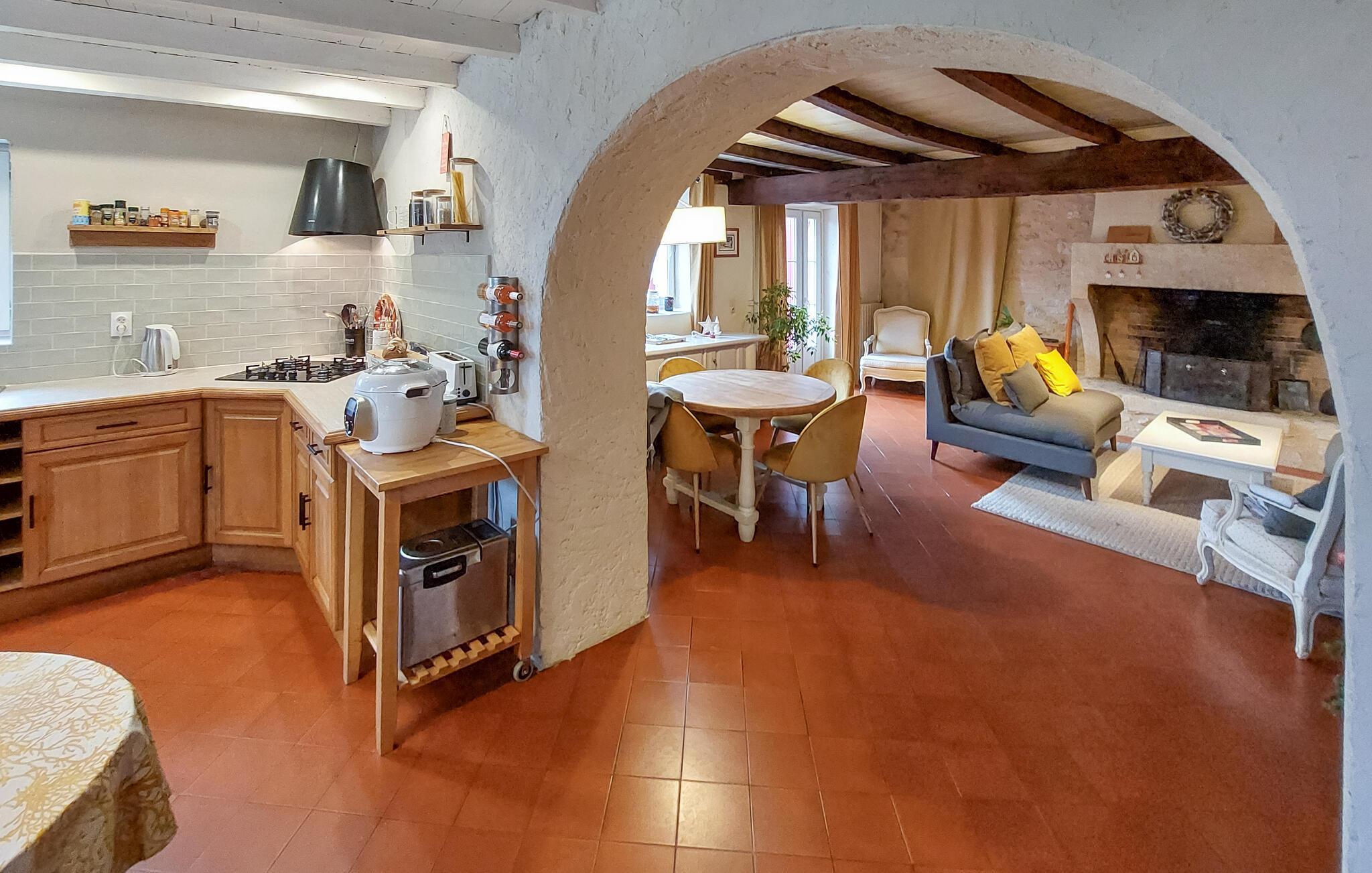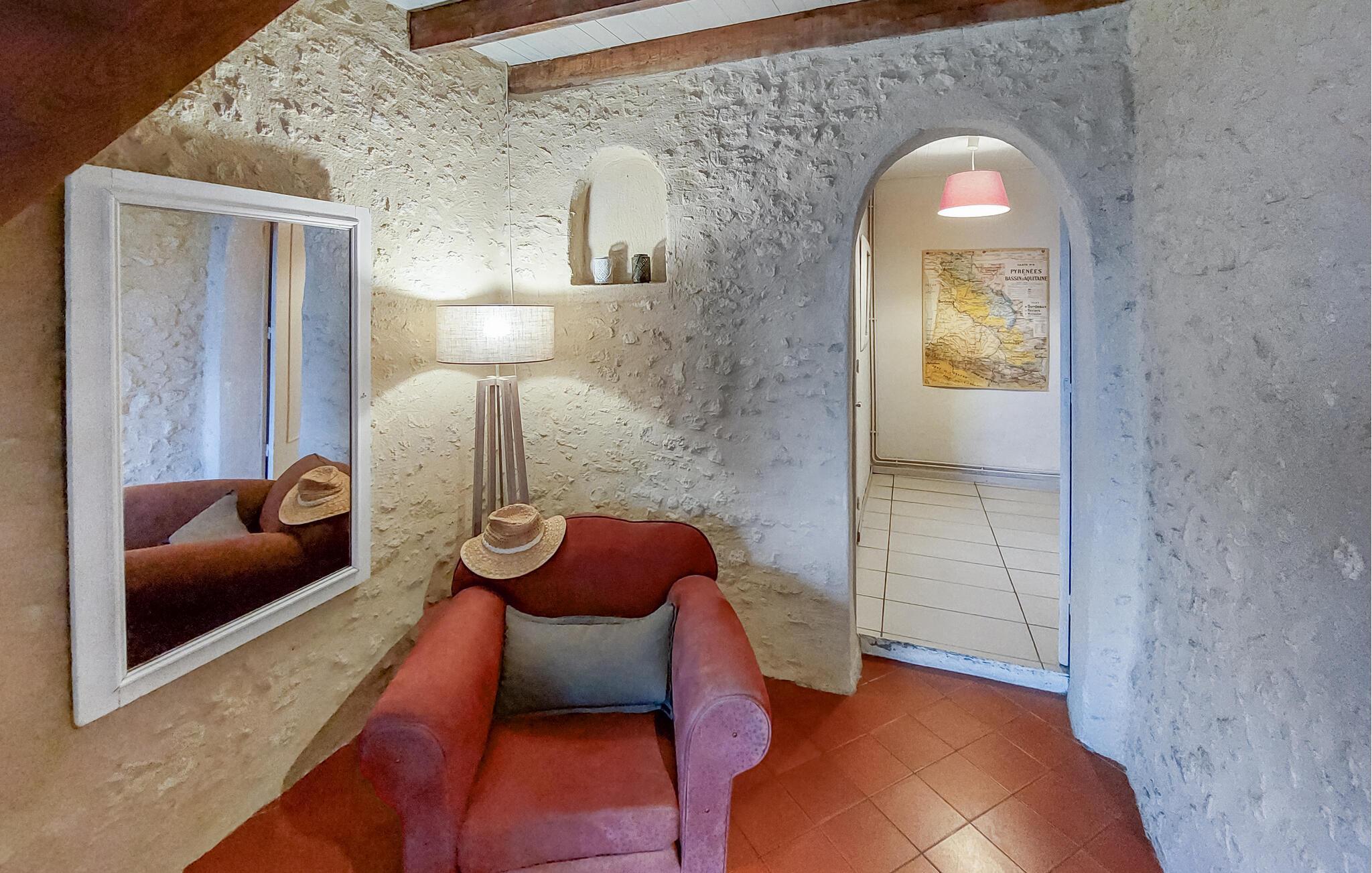 I dette store feriehus kan I se frem til en særlig boligoplevelse, der kombinerer de autentiske stenvægge med en moderne indretning og et stilrendt design. Huset byder på en masse komfort og gode faciliteter, hvor I ikke kan undgå at få en fantastisk ferie. Mix en lækker drink og nyd den i sofaen ved den åbne pejs, inden I giver jer i kast med et hyggeligt fælles madlavningsprojekt i det veludstyrede køkken.