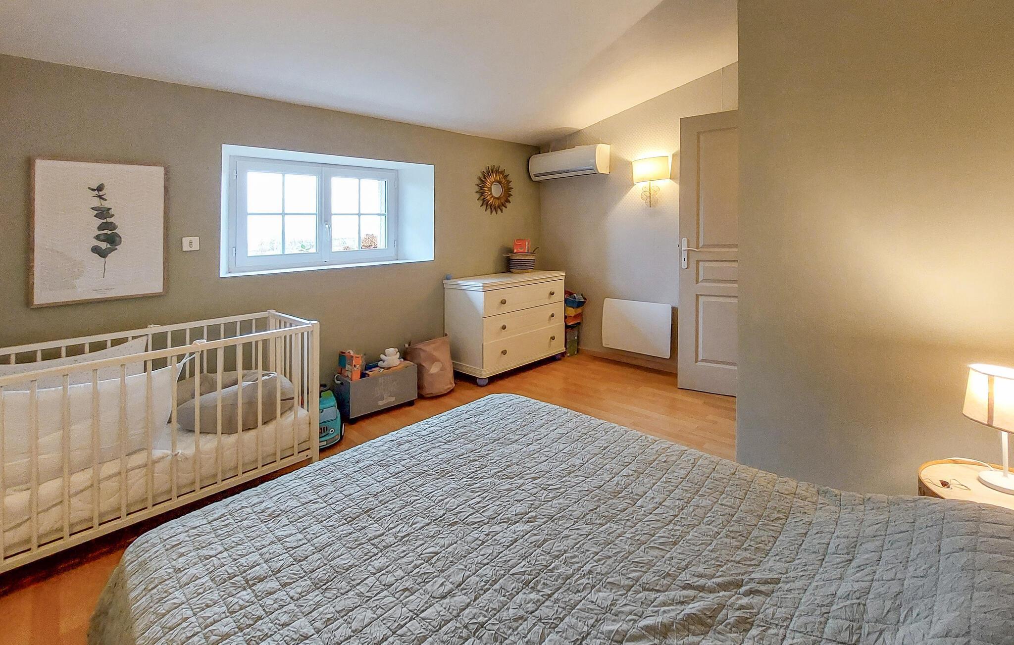 Huset ligger i rolige omgivelser på landet, der er med til at gøre haven til en privat oase af fred. Bad i poolen og lad jer lufttørre i solen, mens børnene spiller bold i haven.