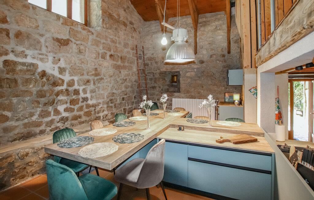 Dette autentiske, luksuriøse hus nær Saint-Étienne-de-Serre, omgivet af egetræer, kastanjer og hassel, byder på en fredfyldt oase for familier eller grupper. Den hyggelige indretning med ædle materialer som træ, sten og smedejern skaber en unik og indbydende atmosfære. Slap af i det norske bad eller på panoramaterrassen, hvor I kan nyde udsigten over Ardèche-bjergene og helt til Alperne – her får I naturens skønhed i absolut privatliv.