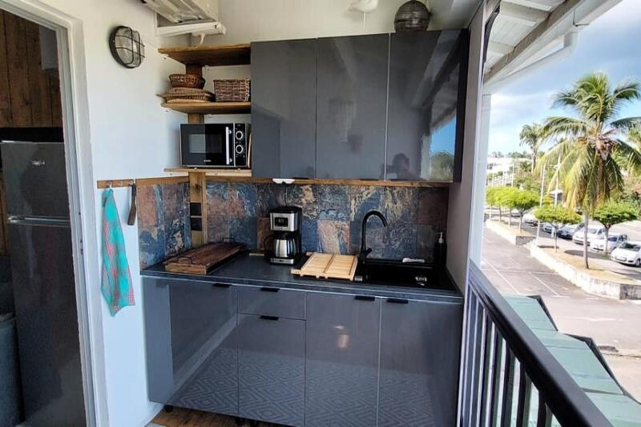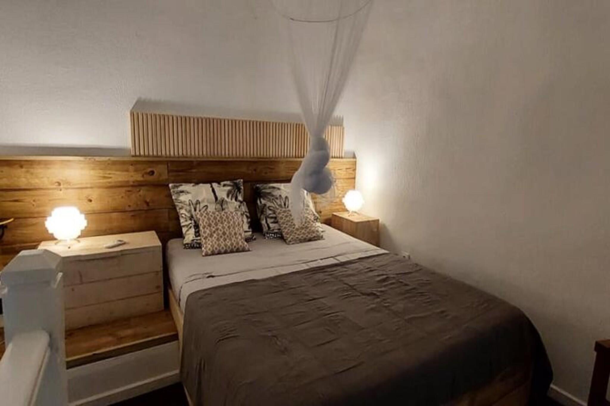 Denne smukt renoverede duplex tilbyder den perfekte blanding af moderne komfort og tropisk charme. Det kan rumme op til 4 personer med et soveværelse på mezzanin med en 160 cm seng og en 160 cm sovesofa i stuen. Ejendommen har aircondition overalt og omfatter håndklæder og sengetøj. Det er ikke kæledyrsvenligt, og fester er ikke tilladt. Beliggende i Saint-François, på Guadeloupes østlige side, er lejligheden ideelt beliggende nær lystbådehavnen, hvor gæsterne kan nyde forskellige spisemuligheder og butikker. Saint-François International Golf Course, Casino og Aerodrome ligger alle inden for en kort gåtur. Ejendommen ligger kun 5 minutter i bil fra øens smukkeste strande, herunder Raisins Clairs og Anse à la Gourde, og tilbyder nem adgang til vandsport, herunder surflektioner og Wing Foil-ture. Pointe-des-Châteaux-stedet ligger kun 10 minutter væk i bil, og søtransport kan tage dig til nærliggende øer. Duplexet har et fuldt udstyret tekøkken, et smukt badeværelse og et separat toilet. Det giver også adgang til boligens swimmingpool, perfekt til afslapning. Højhastigheds-Wi-Fi er tilgængelig, og professionel rengøring sikrer komfort under hele dit ophold. Yderligere tjenester som udflugter, leje af køretøjer og lufthavnstransport er tilgængelige via conciergen for at forbedre din ferieoplevelse.