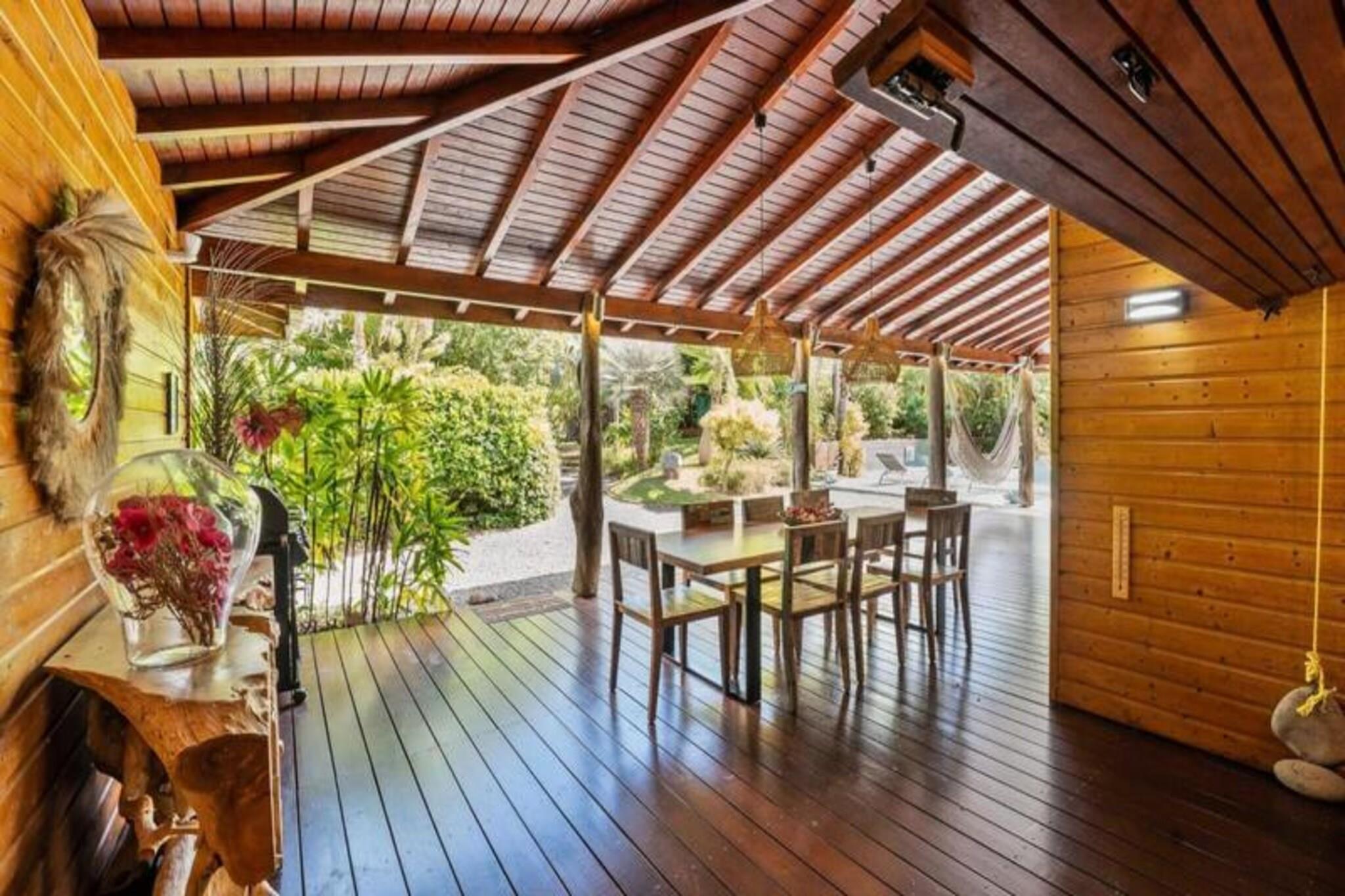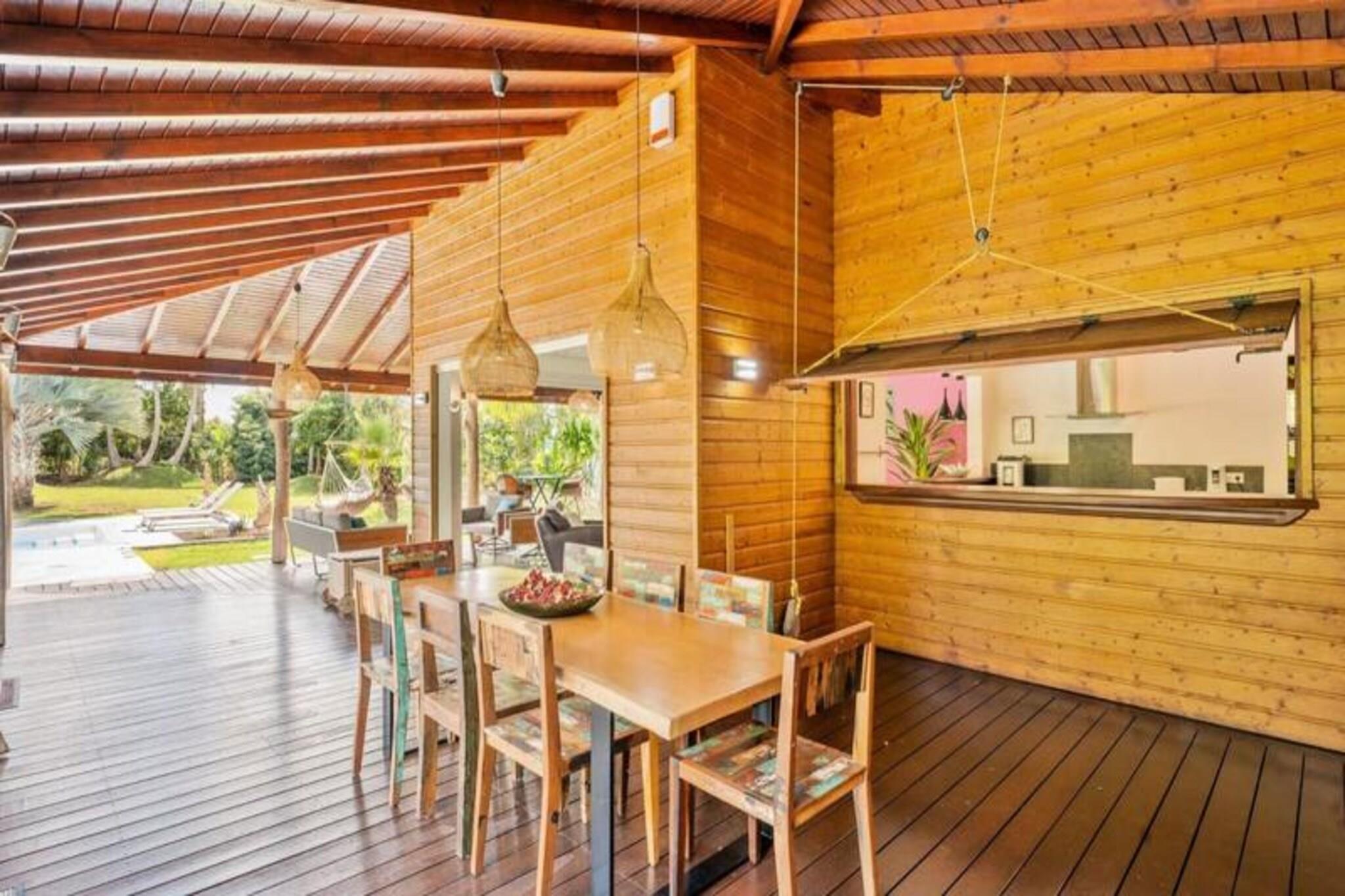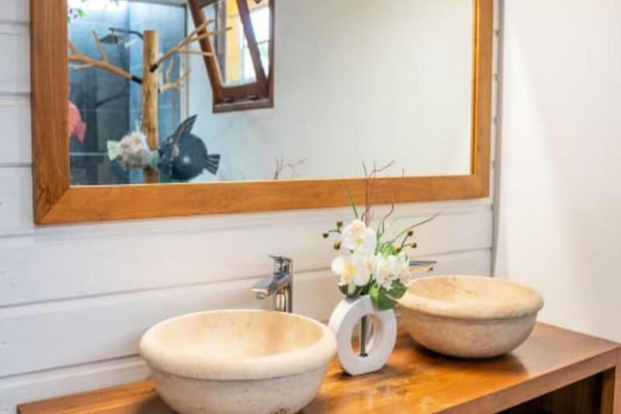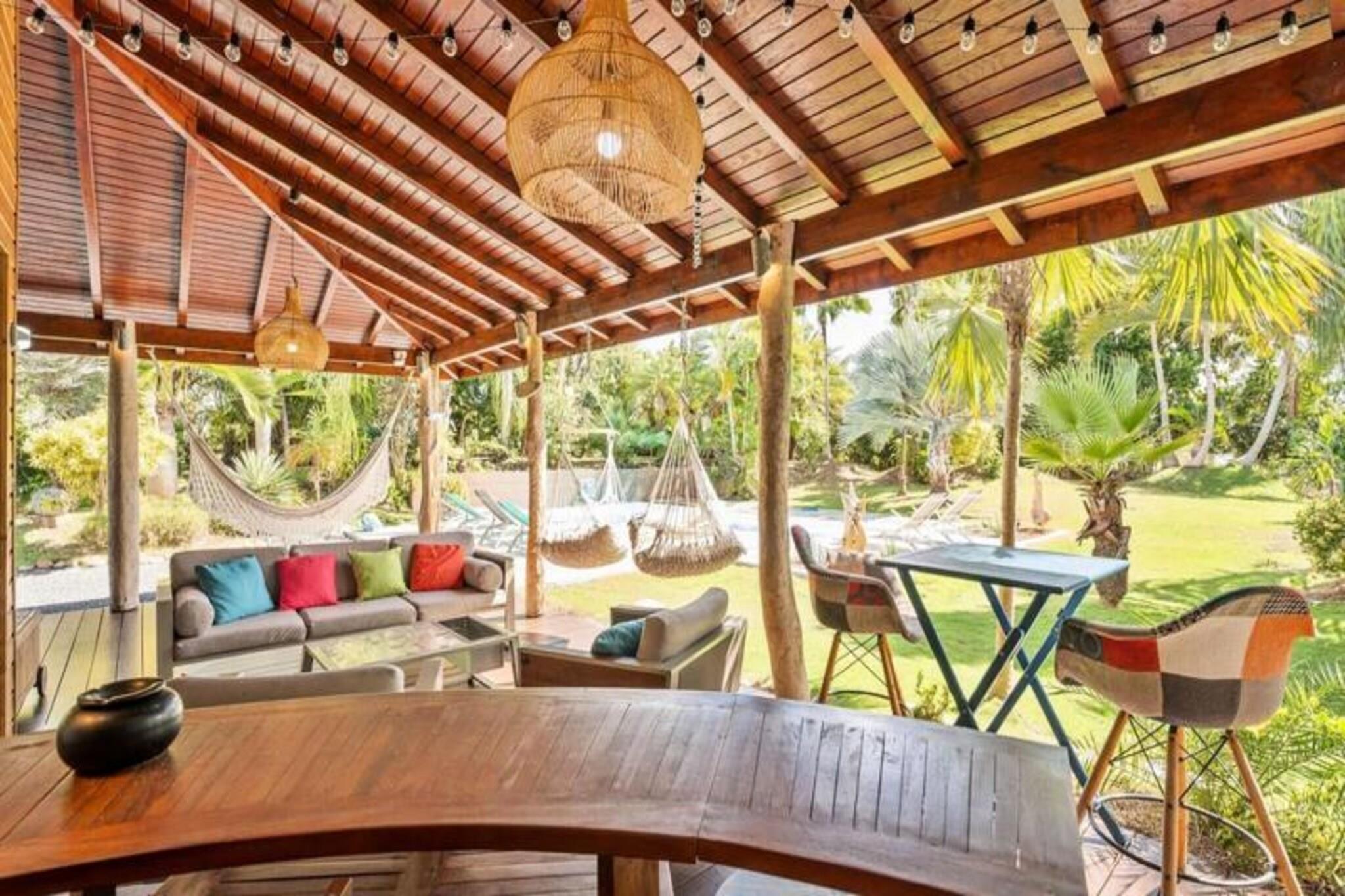 Denne fantastiske villa med privat saltvandspool tilbyder et luksuriøst ophold i en smuk park. Det har rummelige soveværelser, to stuer udstyret med fjernsyn og en elektrisk port for ekstra privatliv og sikkerhed. Der tilbydes babyvenlige faciliteter, herunder højstol, selepude, måltidssæt, badekar og toiletreduktion. Aircondition er tilgængeligt på alle værelser for at sikre et behageligt ophold. Bemærk venligst, at denne ejendom ikke er kæledyrsvenlig, hvilket sikrer et roligt og afslappende miljø for alle gæster. Denne villa ligger i Saint-François, kun 5 minutter fra Raisins Clair-stranden, marinaen og byens centrum, hvor du finder kommercielle lokaler, et supermarked, bageri, apotek og et marked med lokal fisk og krydderier. . Den nærliggende Saint-François Internationale Golfbane, kasino og flyveplads ligger inden for gåafstand. Villaen ligger også tæt på de smukkeste strande i Guadeloupe, herunder Anse à la Gourde og Anse-Champagne, ideel til vandsportsentusiaster, med muligheder for surfing og Wing Foil. Villaen er udstyret med et fuldt funktionelt køkken og et vandreservesystem, der sikrer en ensartet forsyning af vand. Håndklæder, sengetøj og rengøring er inkluderet. Gæsterne kan nyde internetadgang og en velkomstcocktail ved ankomsten. Den dedikerede concierge er til rådighed før, under og efter dit ophold for at hjælpe med særlige ønsker eller tjenester såsom udflugter, leje af køretøjer og lufthavnstransport.