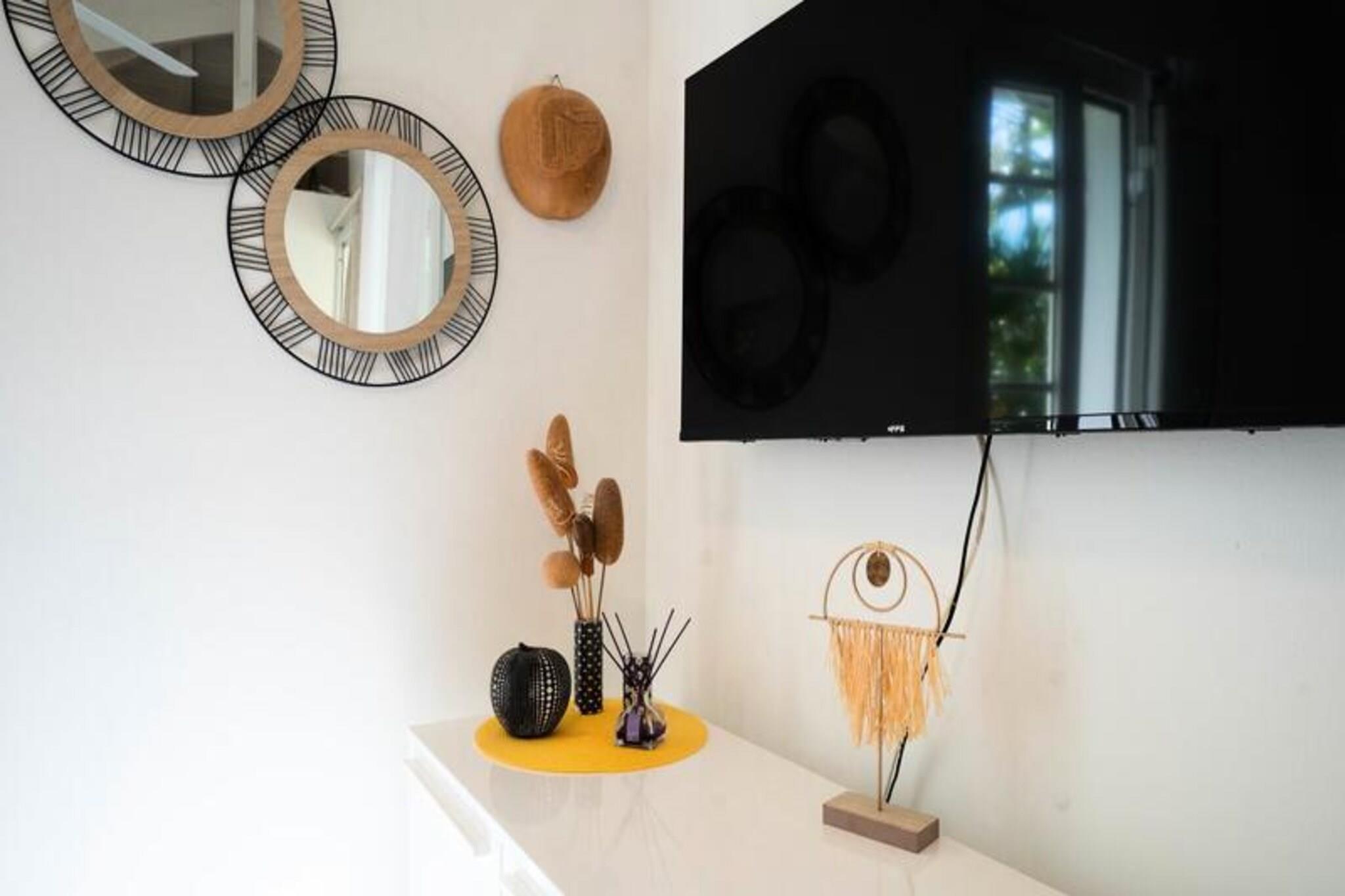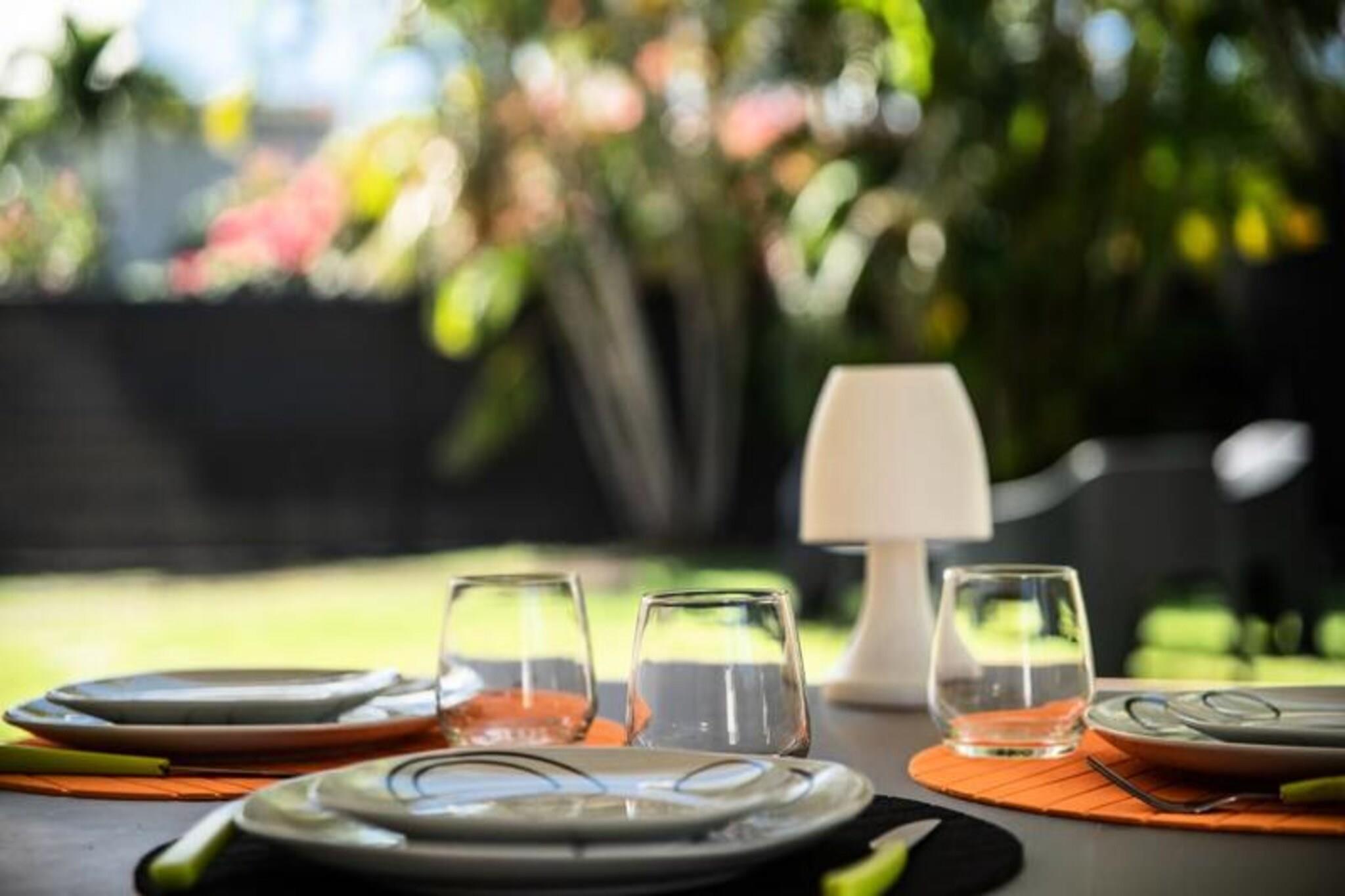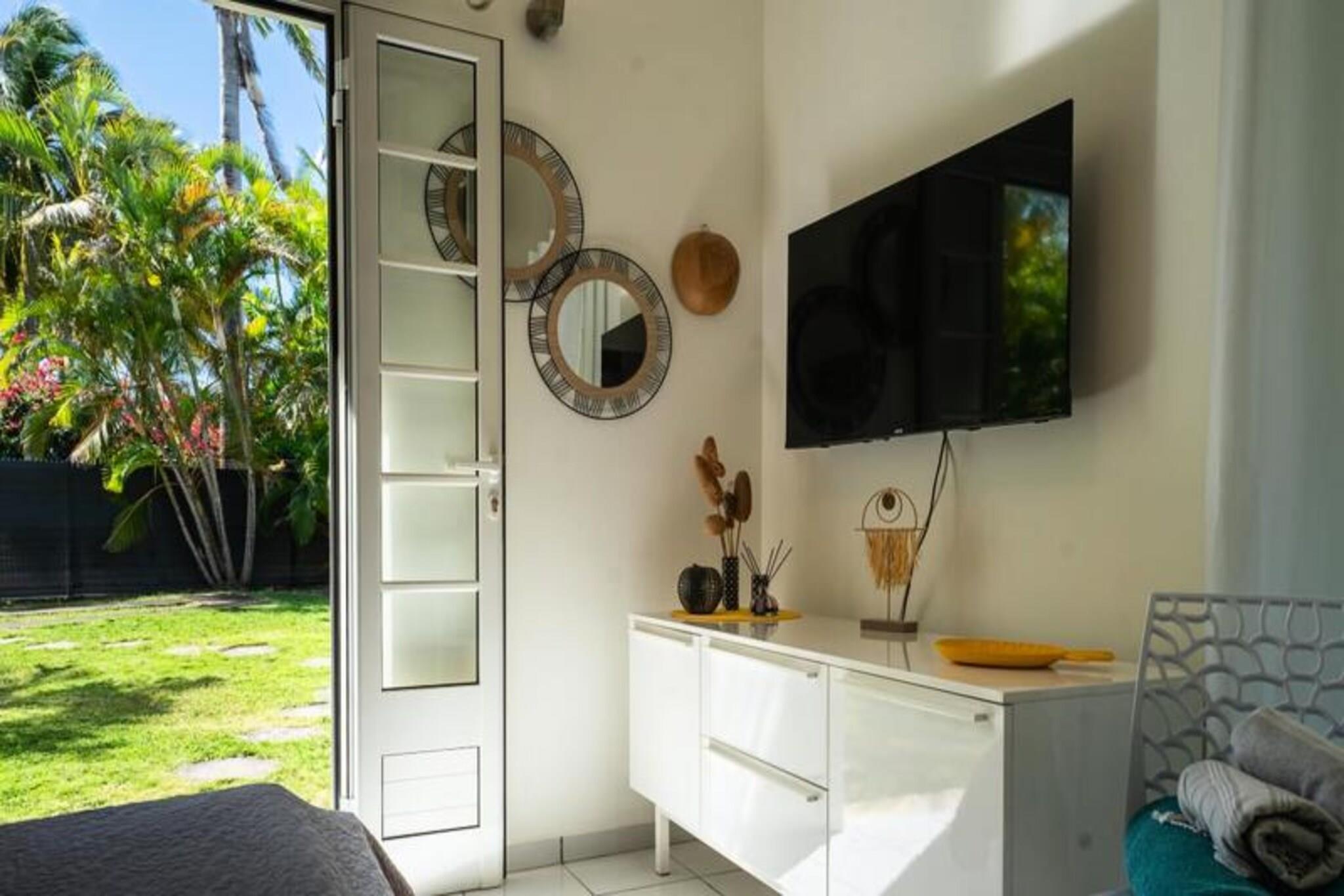Denne charmerende, intime bungalow ligger i et fredeligt boligområde nær centrum af Saint-François, Guadeloupe. Ejendommen har egen indgang, en 200 m² stor have og en privat swimmingpool, hvilket sikrer fuldstændig privatliv og afslapning. Bungalowen er smukt indrettet og byder på et veludstyret køkken, et stort soveværelse med en 160 cm seng og en 90 cm seng samt et ventileret badeværelse med toilet. Villaen ligger kun 5 minutter fra byens centrum, hvor du finder butikker, et supermarked, et bageri, et apotek og et marked med frisk fisk og krydderier. Den populære Marina de Saint-François, kendt for sine restauranter og butikker, er i nærheden, ligesom Saint-François International Golf Course, kasinoet og flyvepladsen. De fantastiske strande på Guadeloupe, såsom Raisins Clairs, Anse à la Gourde og Anse-Champagne, ligger også kun 5 minutter væk. For vandsportsentusiaster tilbyder Saint-François Marina surflektioner, og den nærliggende Anse-Champagne-strand er ideel til Wing Foil. Gæsterne kan nyde aircondition, internetadgang og et vandreservesystem for at beskytte mod nedskæringer. Håndklæder og sengetøj er inkluderet, og ejendommen er omhyggeligt rengjort før og efter dit ophold. En concierge-service er tilgængelig for at hjælpe med udflugter, biludlejning, lufthavnstransport og særlige ønsker. Bemærk venligst, at fester ikke er tilladt af respekt for nabolaget.