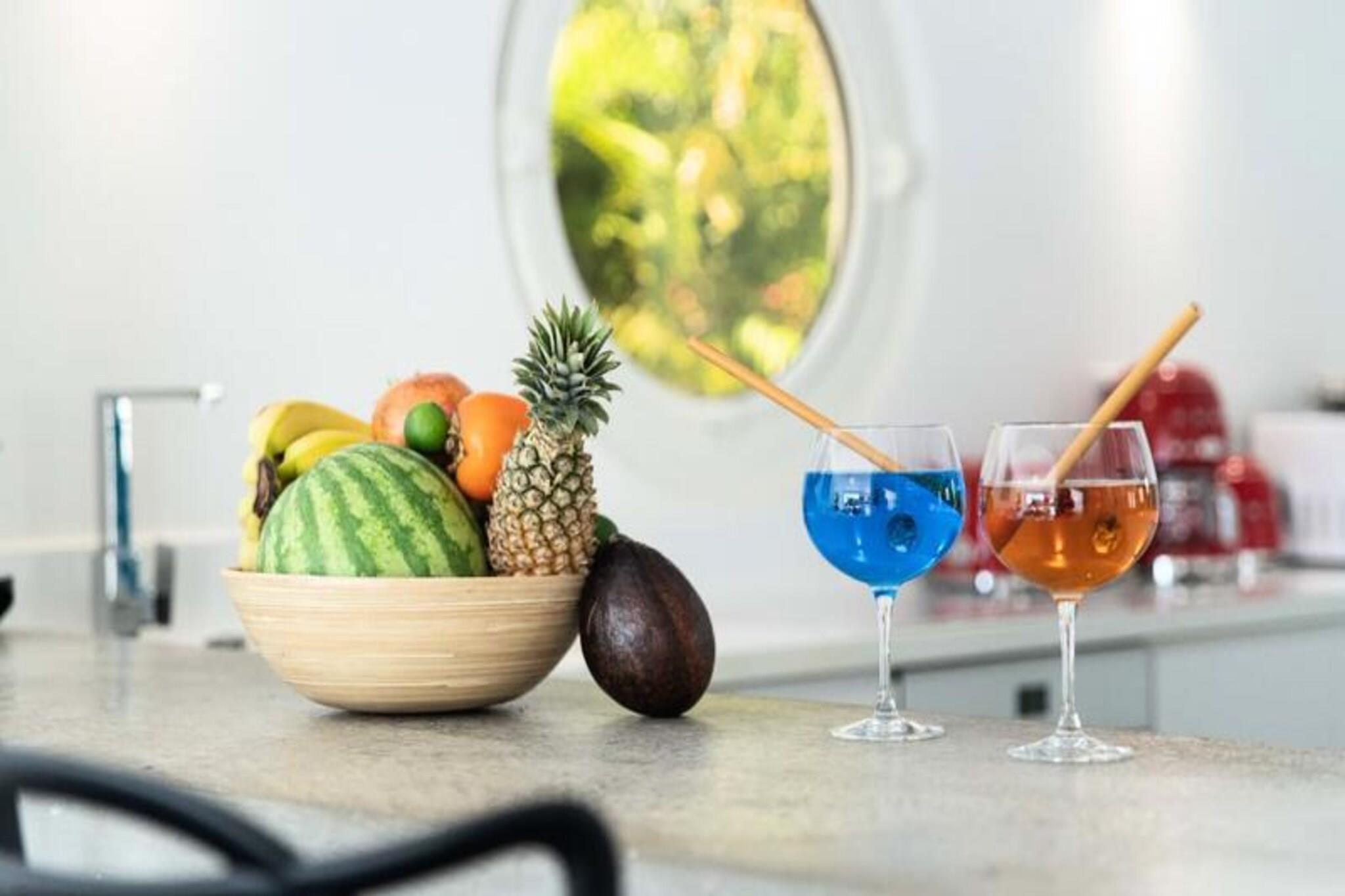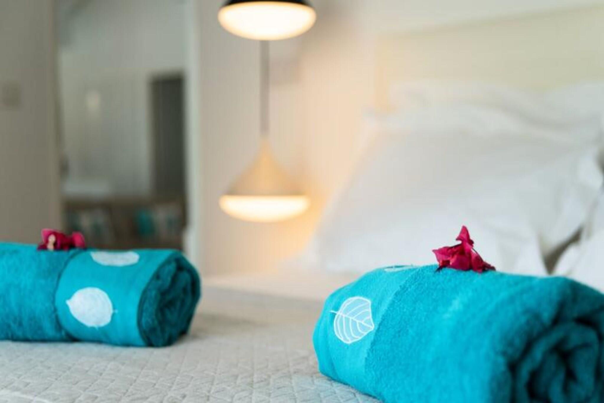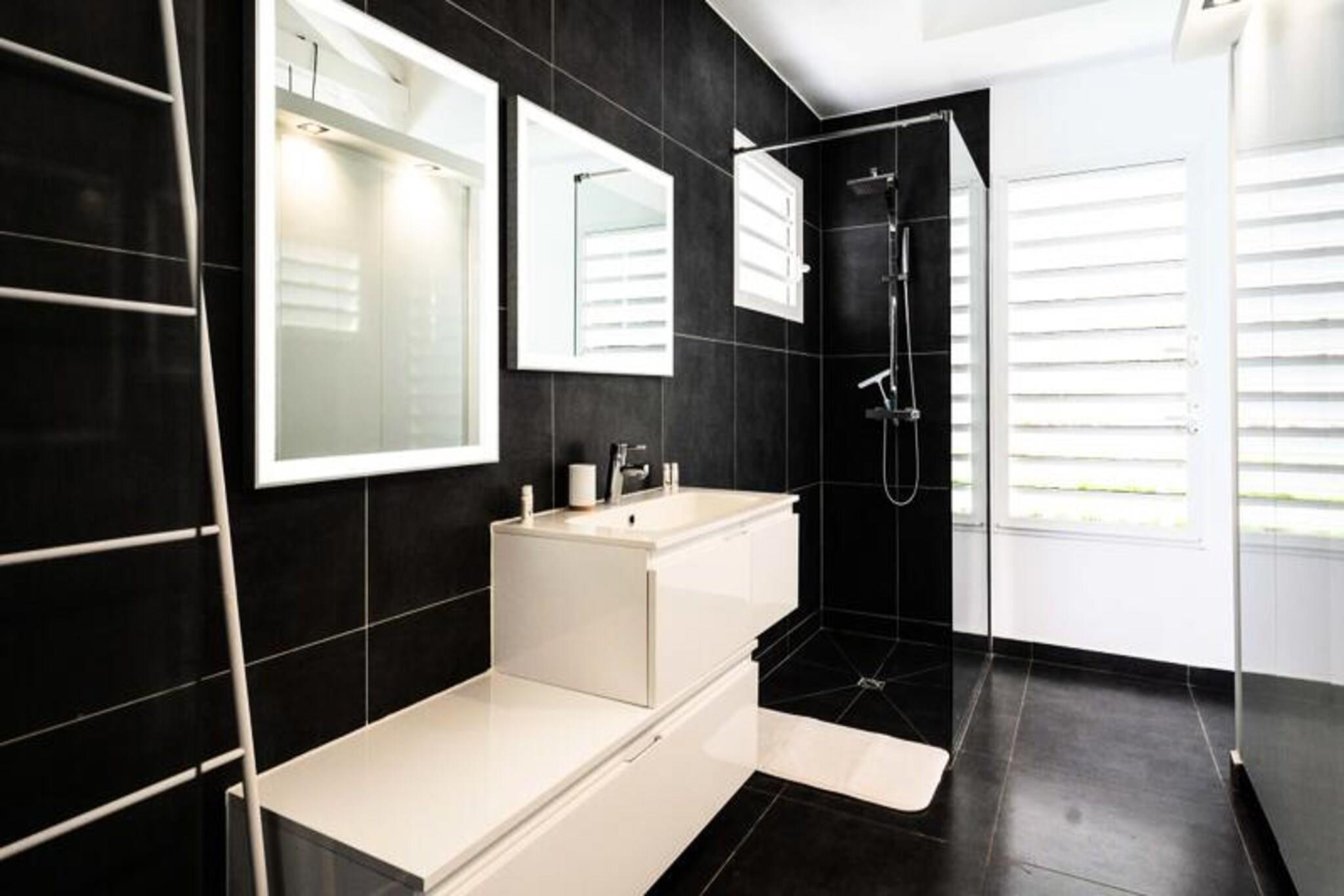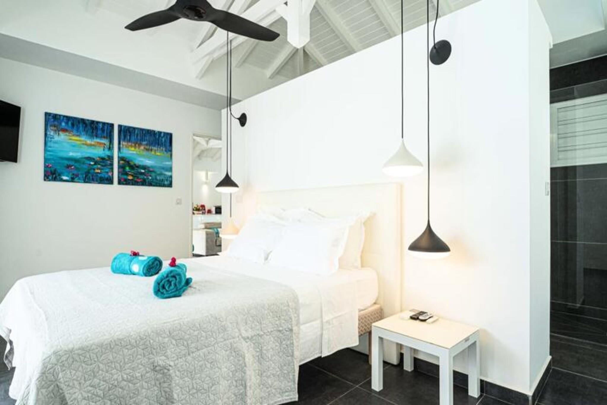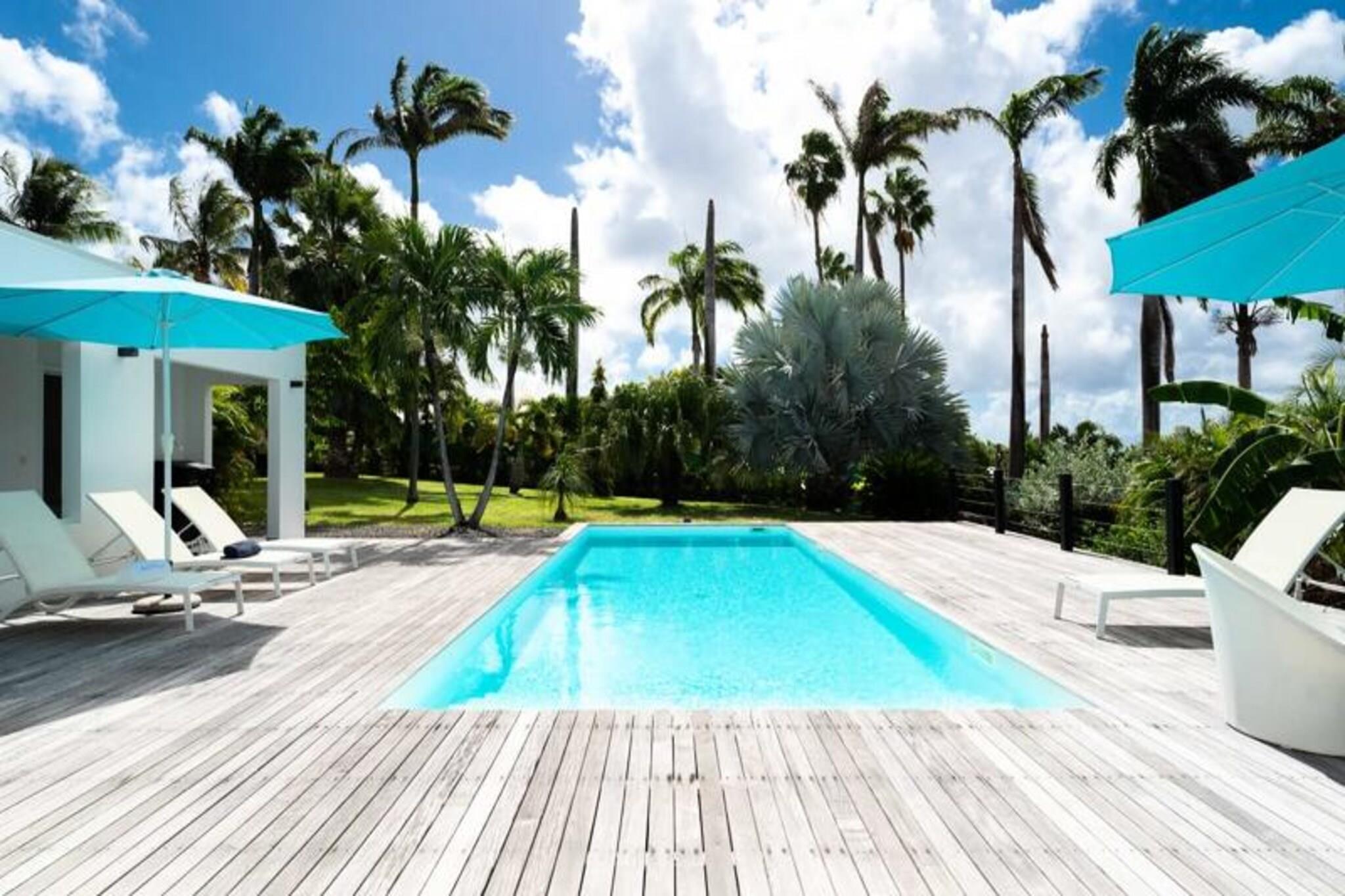 Denne h?jtst?ende villa i Saint-Fran?ois tilbyder en fredfyldt flugt med en 4-stjernet klassificering. Perfekt til familier eller par, det har tre sovev?relser med aircondition, inklusive en mastersuite med eget badev?relse. De to andre sovev?relser deler et rummeligt badev?relse og separat toilet. Villaen har en stor terrasse med udsigt over en tropisk park, en opvarmet swimmingpool med et strandterrasse og en harmonisk blanding af moderne og caribisk arkitektur, der sikrer privatliv og afslapning i rolige omgivelser. Villaen er bekvemt beliggende i Hauts-distriktet, f? minutter fra Saint-Fran?ois centrum og Pointe-?-Pitre lufthavn. N?rliggende attraktioner omfatter den internationale golfbane, Marina de Saint-Fran?ois og pulserende markeder med frisk fisk og krydderier. De smukke strande Raisins Clairs, Anse ? la Gourde og Anse-Champagne ligger kun en kort k?retur v?k. Vandsportsentusiaster kan nyde surfing og vingefoliering, mens Pointe-des-Ch?teaux byder p? en betagende udsigt og et ikonisk vartegn. Villaens moderne k?kken ?bner til et rummeligt opholdsomr?de, perfekt til spisning og hygge. Faciliteterne inkluderer h?jhastighedsinternet, aircondition, luksussenget?j og h?ndkl?der. G?ster bydes velkommen med forfriskninger, en dedikeret concierge og eksklusive tjenester s?som udflugter og biludlejning. Et vandreservesystem sikrer komfort, mens strenge regler opretholder et fredeligt milj?. Kvalitetshusholdning fuldender dette luksusophold.