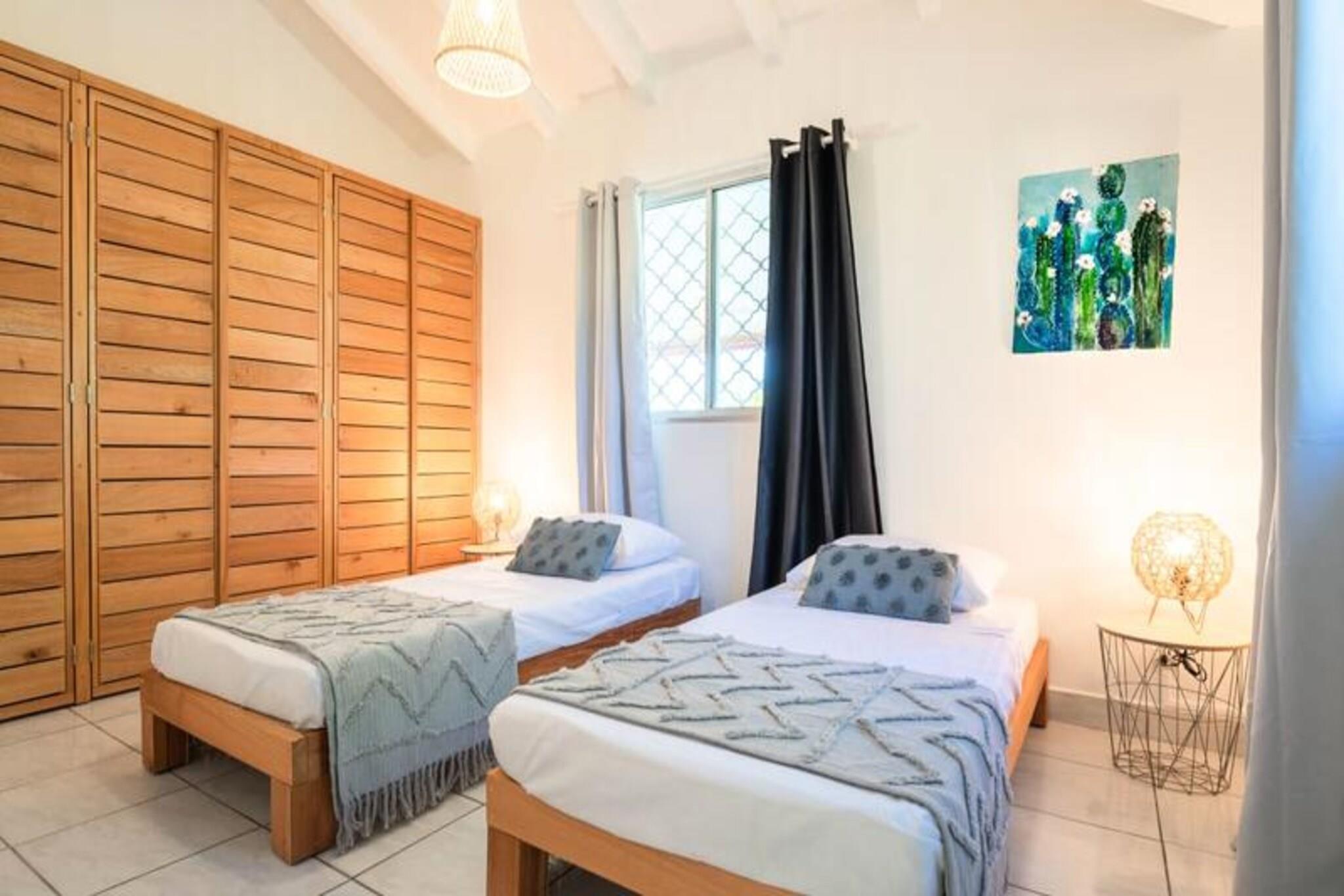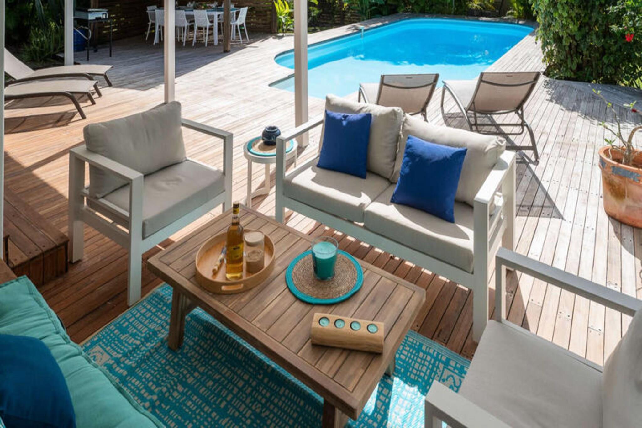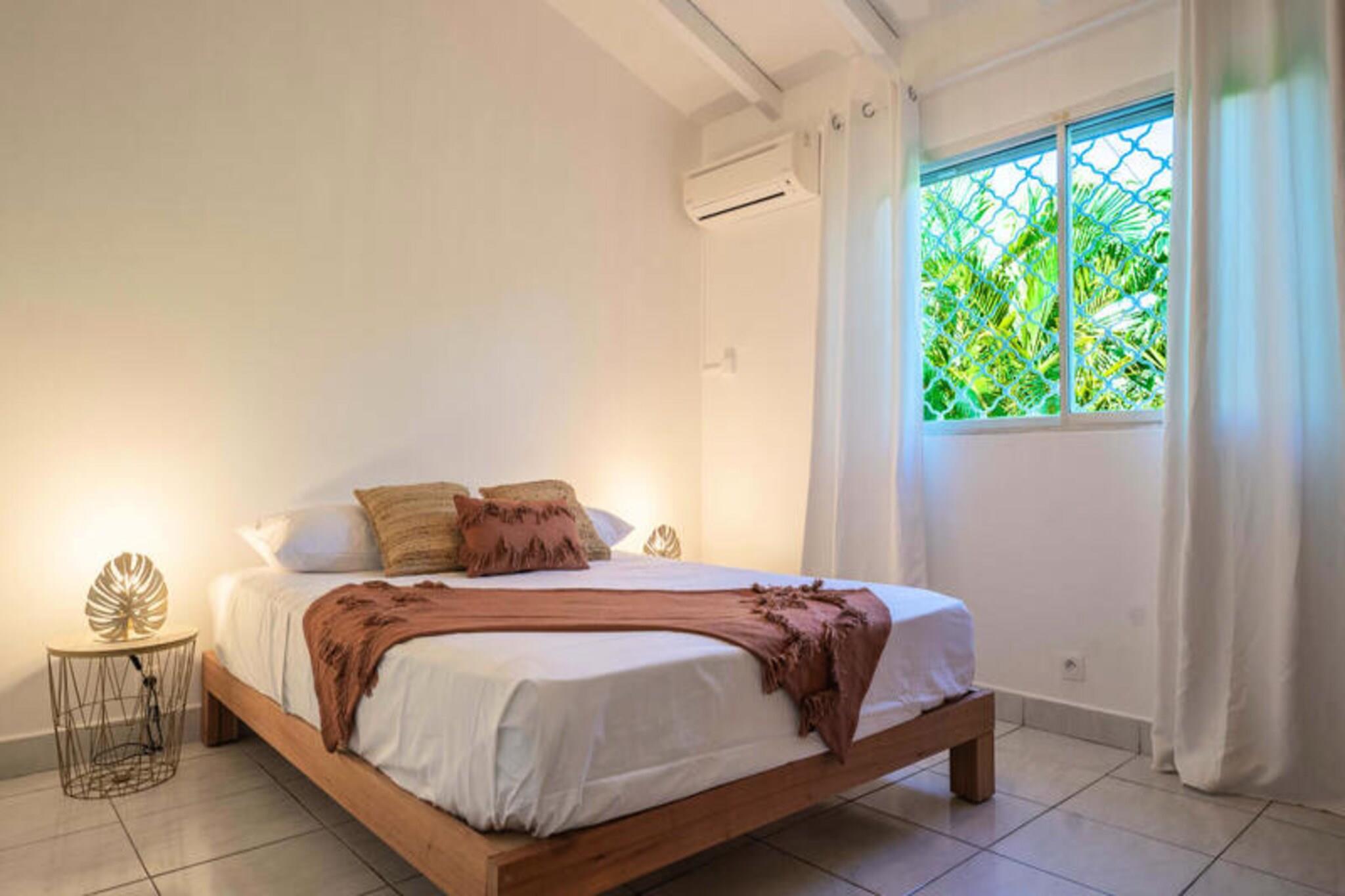 Denne smukt renoverede villa tilbyder 4 soveværelser med aircondition, perfekt til familier eller grupper. Tre soveværelser har 160 cm senge, og det ene har to 90 cm senge, der kan rumme op til 8 gæster. Villaen har 2 badeværelser og 3 toiletter for din bekvemmelighed. Gæsterne kan nyde rigelig indendørs og udendørs lounge og spiseplads, hvilket gør det ideelt til afslapning eller sammenkomst. Ejendommen er ikke kæledyrsvenlig, hvilket sikrer et fredeligt miljø for alle besøgende. Beliggende kun 5 minutter fra den fantastiske Raisins Clairs Beach og den berømte Saint-François International Golf Course, er denne villa ideelt beliggende til at nyde både afslapning og udendørs aktiviteter. Saint-François Marina, med sine butikker og restauranter, ligger også inden for en kort køretur, mens nærliggende strande som Anse à la Gourde og Anse-Champagne tilbyder muligheder for vandsport, herunder Wing Foil-ture. Pointe-des-Châteaux, et berømt lokalt sted, ligger kun 10 minutter væk i bil. Villaen har et fuldt udstyret amerikansk køkken, der åbner til en rummelig og komfortabel stue. En overdækket udendørs terrasse og grillplads giver ekstra plads til spisning og afslapning, mens den private swimmingpool tilbyder en forfriskende flugt. Andre faciliteter inkluderer Wi-Fi, aircondition overalt, håndklæder og sengetøj og et vandreservesystem for at sikre en kontinuerlig vandforsyning.