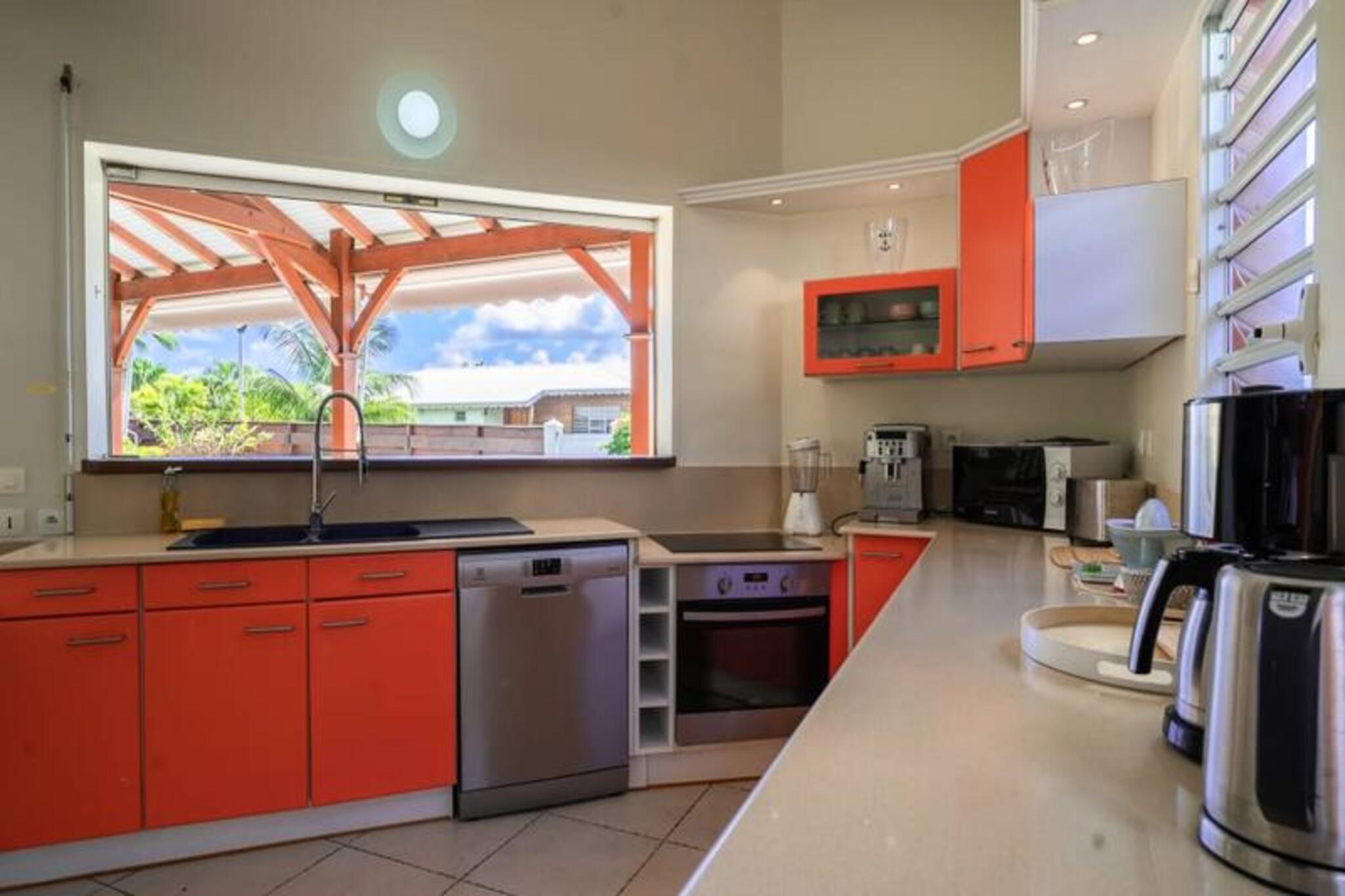 Denne smukke villa, beliggende i en sikker bolig med direkte adgang til stranden, tilbyder en perfekt flugt i Guadeloupe. Ejendommen omfatter tre soveværelser med aircondition, hver indrettet med 160 cm senge. To badeværelser, sammen med et velkomsttoilet, sikrer rigelig komfort. Den forhøjede pool er ideel for familier og giver et sikkert område for børn at lege, mens du slapper af. Den rummelige stue og det fuldt udstyrede køkken fører til en spiseterrasse, der tilbyder de perfekte rammer for måltider og afslapning. Villaen ligger i Saint-François på Guadeloupes østkyst, kun 45 minutter i bil fra Pointe-à-Pitre lufthavn. En kort 5-minutters kørsel bringer dig til byens centrum, hvor du finder butikker, restauranter og et lokalt marked. Marina de Saint-François tilbyder en række spisemuligheder, butikker og vandaktiviteter. De nærliggende strande Raisins Clairs og Anse à la Gourde er perfekte til afslapning og vandsport, herunder surflektioner og vingefolie-ture. Villaen inkluderer også internetadgang, aircondition i alle værelser og et vandreservesystem til pålidelig vandforsyning. Med dedikeret rengøring før og efter dit ophold, og en concierge til rådighed for at hjælpe med udflugter og særlige ønsker, vil du nyde personlig service til et mindeværdigt ophold.
