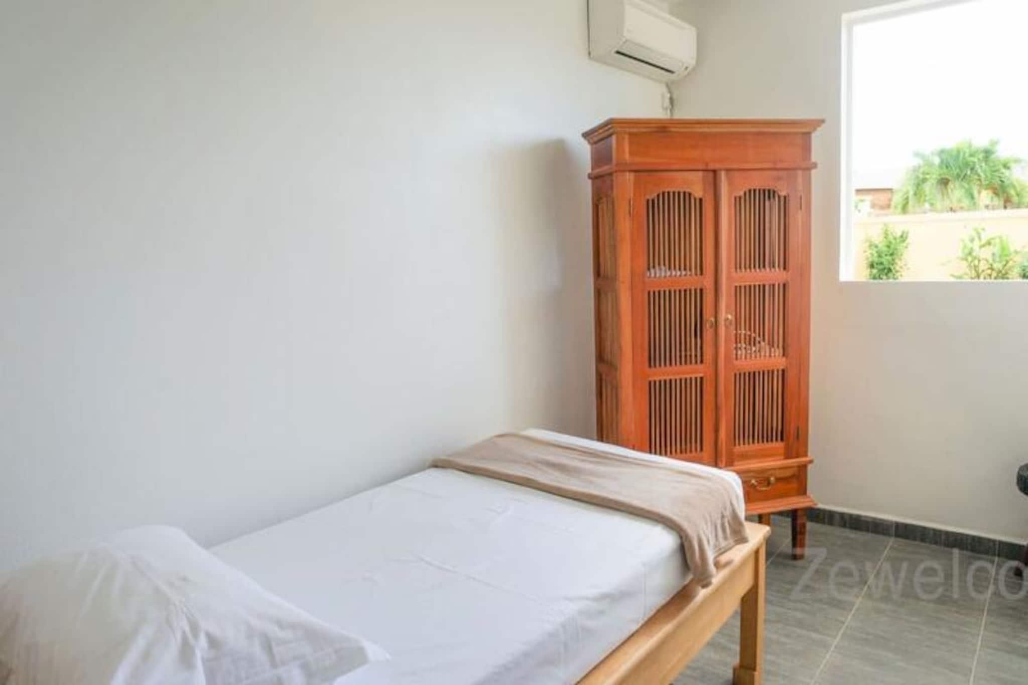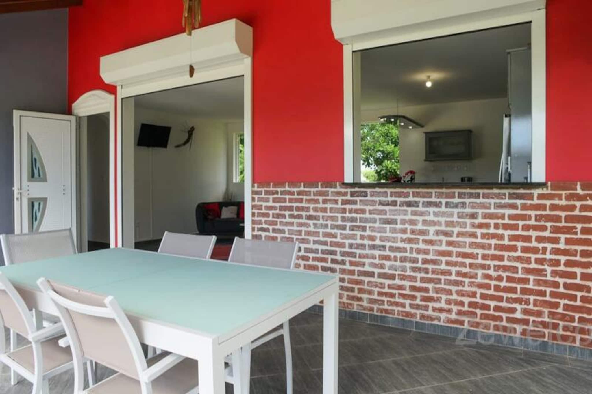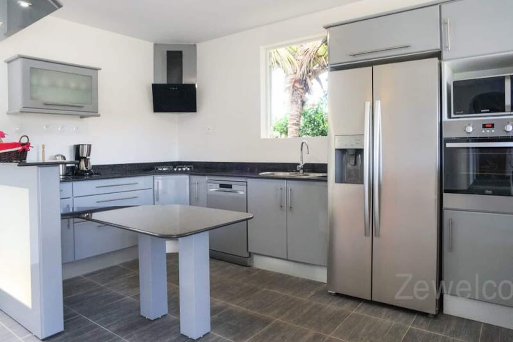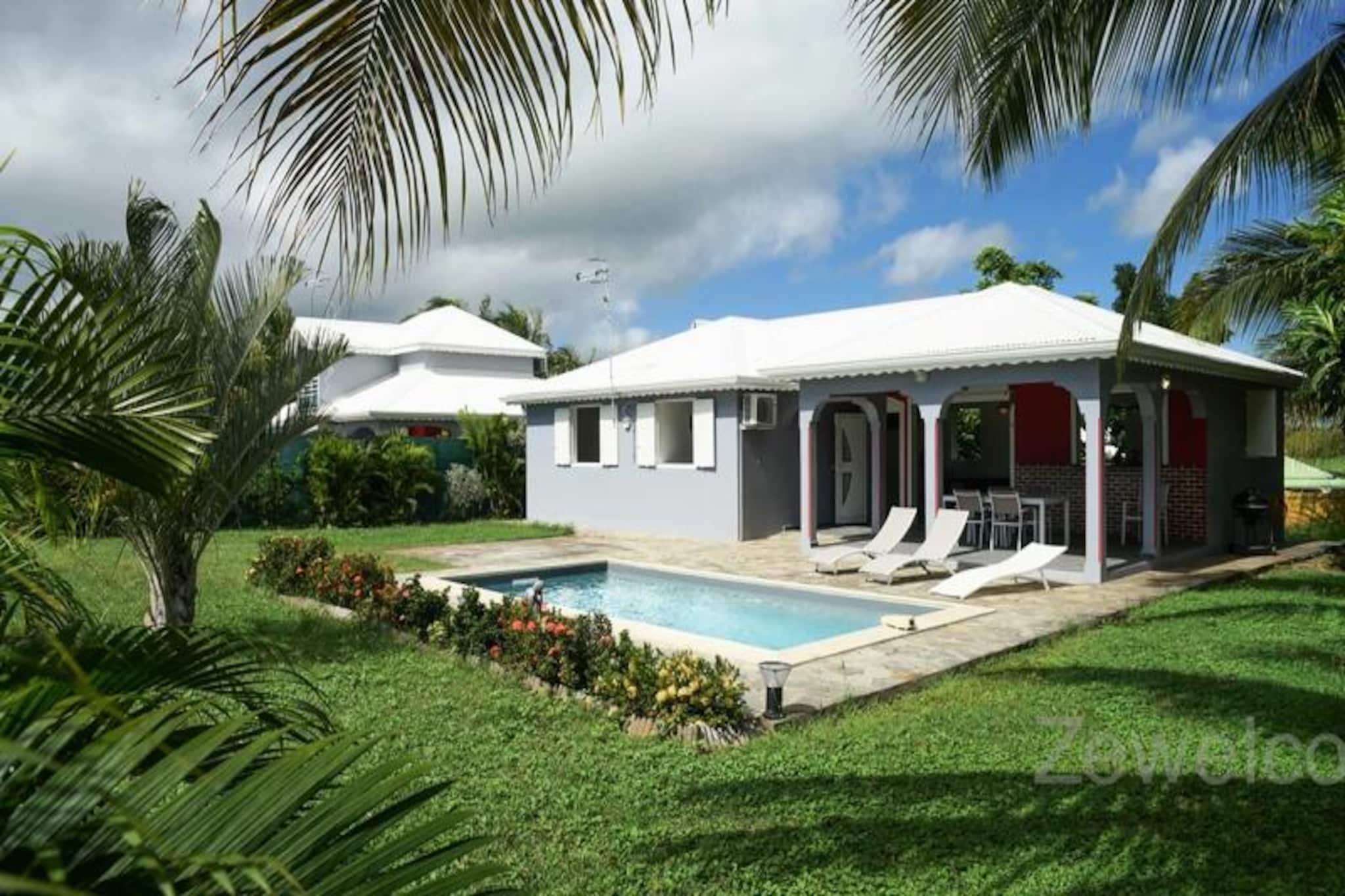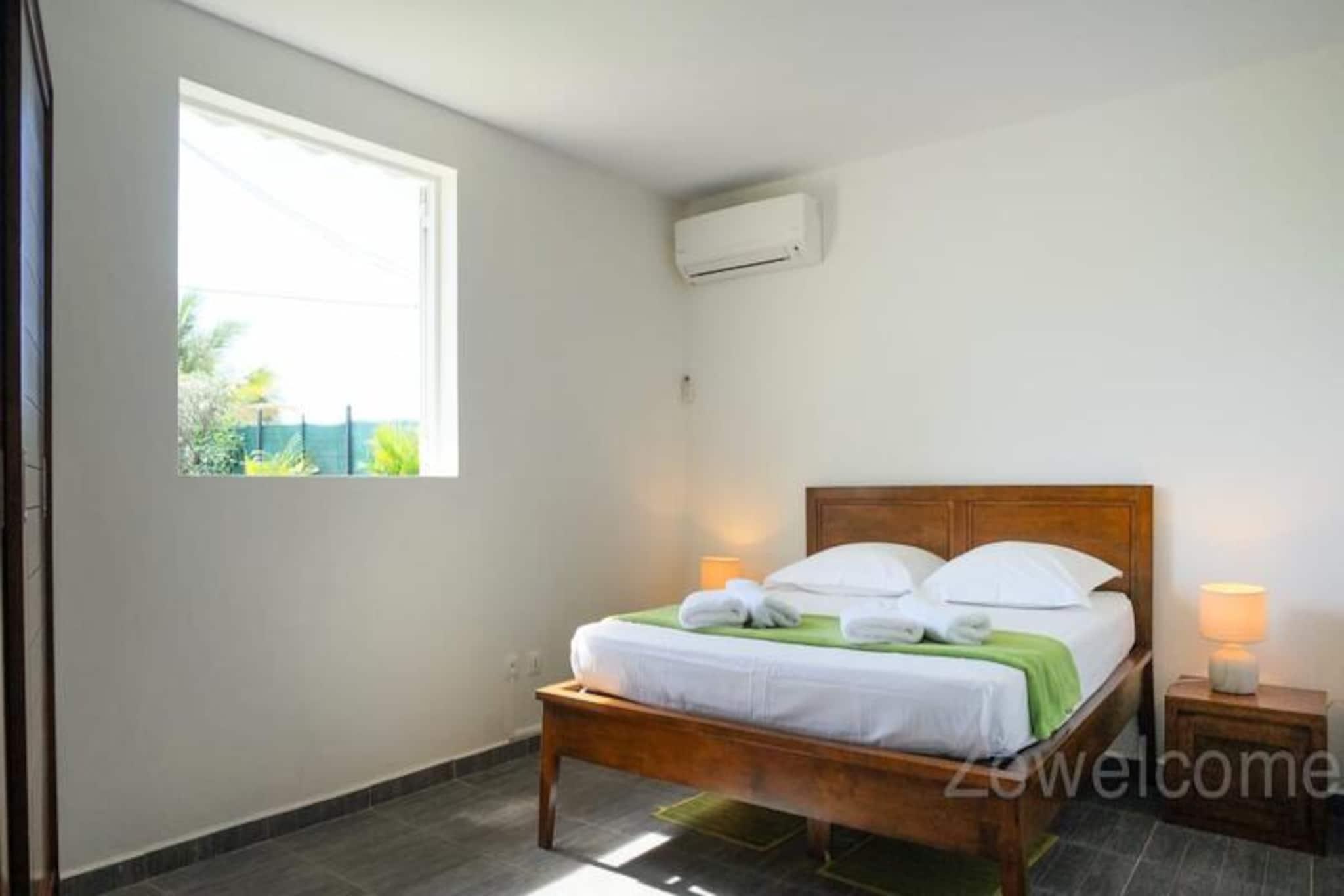 I hjertet af den fredfyldte Saint-François-kommune tilbyder denne elegante villa et roligt tilflugtssted på den maleriske ø Grande-Terre i Guadeloupe. Kun få minutter fra det turkisblå vand ved Raisins Clairs-stranden er denne ejendom det perfekte tilflugtssted for familier eller grupper, der søger både afslapning og eventyr i et tropisk paradis. Omgivet af frodigt grønt og kysset af den caribiske brise inviterer villaen dig til at slappe af og omfavne øens afslappede charme. Villaen har tre soveværelser med aircondition, herunder to med dobbeltsenge og et med en enkeltseng, hvilket sikrer afslappende nætter for op til seks gæster. Den rummelige stue, udstyret med et tv, flyder problemfrit over i et fuldt udstyret køkken, ideelt til at tilberede lækre måltider med friske lokale ingredienser. Gå ud på terrassen for at nyde udendørs spisning eller slap blot af ved den private pool, en forfriskende oase i din egen baghave. For større grupper udvider Villa Yanachris, der er tilgængelig via en havelåge, indkvarteringen til at rumme op til 11 gæster og tilbyder en ekstra pool og rigelig plads til alle at nyde. Moderne bekvemmeligheder som internetadgang, sengetøj i hotelkvalitet og et vandreservesystem sikrer et behageligt og bekymringsfrit ophold. Beliggende kun 5 minutters kørsel fra den pulserende by Saint-François, finder du alt hvad du behøver inden for rækkevidde, fra supermarkeder og bagerier til den travle marina fyldt med restauranter og butikker. Golfentusiaster vil sætte pris på nærheden til Saint-François International Golf Course, mens spændingssøgende kan prøve kræfter med vandsport som surfing og wingfoiling på de nærliggende strande. Gå ikke glip af Pointe-des-Châteaux, et betagende naturområde med panoramaudsigt over de omkringliggende øer. Uanset om du nyder en velkomstcocktail ved ankomsten, udforsker øens rige kultur eller blot slapper af ved poolen, lover denne villa en uforglemmelig caribisk flugt. Lad den varme Guadeloupesol og bølgernes blide rytme skabe minder for livet.