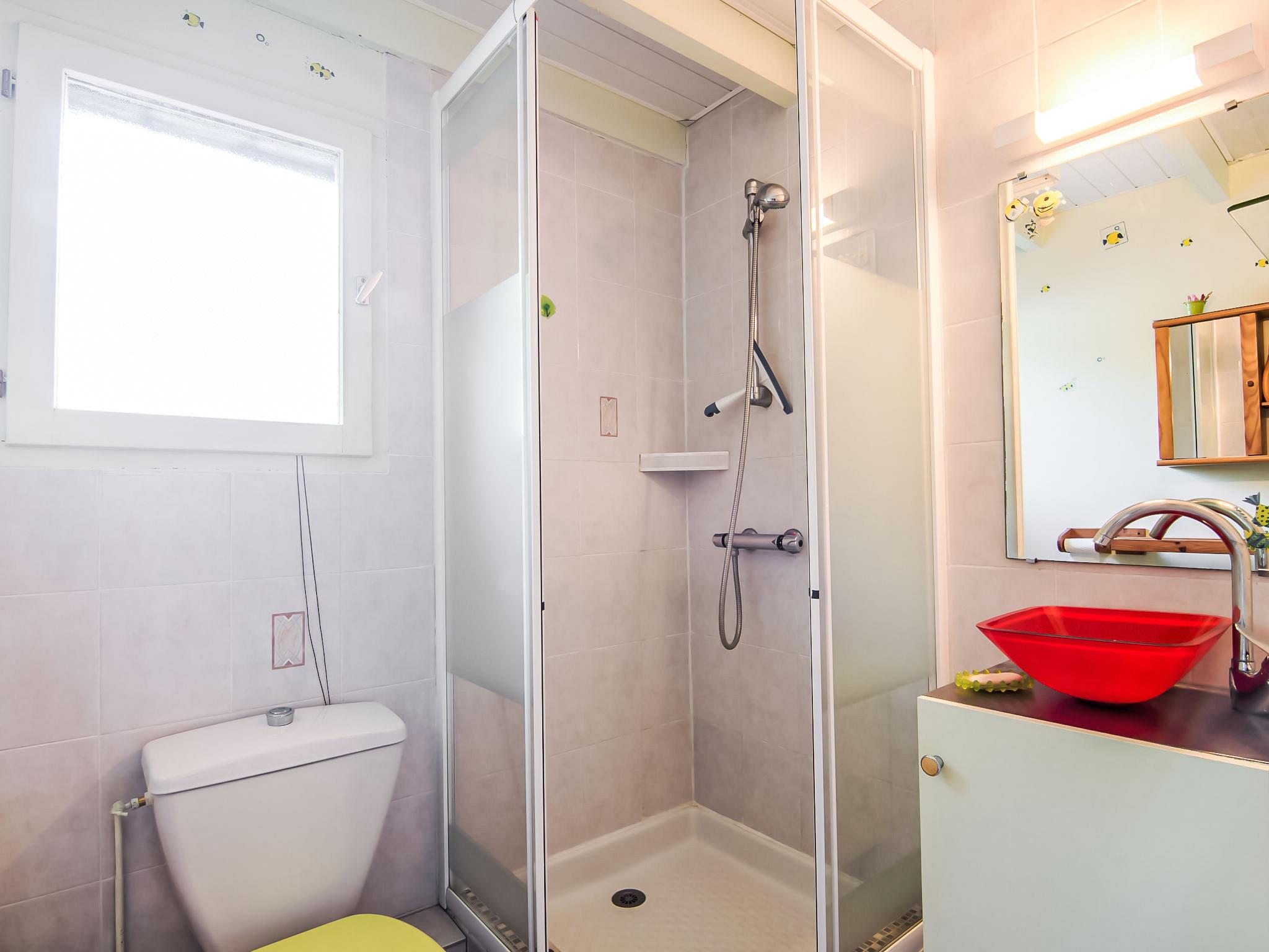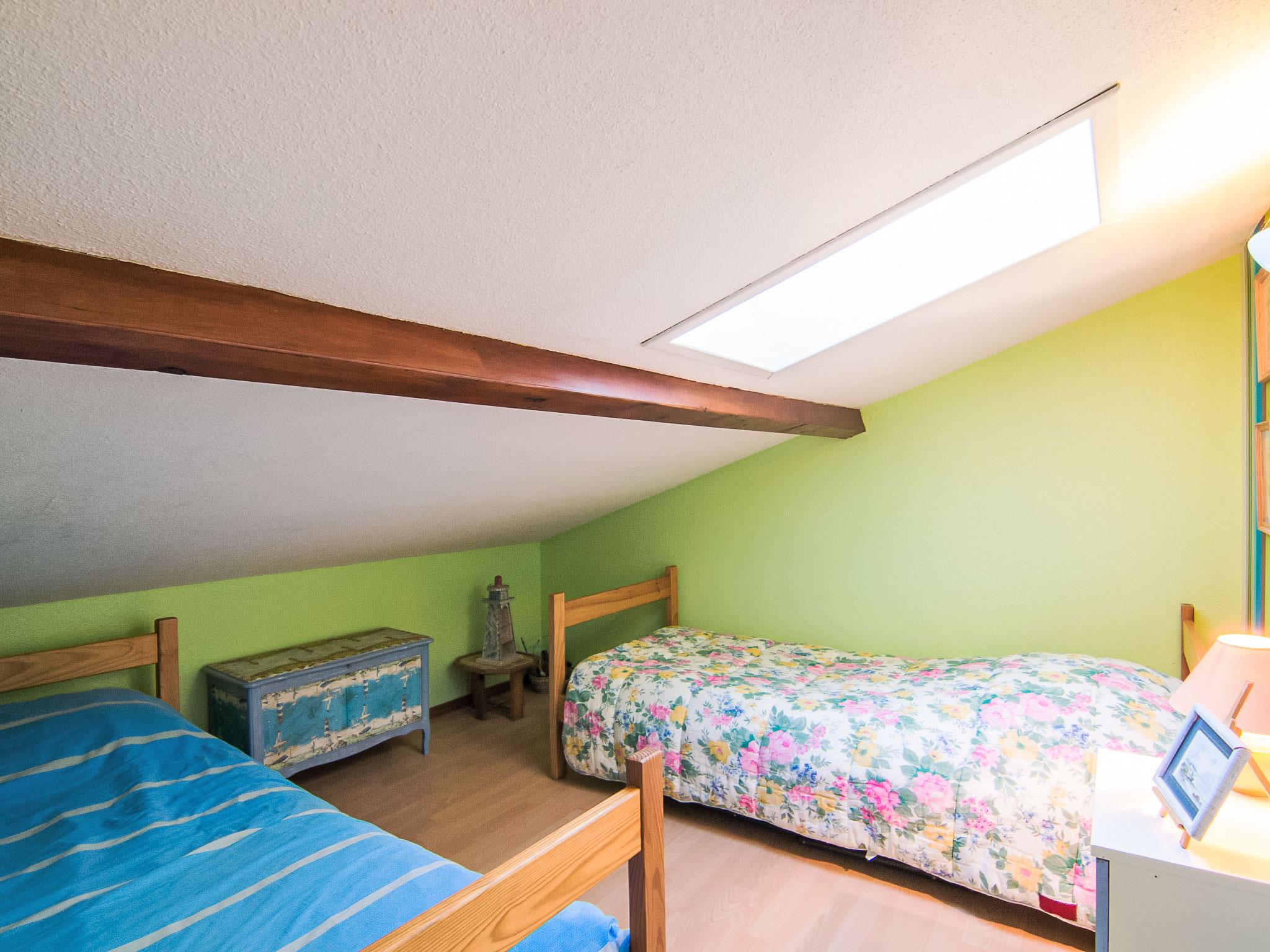 3-room terraced house 40 m2 on 2 levels. Object suitable for 2 adults + 2 children. Living/dining room with TV. Exit to the terrace. Open kitchen (2 hot plates, dishwasher, microwave). Shower/WC. Electric heating. Upper floor: (steep stair), 1 room with 1 french bed (1 x 140 cm, length 190 cm). 1 room with sloping ceilings, ceiling height 170 - 70 cm with rooflight with 2 beds (80 cm, length 190 cm). Terrace 13 m2. Terrace furniture. Facilities: washing machine. Internet (WiFi, extra). Parking space n 1. Please note: maximum 1 pet/ dog allowed. Smoke alarm.