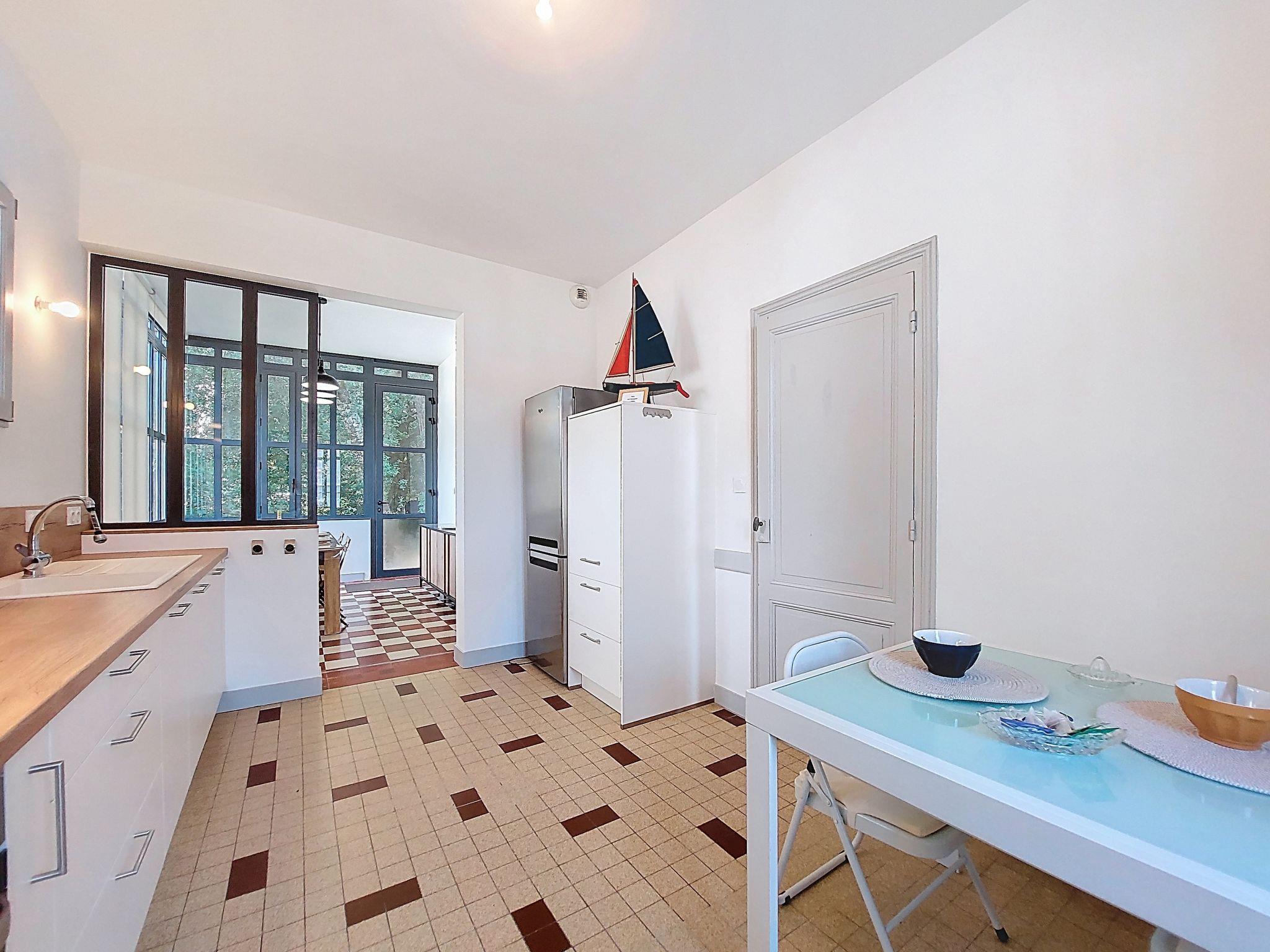 4-room house 110 m2 on 2 levels. Beautiful furnishings: living room with TV (flat screen). 1 room with 1 french bed (1 x 140 cm, length 190 cm), shower/WC. Kitchen (oven, dishwasher, 3 ceramic glass hob hotplates, toaster, kettle, microwave, freezer, electric coffee machine) with dining table. Exit to the garden, to the terrace, to the veranda. Sep. WC. Upper floor: 1 room with 1 french bed (1 x 140 cm, length 190 cm). Exit to the balcony. 1 room with 1 bed (90 cm, length 190 cm), 1 x 2 bunk beds (90 cm, length 190 cm). Shower/WC. Electric heating. Terrace 12 m2, garden 700 m2. Terrace furniture. Facilities: washing machine. Internet (WiFi, free). Parking (2 cars). Please note: smoke alarm. Offer by a private individual according to Art. 155, IV of CGI.