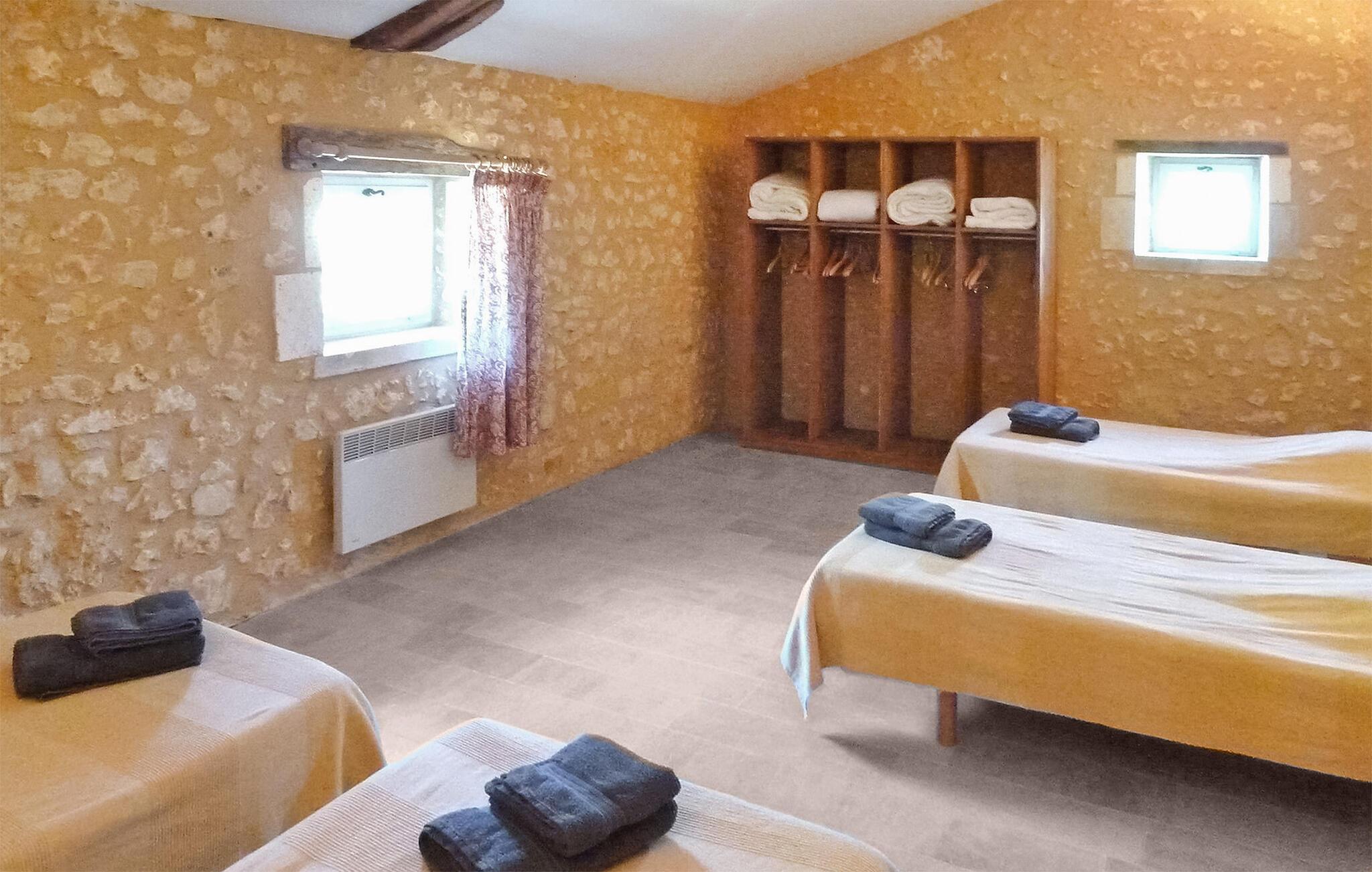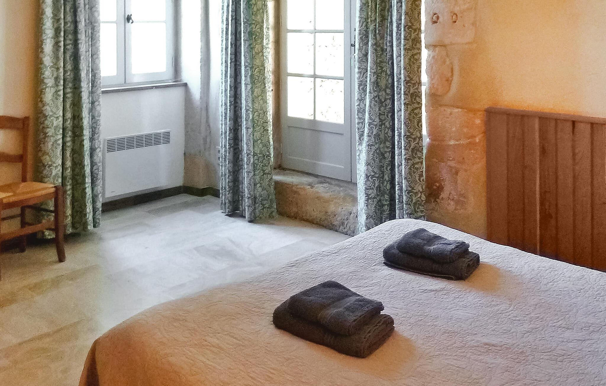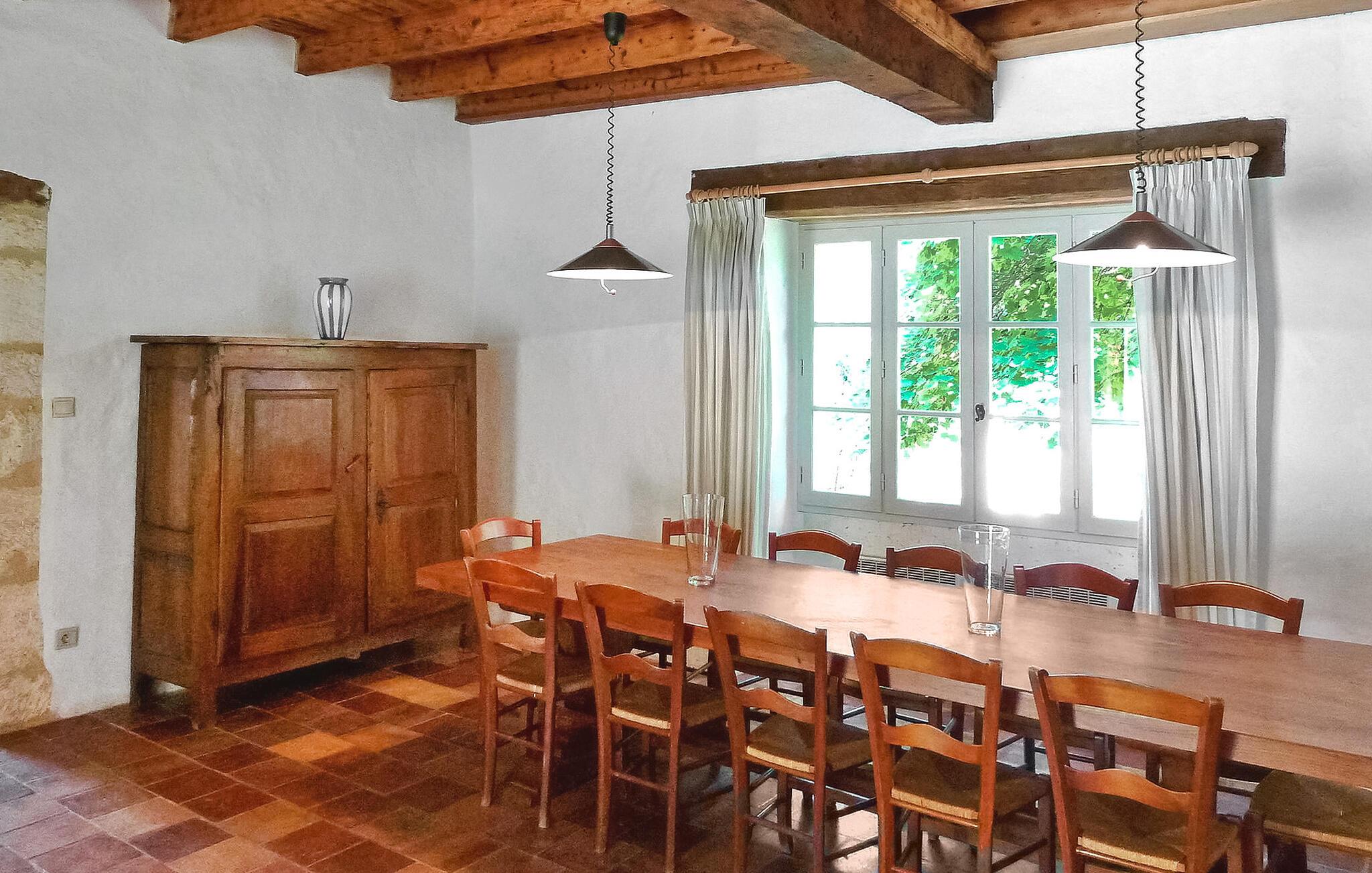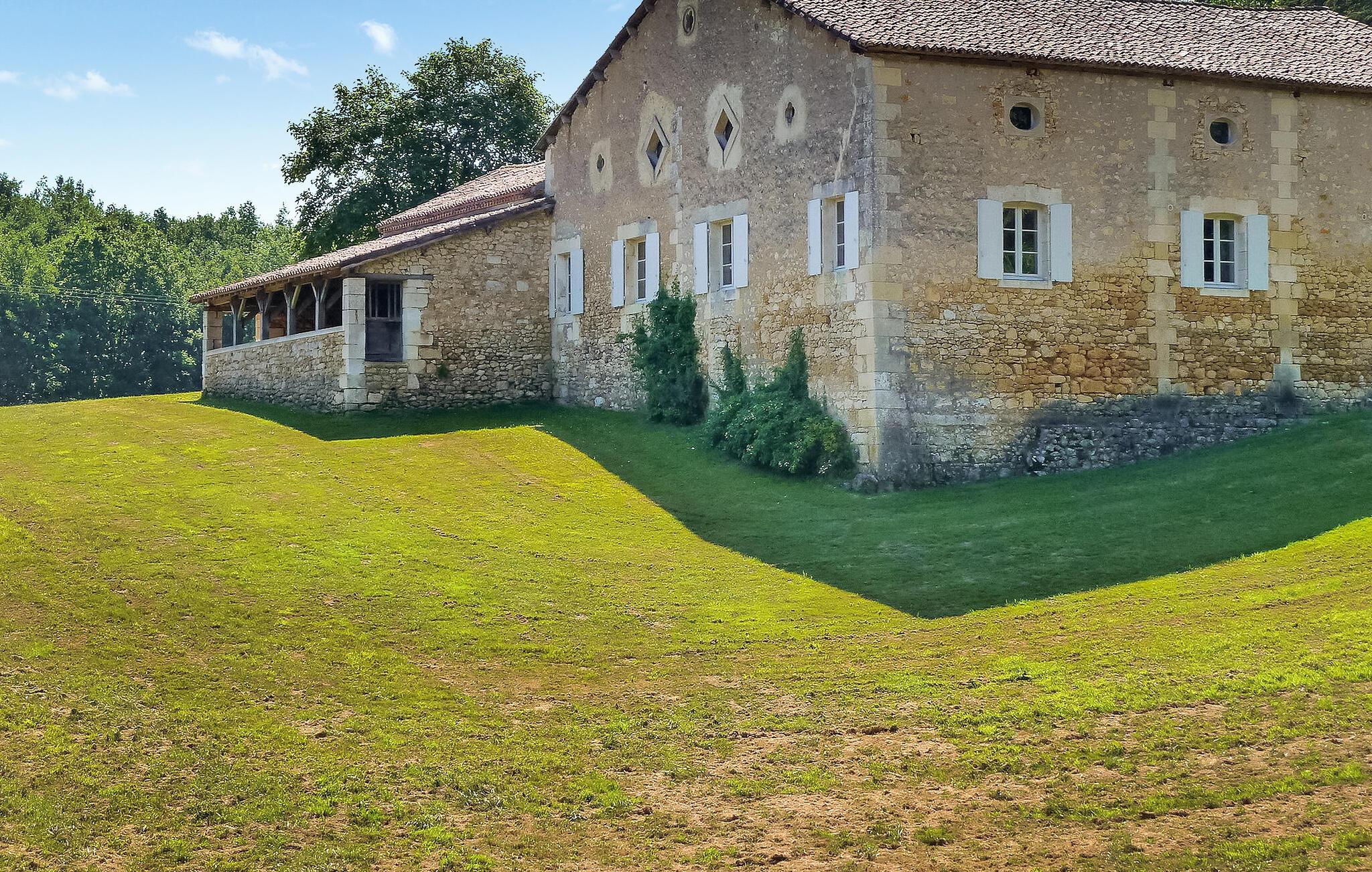 Beliggende i Purple Perigord, har denne store gruppeindkvartering plads til op til 31 gæster på tværs af et hovedhus og et udhus. En storslået overdækket hal og terrasse forbinder disse strukturer og tilbyder en betagende udsigt over dalen. Hovedhuset har en rummelig opholdsstue med en brølende pejs, et veludstyret køkken og en komfortabel lounge. Ovenpå kan du opdage flere soveværelser, et badeværelse og toilet. Udhuset har opholdsstue, kælder med vaskefaciliteter og tre separate lejligheder. Hver lejlighed består af flere soveværelser, badeværelser, hvilket sikrer komfort og bekvemmelighed for større grupper eller flere familier. Udenfor inviterer den store grund til udforskning, mens en overdækket terrasse med rigelige siddepladser har udsigt over den fantastiske dal. En indhegnet privat pool tilbyder afslapning og nydelse under dit ophold. Gæsterne bliver behandlet med en halv stere træ om vinteren og kan nyde afslappede gåture på tværs af 600 hektar skove og damme. Bemærk at tre andre selvstændige huse deler ejendommen. Yderligere tjenester på stedet såsom brunch ved dammene og morgenmad er tilgængelige efter anmodning og mod et tillægsgebyr. Ejendommen er beliggende på landet omkring 2 km fra Georges de Montclar (nærmeste butikker). Nyd din ferie i en lade i Dordogne i Quercy - Périgord.