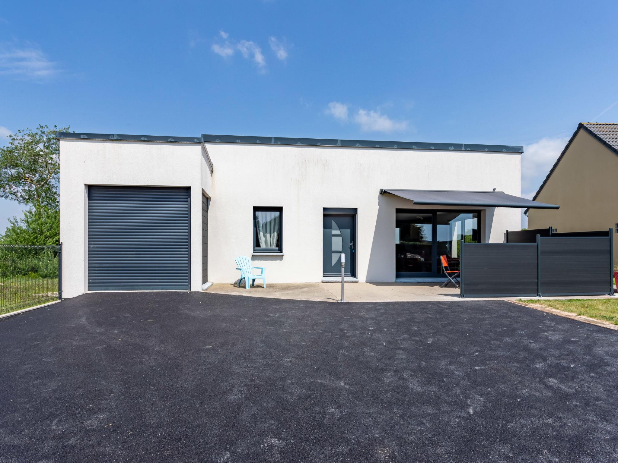 Modern single-family house "Chalmeignes", detached, built in 2019. 4.5 km from the centre of Saint-Germain-sur-Ay, 13 km from the centre of La Haye-du-Puits, 27 km from the centre of Coutances, in the residential district, 800 m from the sea, 800 m from the beach. Private: property 535 m2 (fenced), parking (for 2 cars) on the premises. Shop 400 m, bus stop "Abbatiale" 9 km, sandy beach 800 m. Golf course (18 hole) 27 km. Residence with electric gates.