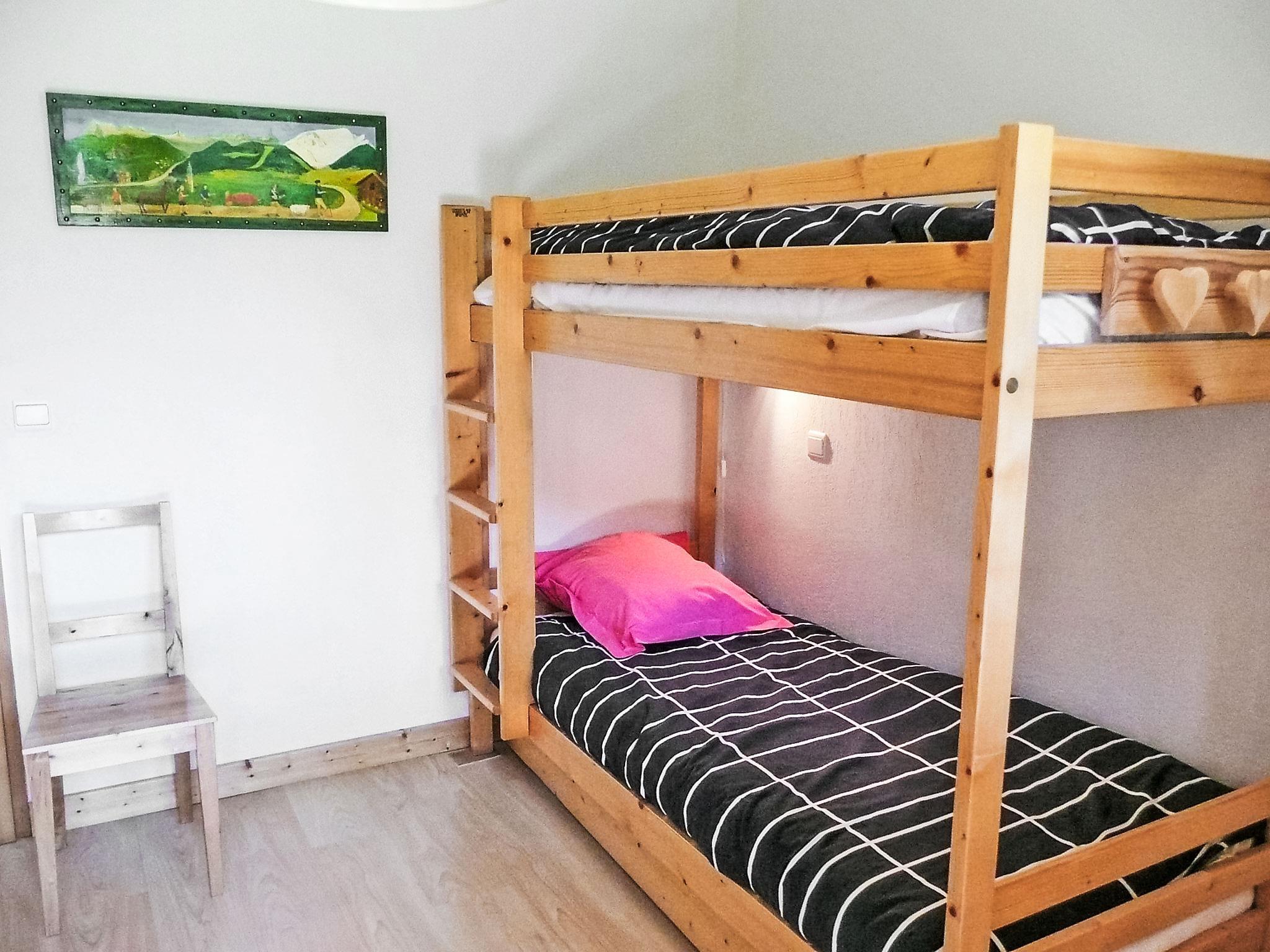 5-room chalet 130 m2 on 3 levels, south-east facing position. Comfortable and beautiful furnishings: living/dining room with TV, radio, CD-player and wood-burning stove. Exit to the terrace. Open kitchen (oven, dishwasher, 4 ceramic glass hob hotplates, toaster, kettle, microwave, electric coffee machine). Sep. WC. On the lower ground floor: 1 room with 1 x 2 bunk beds. 1 room with 1 french bed (1 x 140 cm). 1 room with 2 beds (80 cm). Bath/shower/WC. Upper floor: 1 room with 1 french bed (1 x 160 cm). Exit to the balcony. Shower/WC. Electric heating. Terrace 30 m2, south-east facing position. Terrace furniture, barbecue, deck chairs. Beautiful view of the mountains. Facilities: washing machine, iron, children's high chair, hair dryer. Internet (WiFi, free). Please note: suitable for families. Non-smokers only. TV only FR. Smoke alarm.