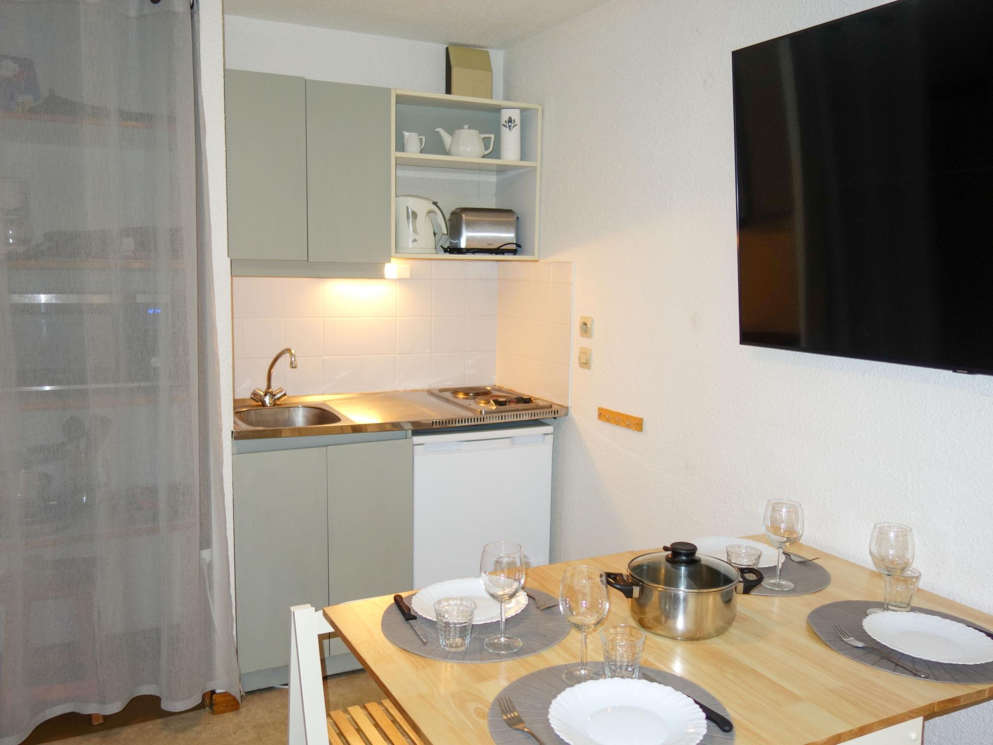 "La piste A", 2-room apartment 22 m2 on 3rd floor. Living/dining room with 1 double sofabed (140 cm), dining table and TV. Exit to the balcony. 1 room with 1 x 2 bunk beds (90 cm). Kitchenette (2 hot plates, toaster, kettle, electric coffee machine, combination microwave). Bathroom, sep. WC. Electric heating. Small balcony. Facilities: Internet (WiFi, extra). Please note: non-smokers only. TV only FR. Smoke alarm.