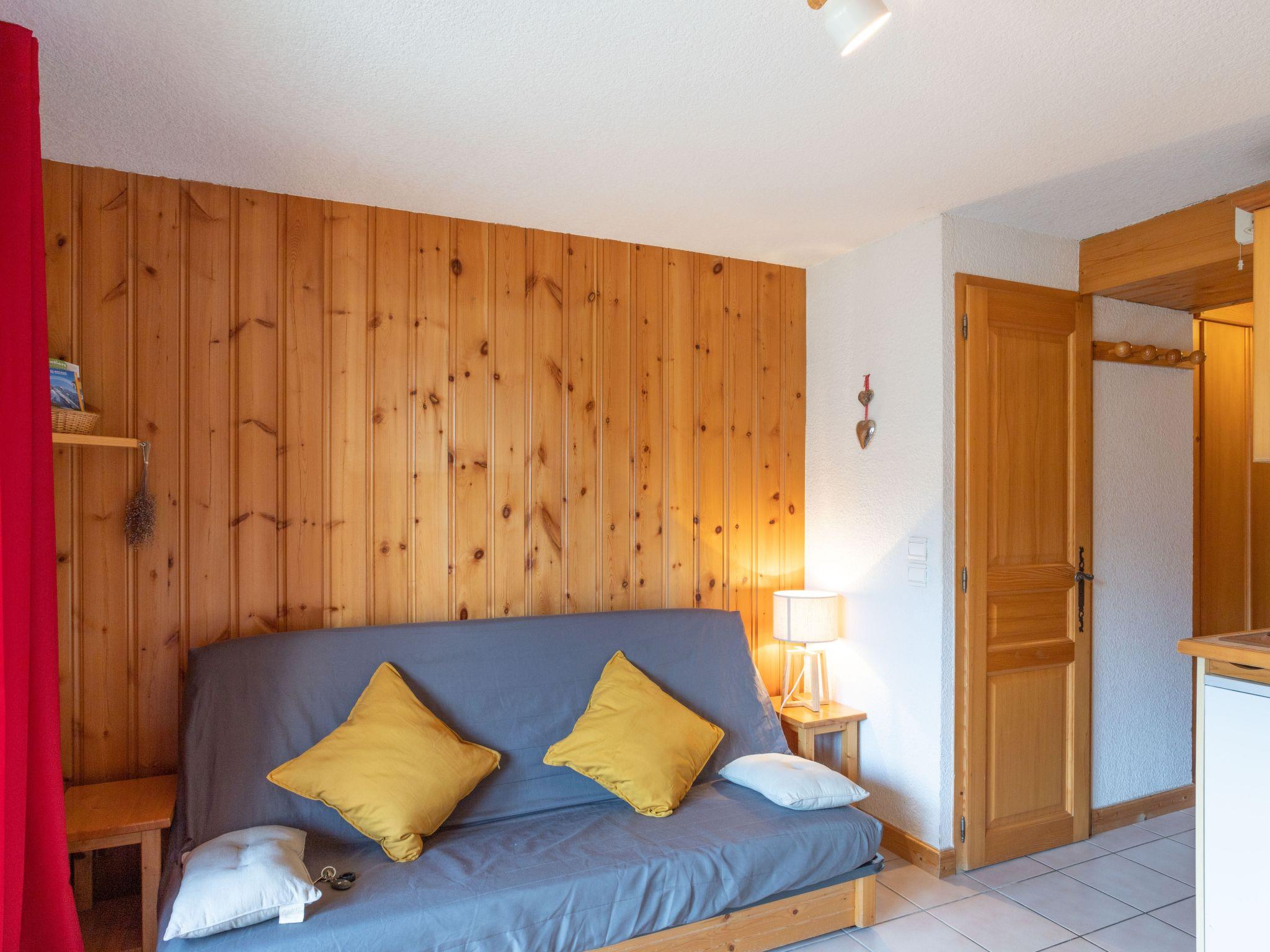 "Aiguilles du Midi", 2-room apartment 24 m2 on 2nd floor. Living/dining room with 1 sofabed (140 cm, length 190 cm), dining table. Exit to the balcony. 1 small room with 1 sofabed (135 cm), 1 x 1 bunk beds (80 cm). Kitchenette (4 hot plates, oven, toaster, kettle, electric coffee machine, Capsules for coffee machine (dolce gusto) extra, raclette grill, combination microwave). Bathroom, sep. WC. Electric heating. Balcony 4 m2, east facing position. Balcony furniture. Panoramic view of the mountains and the resort. Facilities: iron. Internet (WiFi, extra). Parking (1 car). Please note: non-smokers only. 1 small pet/ dog allowed. TV only FR. Smoke alarm, no lift. Offer by a private individual according to Art. 155, IV of CGI.