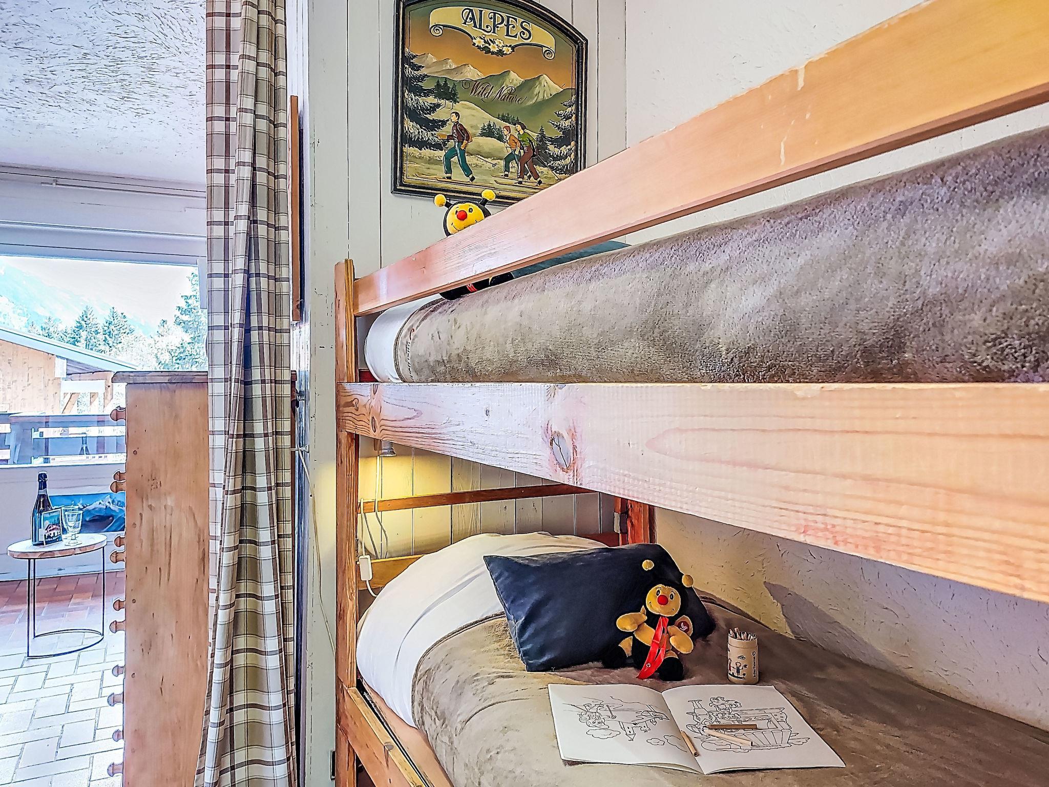 "Les Collybies", 1-room studio 22 m2 on 1st floor. Entrance hall with 1 x 2 bunk beds (80 cm, length 190 cm). Living/dining room with 1 sofabed (140 cm, length 190 cm). Exit to the balcony. Kitchenette (2 ceramic glass hob hotplates, toaster, kettle, electric coffee machine, combination microwave). Bath/WC, hip bath. Electric heating. Balcony 7 m2, east facing position and south-east facing position. Balcony furniture. Very beautiful view of the mountains. Facilities: Internet (WiFi, extra). Parking. Please note: non-smokers only. 1 small pet/ dog allowed. TV only FR. Smoke alarm, no lift. Offer by a private individual according to Art. 155, IV of CGI.
