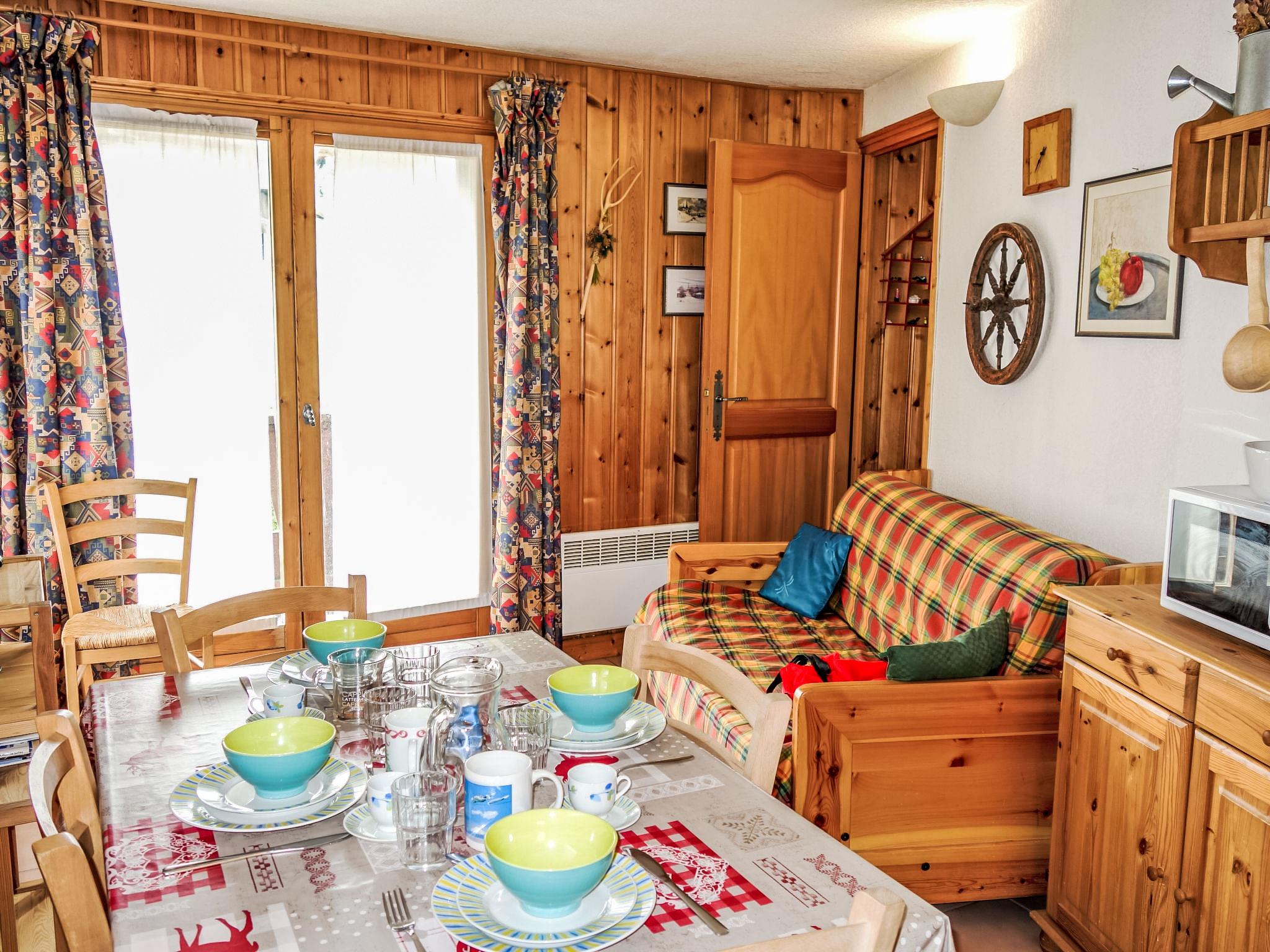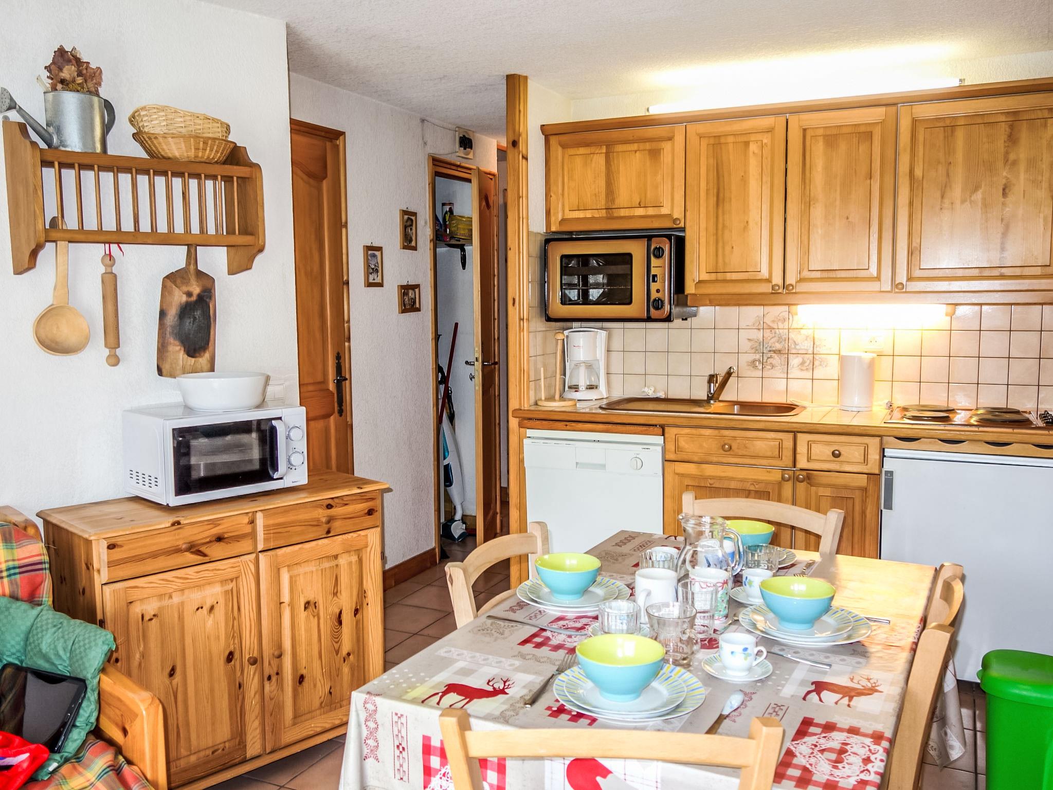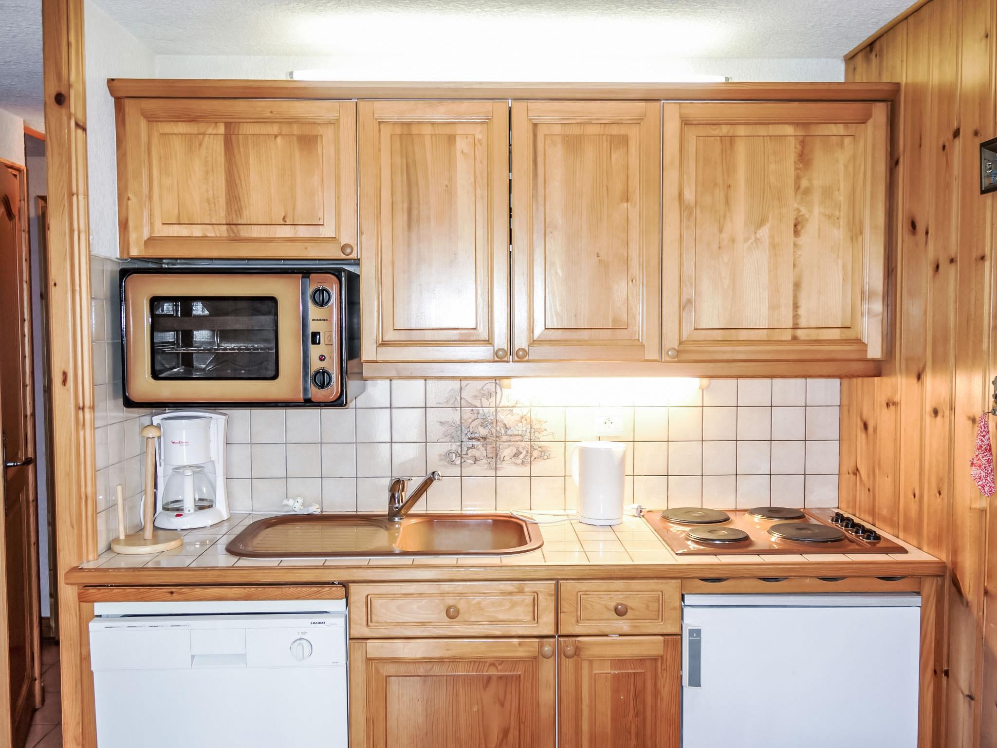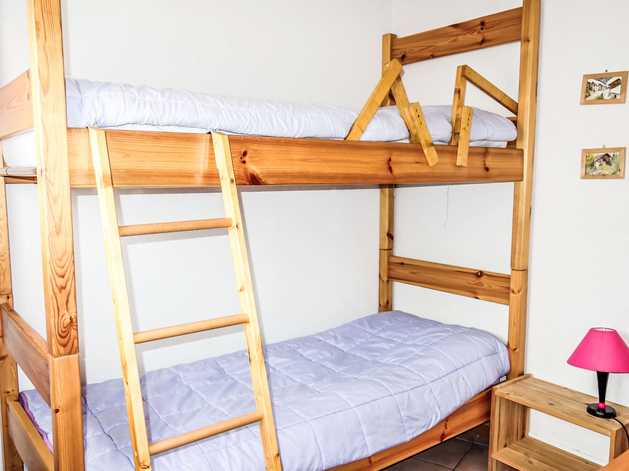 "Jardins Alpins 5", 3-room apartment 45 m2 on 2nd floor, south-east facing position. Entrance hall. 1 room with 1 french bed (140 cm). 1 room with 1 x 2 bunk beds (80 cm). Living/dining room with dining table and TV. Exit to the balcony. Kitchenette (4 hot plates, mini-oven, dishwasher, toaster, kettle, microwave, electric coffee machine). Shower/bidet/WC. Electric heating. Beautiful distant view of the mountains. Facilities: washing machine, children's high chair, baby cot for up to 2 year olds. Internet (WiFi, extra). Garage space n 24. Please note: non-smokers only. TV only FR. Smoke alarm.