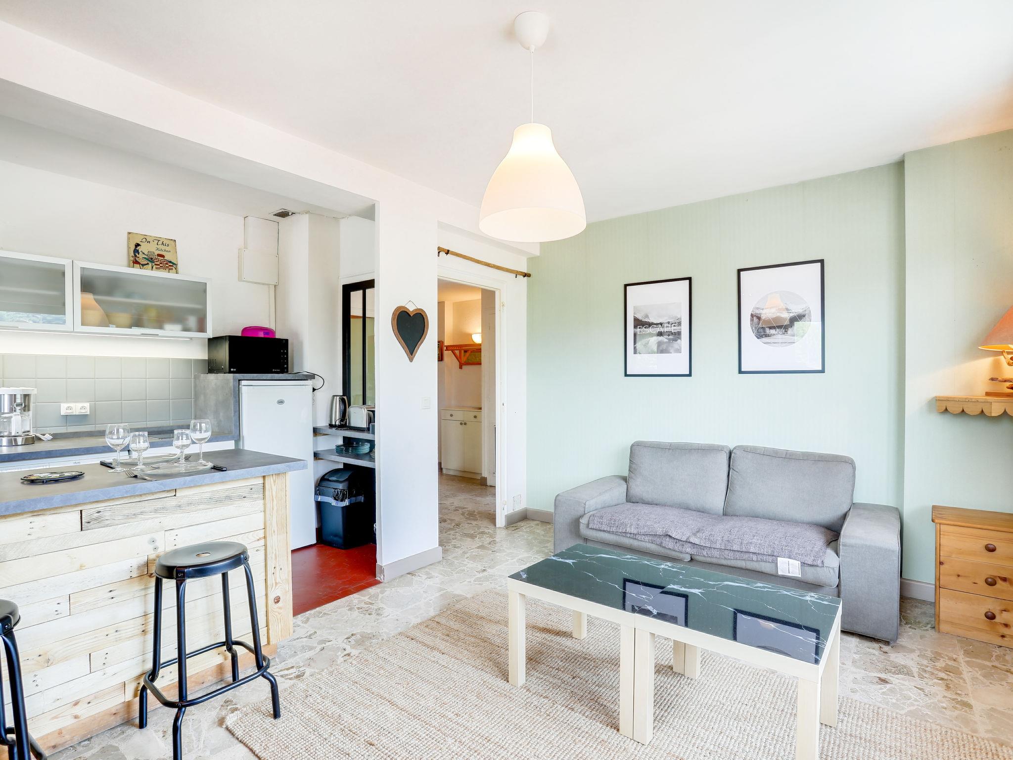 "Le Sarto", 3-room apartment 55 m2 on 3rd floor. Comfortable and beautiful furnishings: living/dining room with TV. Exit to the balcony. 1 room with 1 french bed (1 x 160 cm, length 190 cm). 1 room with 1 double sofabed (140 cm, length 190 cm). Open kitchen (2 ceramic glass hob hotplates, toaster, kettle, microwave, electric coffee machine). Bathroom, sep. WC. Electric heating. Large balcony 23 m2. Beautiful view of the mountains. Facilities: washing machine. Internet (WiFi, extra). Please note: non-smokers only. TV only FR. Smoke alarm, no lift.