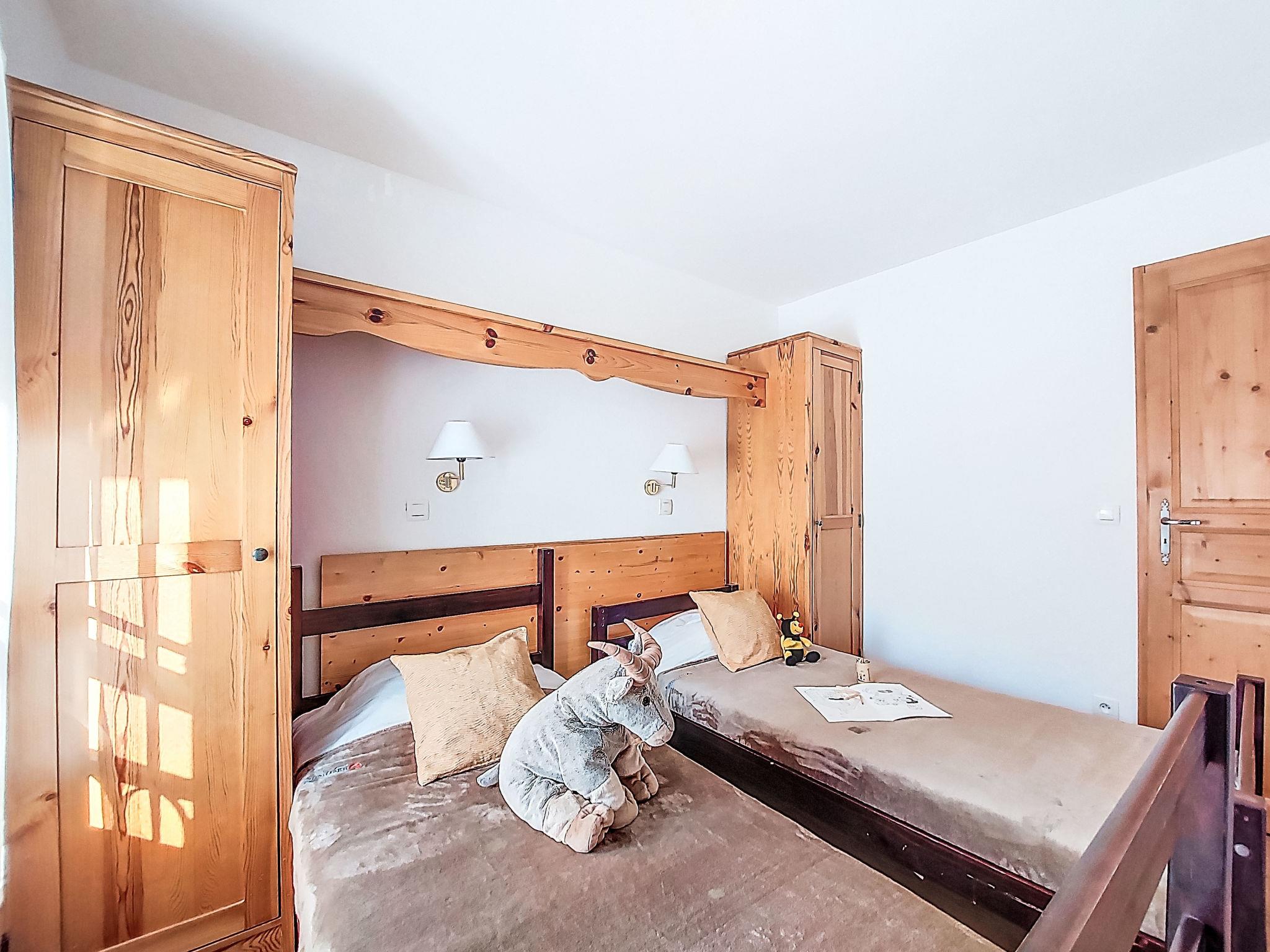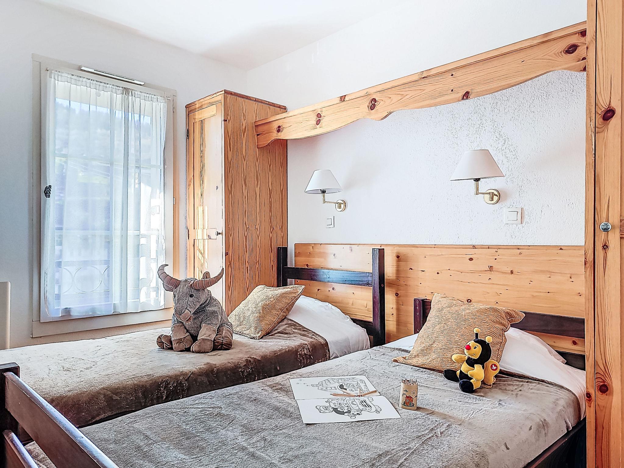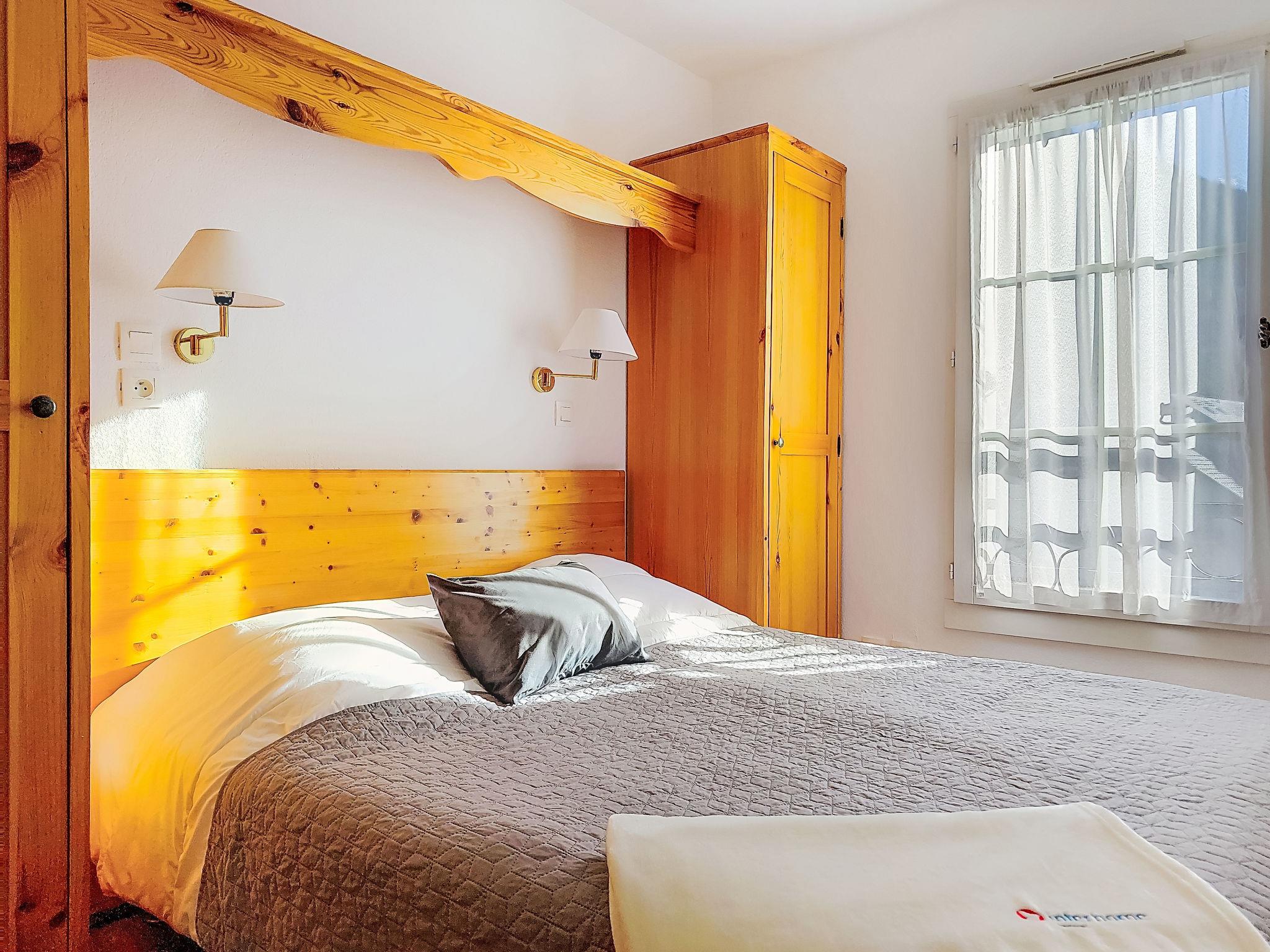 "Le Grand Panorama 412", 3-room apartment 42 m2 on 4th floor. Living/dining room with 1 pull-out bed, dining table and TV. Exit to the balcony. 1 room with 1 french bed (160 cm, length 190 cm), hand-basin, shower and TV. 1 room with 2 beds. Open kitchen (dishwasher, 4 ceramic glass hob hotplates, toaster, kettle, microwave, freezer, electric coffee machine). Bathroom, sep. WC. Electric heating. 2 balconies, south facing position and west facing position. Balcony furniture. Beautiful view of the mountains. Facilities: Internet (WiFi, extra). Garage space n 16. Please note: TV only FR. Smoke alarm. FR7450.700.2