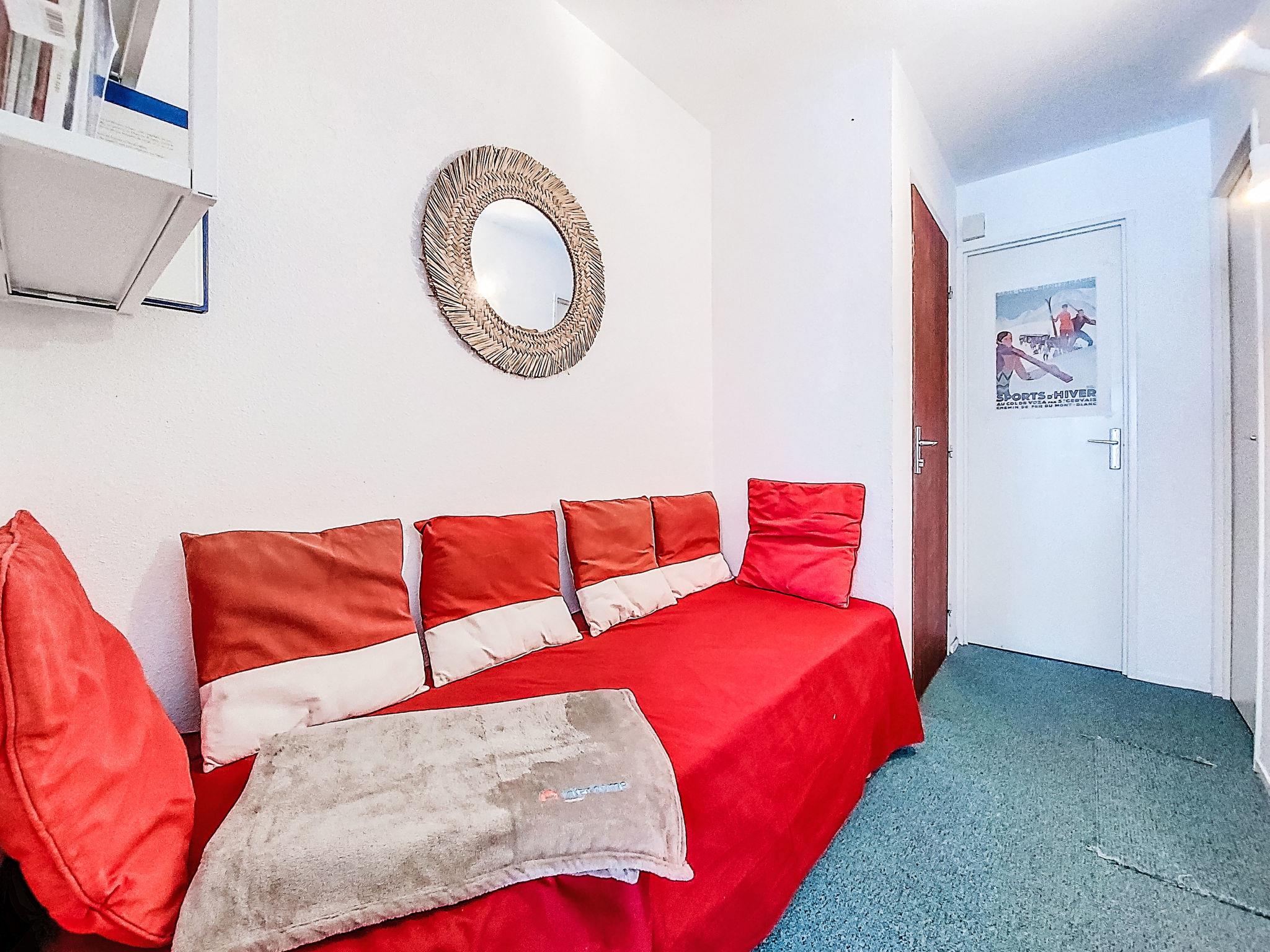 "Topaze 30", 2-room apartment 32 m2, on the ground floor. Living/dining room with 2 sofabeds (80 cm, length 190 cm), TV (flat screen). Exit to the balcony. Sleeping alcove with 1 x 2 bunk beds (70 cm, length 190 cm). 1 room with 1 french bed (160 cm, length 200 cm). Kitchenette (2 hot plates, mini-oven, dishwasher, toaster, kettle, electric coffee machine, combination microwave). Bath/WC. Electric heating. Balcony, south facing position. Partial view of the mountains. Facilities: Internet (WiFi, extra). Parking. Please note: non-smokers only. TV only FR. Smoke alarm. Offer by a private individual according to Art. 155, IV of CGI.