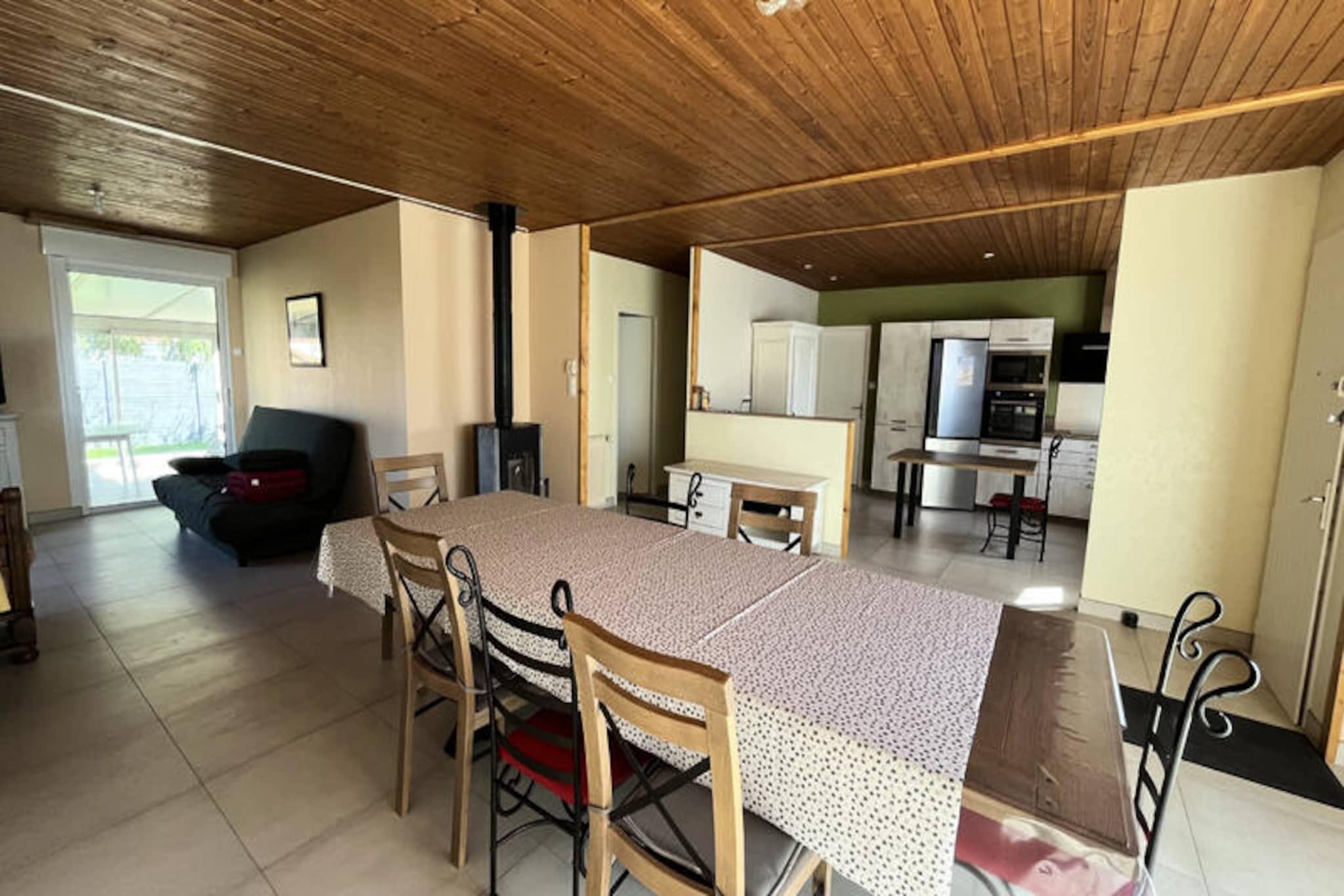I det rolige Val de Vie-distrikt tilbyder dette dejlige feriehus på 80 m² en perfekt blanding af komfort og bekvemmelighed, kun 15 minutters gang fra den charmerende Quai de St Gilles. Uanset om du søger et roligt tilflugtssted eller en aktiv ferie, imødekommer denne ejendom alle dine behov med sin indbydende atmosfære og gennemtænkte faciliteter. Den lukkede grund, komplet med en veranda og en gynge, giver et privat rum til at slappe af og koble fra efter en dag med udforskning af de maleriske omgivelser. Indenfor har huset en rummelig stue med et åbent køkken udstyret med moderne apparater, herunder en ovn, mikrobølgeovn og induktionskogeplade. Opholdsstuen fungerer også som soveplads med en komfortabel sovesofa, mens to hyggelige soveværelser med garderobeskabe sikrer afslappende nætter for op til seks gæster. Et brusebad, separat toilet og en garage til opbevaring af cykler og strandudstyr bidrager til den praktiske anvendelighed af dette charmerende hjem. Ved ophold på seks nætter eller mere er sengelinned omhyggeligt inkluderet, hvilket sikrer en problemfri oplevelse. Beliggenheden er ideel for dem, der elsker at udforske til fods eller på cykel, med den naturskønne Quai de St Gilles kun en kort køretur væk. I nærheden finder du muligheder for at fordybe dig i regionens naturlige skønhed, fra kystvandringer til cykeleventyr. Parkering er bekvemt tilgængelig foran garagen, og valgfrie tjenester såsom slutrengøring og leje af sengetøj kan arrangeres for ekstra bekvemmelighed. Uanset om du nyder den fredelige atmosfære i Val de Vie-distriktet eller tager ud for at opdage de lokale attraktioner, lover dette feriehus et mindeværdigt ophold. Med sin blanding af komfort, charme og tilgængelighed er det det perfekte valg for familier, par eller venner, der ønsker at skabe varige minder i dette smukke hjørne af Frankrig.