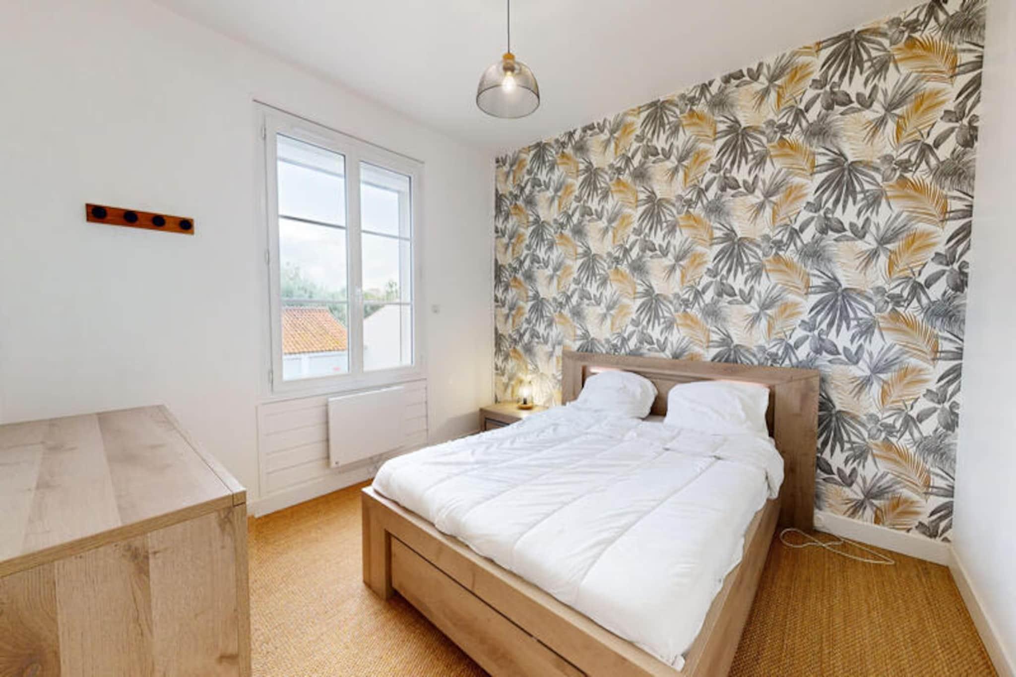 Hvor det gyldne sand på Plage des Demoiselles møder den forfriskende atlantiske brise, tilbyder L'Étoile des Mers en rolig oase i hjertet af Saint-Jean-de-Monts. Denne charmerende lejlighed på 50 m², beliggende på øverste etage i en smukt renoveret villa fra 1950'erne, inviterer dig til at opleve den perfekte blanding af moderne komfort og kystcharme. Kun 300 meter fra stranden er det et idyllisk tilflugtssted for familier eller grupper på op til seks gæster, der søger afslapning og eventyr ved havet. \n\nIndenfor kan lejligheden prale af to rummelige soveværelser: et med en dobbeltseng og en enkeltseng, og det andet med en hyggelig dobbeltseng. Den lyse stue har en komfortabel sovesofa, mens det fuldt udstyrede køkken indeholder alt, hvad du behøver for at tilberede lækre måltider, fra opvaskemaskine til kaffemaskine. Gå ud på den store terrasse på 40 m², komplet med havemøbler og grill, hvor du kan sole dig eller nyde en middag under stjernerne. Med privat parkering, Wi-Fi og gennemtænkte faciliteter som vaskemaskine og elektrisk varme, er hver eneste detalje designet til din bekvemmelighed. \n\nUd over villaen venter den pulserende by Saint-Jean-de-Monts. Der er kun 200 meter til lokale butikker, bagerier og restauranter, eller udforsk det travle marked, der afholdes to gange om ugen. For dem, der søger eventyr, ligger vandlandet Atlantic Toboggan kun 3 km væk, mens golfspillere vil sætte pris på den nærliggende Saint-Jean-de-Monts Golfbane. Naturelskere kan vandre gennem den nærliggende skov eller tage til eventyrparken Le Grand Défi for en spændende dag. \n\nUanset om du nyder roen på verandaen, udforsker den maleriske kystlinje eller forkæler dig selv med regionens attraktioner, lover L'Étoile des Mers en uforglemmelig ferie ved havet. Book dit ophold i dag og skab dyrebare minder i denne kystparadis.