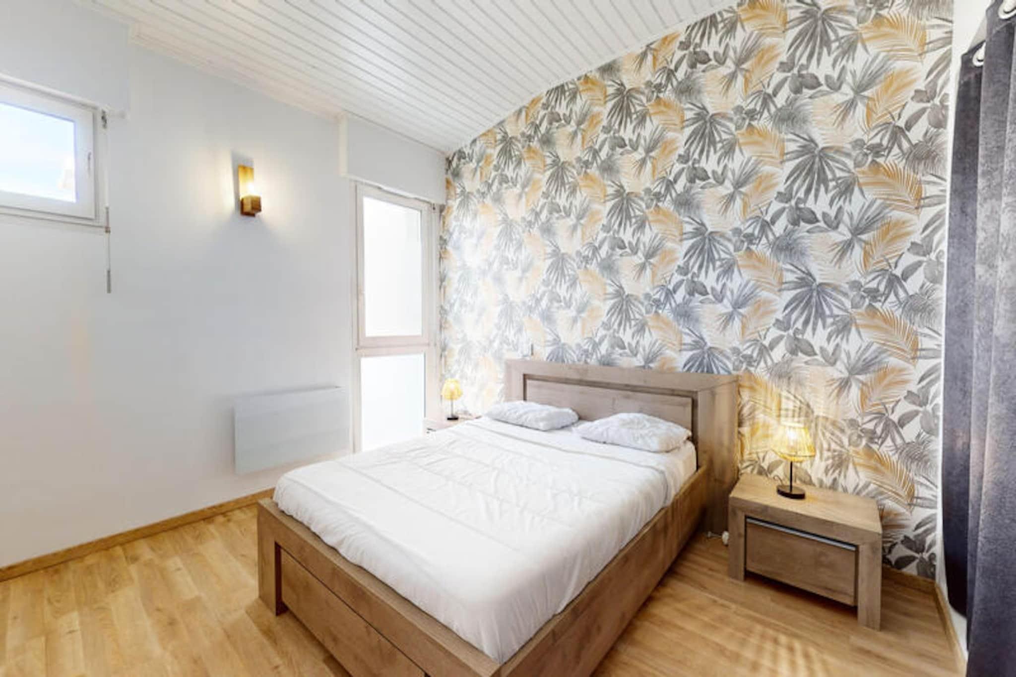 Træd ind i en verden af ??kystcharme i 'Les Flots des Demoiselles', en smukt renoveret lejlighed i stueetagen i Saint-Jean-de-Monts. Kun 300 meter fra Atlanterhavets gyldne sand og glitrende vand er dette indbydende tilflugtssted perfekt til familier eller grupper, der søger en afslappende ferie ved kysten. Med sin blanding af vintage elegance og moderne komfort tilbyder villaen en rolig oase, hvor dyrebare minder venter på at blive skabt. Indenfor finder du et lyst og luftigt opholdsrum, der problemfrit forbinder sig med et fuldt udstyret åbent køkken, ideelt til at tilberede måltider sammen. Lejligheden har fire hyggelige soveværelser designet til at rumme både voksne og børn, samt et rummeligt badeværelse med badekar og bruser. To separate toiletter giver ekstra bekvemmelighed og sikrer et problemfrit ophold for større grupper. Hver detalje er omhyggeligt arrangeret for at skabe et varmt og funktionelt miljø til din ferie. Udenfor inviterer den anlagte have dig til at slappe af på den store træterrasse, der er møbleret med komfortable siddepladser og afslappende lænestole. Uanset om du spiller et venskabeligt spil petanque eller bare nyder solen, er udendørsområdet perfekt til øjeblikke med fælles glæde. Villaens stueetage er helt privat og tilbyder fred og uafhængighed, mens boligen ovenpå forbliver separat med egen indgang og terrasse. Beliggende i hjertet af Saint-Jean-de-Monts, er du kun få skridt fra stranden og tæt på lokale attraktioner, butikker og restauranter. Uanset om du udforsker de nærliggende stier, forkæler dig selv med frisk fisk og skaldyr eller blot nyder havbrisen, er 'Les Flots des Demoiselles' din port til en uforglemmelig kystoplevelse.
