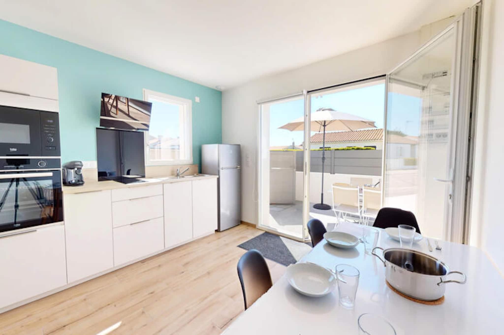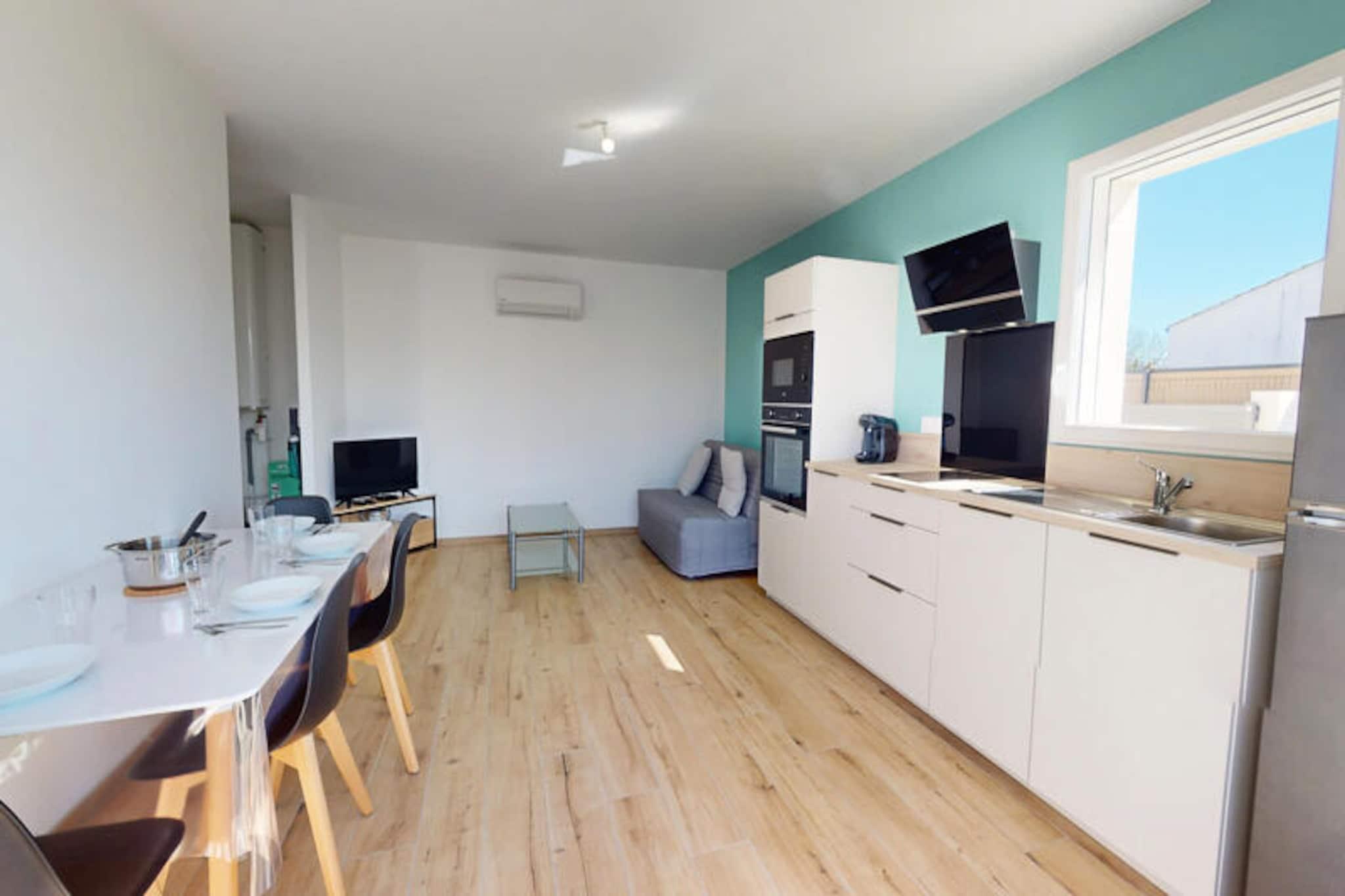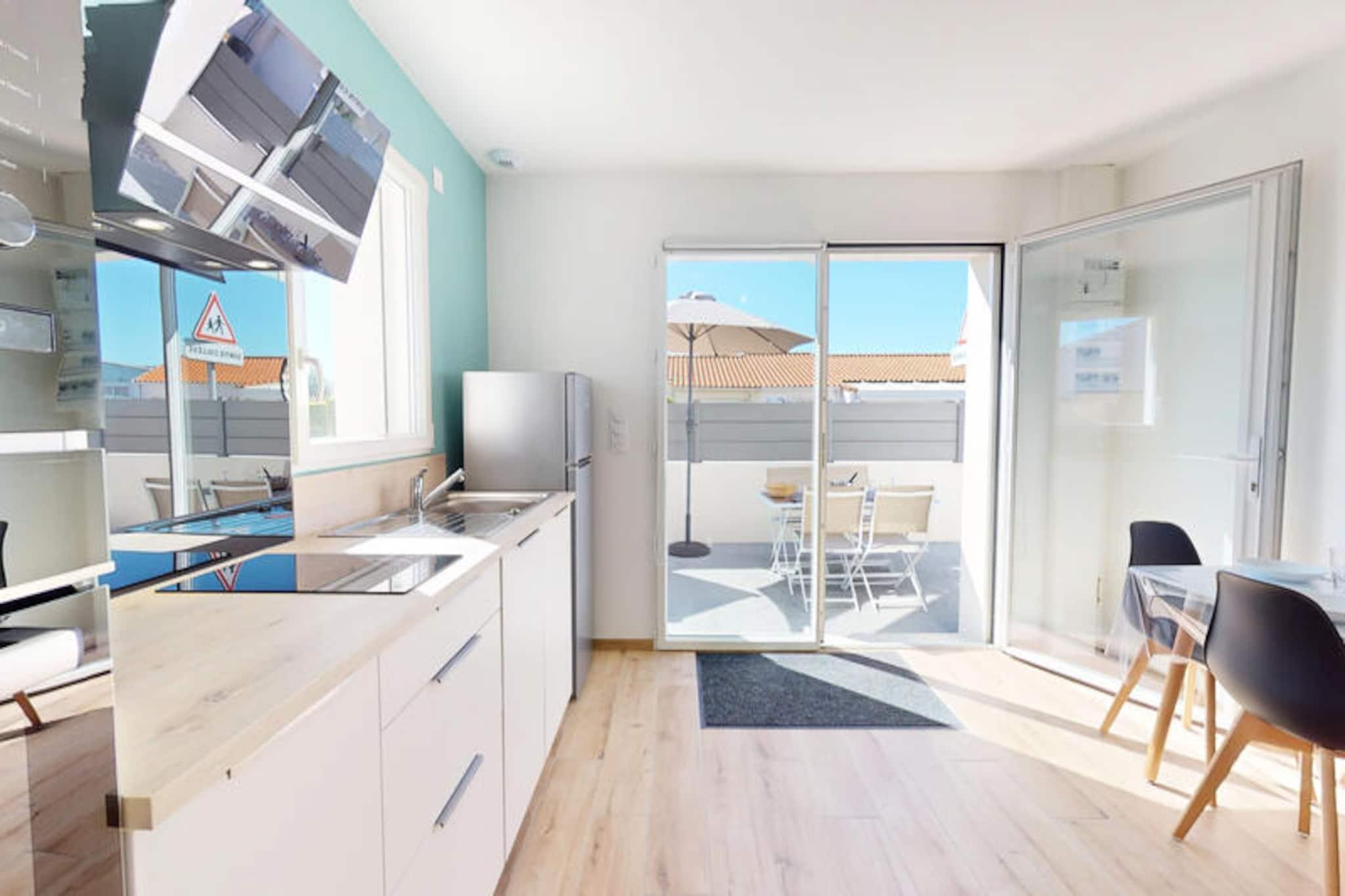 En mild brise bringer duften af ??hav til La Petite Vague, et moderne paradis for op til fire gæster i den charmerende kystby Saint-Gilles-Croix-de-Vie. Her formes livets rytme af de nærliggende strande, travle markeder og havnens rolige flow, hvilket tilbyder en perfekt blanding af afslapning og eventyr. Uanset om du slentrer til bageriet for at købe friske croissanter eller cykler til de livlige gågader, føles hvert øjeblik som en invitation til at nyde essensen af ??Vendée-kysten. \n\nTræd indenfor i dette lyse og gennemtænkte hjem, hvor komfort møder bekvemmelighed. Opholdsstuen med sin hyggelige dobbeltsovesofa inviterer dig til at slappe af efter en dag med udforskning. Soveværelset har to enkeltsenge, der kan kombineres for ekstra fleksibilitet, hvilket sikrer afslappende nætter for alle. Det fuldt udstyrede køkken er en fryd for hjemmekokke, komplet med køleskab med fryser, opvaskemaskine, ovn, mikrobølgeovn og endda en vaskemaskine til længere ophold. Udenfor lokker den private terrasse til solrige morgenmader, afslappende aperitiffer eller stille aftener under stjernerne. \n\nLa Petite Vagues beliggenhed er ideel til at opleve det bedste af Saint-Gilles-Croix-de-Vie. Kun 1 km væk fyldes havnen og det lokale marked med regionale smagsoplevelser, mens stranden og de livlige gader er let tilgængelige via nærliggende cykelstier. For spændingssøgende ligger Le Grand Défi-parken en kort køretur væk, der tilbyder trætop-eventyr og paintball midt i frodige grønne områder. Shopping er også en leg med bekvemme muligheder som Leclerc og Action lige rundt om hjørnet. \n\nUanset om du er her for at nyde solen, udforske kystcharmen eller forkæle dig selv med lokale delikatesser, er La Petite Vague din port til uforglemmelige minder. Book dit ophold, og lad magien ved Vendée-kysten udfolde sig foran dig.