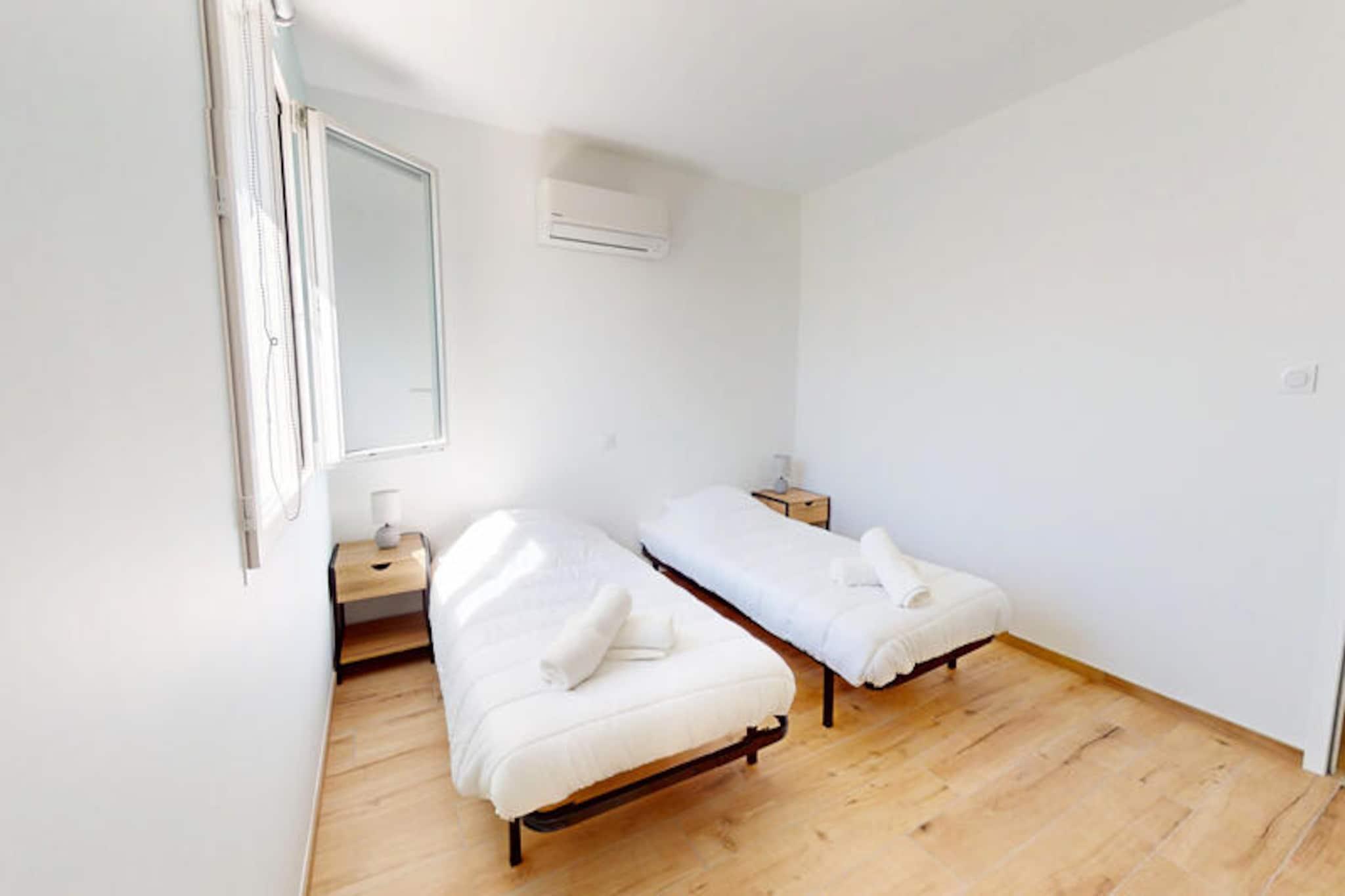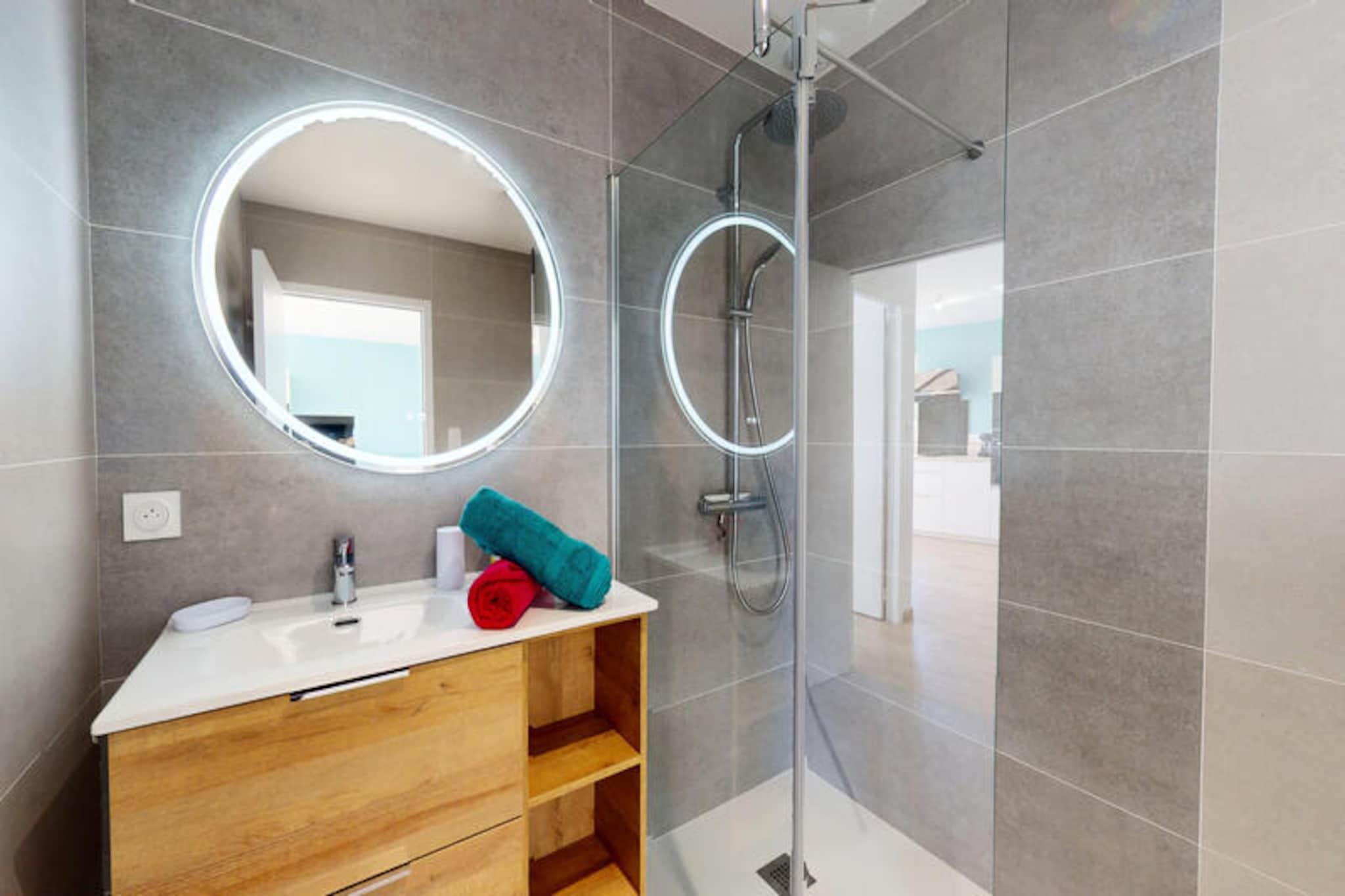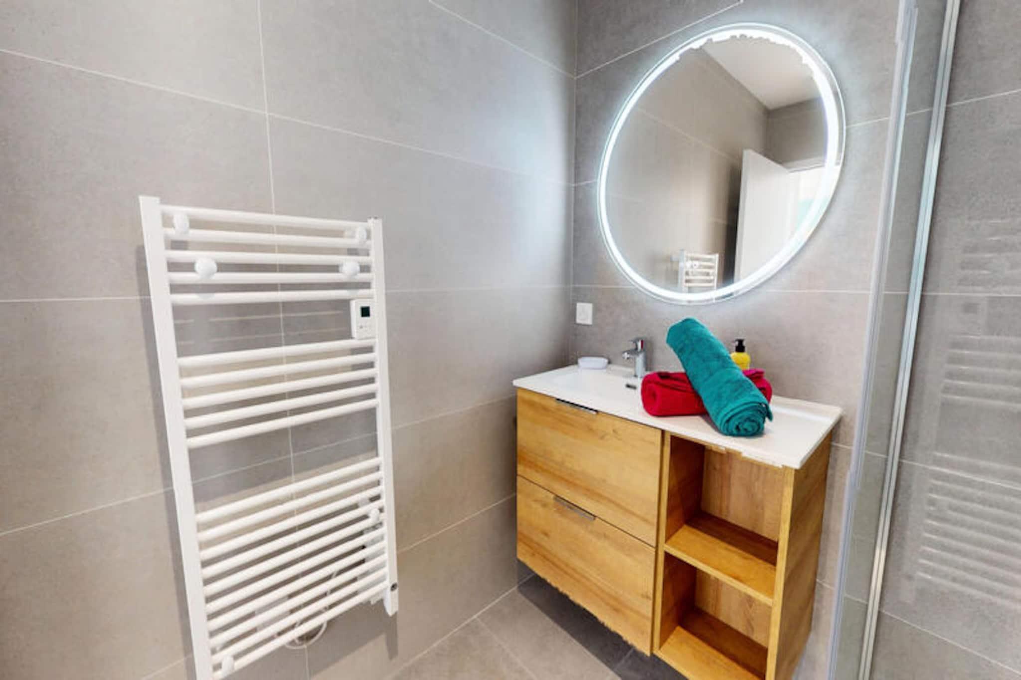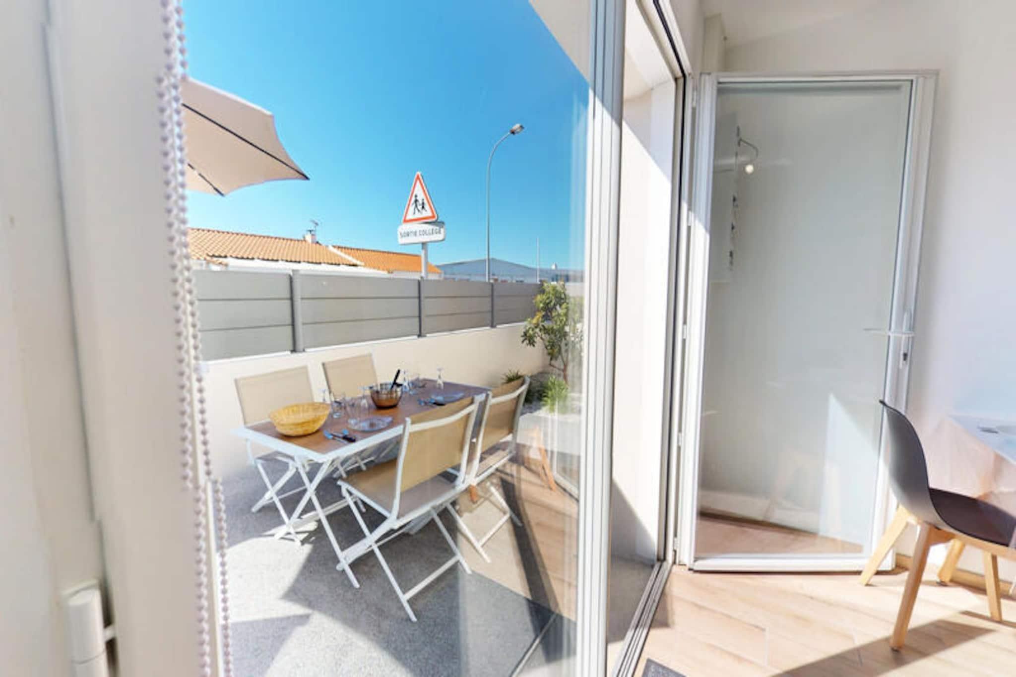 En mild brise bringer duften af ??hav til La Petite Vague, et moderne paradis for op til fire gæster i den charmerende kystby Saint-Gilles-Croix-de-Vie. Her formes livets rytme af de nærliggende strande, travle markeder og havnens rolige flow, hvilket tilbyder en perfekt blanding af afslapning og eventyr. Uanset om du slentrer til bageriet for at købe friske croissanter eller cykler til de livlige gågader, føles hvert øjeblik som en invitation til at nyde essensen af ??Vendée-kysten. \n\nTræd indenfor i dette lyse og gennemtænkte hjem, hvor komfort møder bekvemmelighed. Opholdsstuen med sin hyggelige dobbeltsovesofa inviterer dig til at slappe af efter en dag med udforskning. Soveværelset har to enkeltsenge, der kan kombineres for ekstra fleksibilitet, hvilket sikrer afslappende nætter for alle. Det fuldt udstyrede køkken er en fryd for hjemmekokke, komplet med køleskab med fryser, opvaskemaskine, ovn, mikrobølgeovn og endda en vaskemaskine til længere ophold. Udenfor lokker den private terrasse til solrige morgenmader, afslappende aperitiffer eller stille aftener under stjernerne. \n\nLa Petite Vagues beliggenhed er ideel til at opleve det bedste af Saint-Gilles-Croix-de-Vie. Kun 1 km væk fyldes havnen og det lokale marked med regionale smagsoplevelser, mens stranden og de livlige gader er let tilgængelige via nærliggende cykelstier. For spændingssøgende ligger Le Grand Défi-parken en kort køretur væk, der tilbyder trætop-eventyr og paintball midt i frodige grønne områder. Shopping er også en leg med bekvemme muligheder som Leclerc og Action lige rundt om hjørnet. \n\nUanset om du er her for at nyde solen, udforske kystcharmen eller forkæle dig selv med lokale delikatesser, er La Petite Vague din port til uforglemmelige minder. Book dit ophold, og lad magien ved Vendée-kysten udfolde sig foran dig.