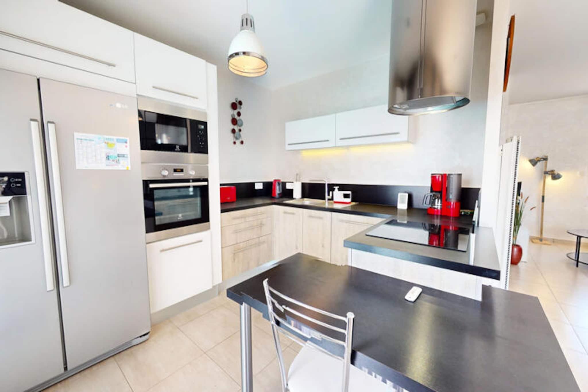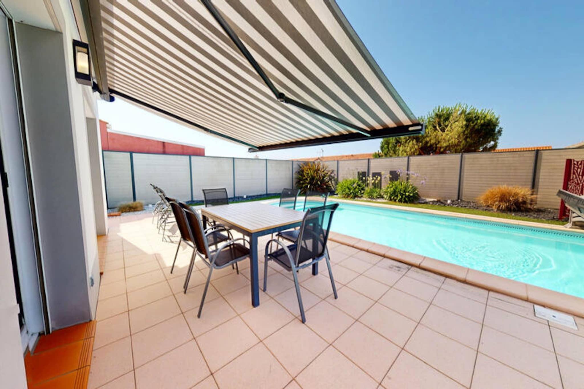 I et roligt hjørne af Saint-Gilles-Croix-de-Vie inviterer Palm Cornue dig til at opleve den perfekte blanding af moderne komfort og kystcharme. Denne lyse og moderne villa er et paradis for op til seks gæster og tilbyder et ideelt tilflugtssted for familier eller venner, der søger afslapning og eventyr. Med sit elegante design og gennemtænkte faciliteter lover dette hjem et mindeværdigt ophold kun få øjeblikke fra Vendées pulserende liv. Træd indenfor og oplev et varmt og indbydende interiør, hvor hver detalje er designet med din komfort i tankerne. Villaen har to hyggelige soveværelser, hver med en komfortabel dobbeltseng, og en rummelig opholdsstue, der flyder problemfrit over i spisestuen og det åbne køkken. Køkkenet er fuldt udstyret med ovn, mikrobølgeovn, opvaskemaskine og kaffemaskine og sikrer ubesværet madlavning, mens den stilfulde indretning skaber en harmonisk atmosfære til afslapning efter en dag med udforskning. Udenfor lokker den private terrasse med sin delvist skyggefulde spiseplads og indbydende swimmingpool, komplet med en udtrækkelig kuppel til nydelse året rundt. Slap af ved vandet på solsenge eller nyd måltider under den elektriske markise, alt sammen i privatlivet i en fuldt lukket have. Der er en garage til opbevaring af cykler eller strandudstyr, hvilket gør det nemt at udforske det omkringliggende område. Palm Cornues beliggenhed er uovertruffen og placerer dig tæt på sandstrande, den travle fiskerihavn og det charmerende centrum af Saint-Gilles-Croix-de-Vie. Cykelstier snor sig gennem den nærliggende nationalskov og langs kystlinjen og tilbyder en betagende havudsigt. For familier tilbyder attraktioner som Dunes Park og Feeling Forest uendelig sjov, mens eventyrere kan vove sig til Île d'Yeu eller den berømte forlystelsespark Puy du Fou. Uanset om du nyder lokale fisk og skaldyr, udforsker kyststier eller blot slapper af ved poolen, er denne villa din port til det bedste af Vendée-regionen.