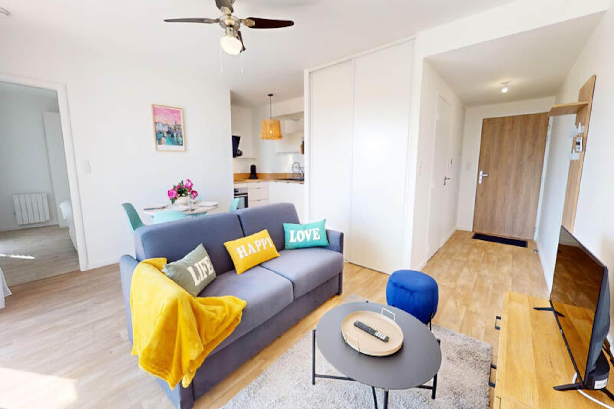 Denne lyse og moderne lejlighed tilbyder et komfortabelt ophold med et rummeligt soveværelse med en 160 cm seng til afslappende nætter. Stuen er smagfuldt indrettet med en hyggelig sovesofa og et tv-område. Beliggende på første sal i en sikker bygning med elevator og privat parkering, tilbyder lejligheden fremragende faciliteter, herunder fiberoptisk Wi-Fi. Kæledyr er ikke tilladt. Knap 2 km fra smukke sandstrande giver lejligheden nem adgang til naturen med klitter, skove og hav i nærheden. For foden af ??bygningen er der et cykelrum og en cykelsti. Et indkøbscenter i Leclerc ligger kun to minutters kørsel derfra. Nærliggende attraktioner omfatter Saint Gilles Croix de Vie, Grand Défi-parken med træklatring og vandlande, og den berømte forlystelsespark Puy du Fou, 1 time og 15 minutter væk. Det fuldt udstyrede køkken omfatter køleskab, fryser, opvaskemaskine, keramisk kogeplade, ovn, mikroovn og Senseo-kaffemaskine. Badeværelset har italiensk bruser og vaskemaskine/tørretumbler. Valgfri leje af sengetøj og rengøring sikrer ekstra bekvemmelighed for et behageligt ophold.