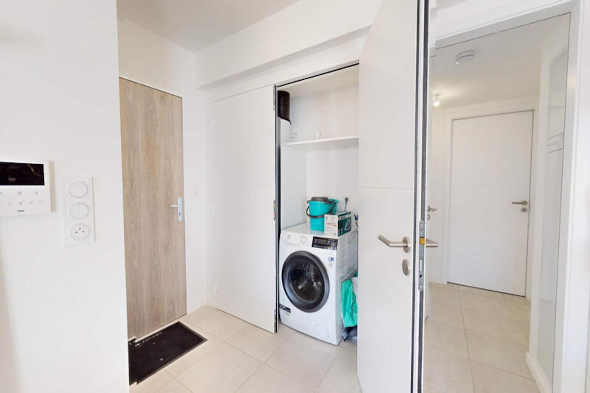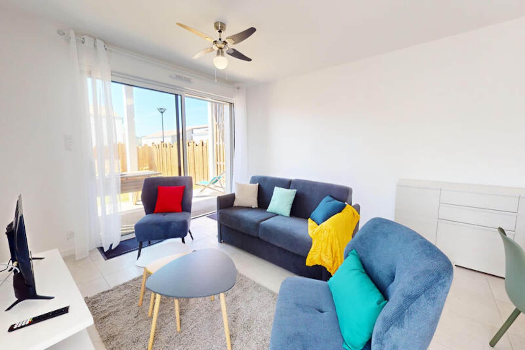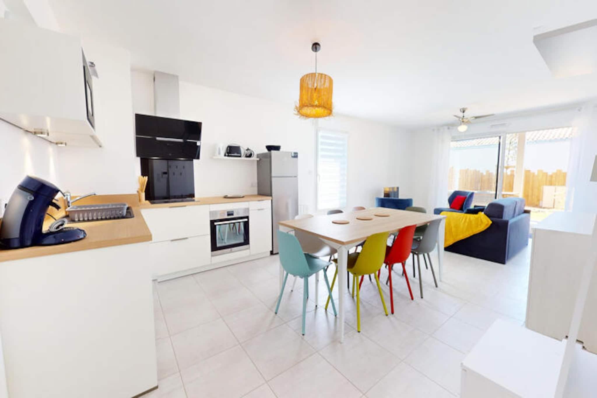 Denne rummelige og stilfulde lejlighed tilbyder 66,6 kvadratmeter komfort og kan rumme op til 6 personer. Den har to indbydende soveværelser: et med en 160 cm seng og et andet med to 90 cm enkeltsenge. En sovesofa i stuen giver ekstra soveplads. Lejligheden er kæledyrsvenlig og byder dine lodne venner velkommen til et virkelig familieorienteret ophold. Nyd en privat have, hvor du kan slappe af og slappe af. Beliggende kun 2 kilometer fra den store sandstrand, er lejligheden ideelt placeret til at udforske Vendée-kysten. Friluftsentusiaster kan nyde cykelture langs nærliggende cykelstier eller tage naturskønne vandreture i de omkringliggende skove. Downtown Givrand, med dets lokale markeder og caféer, er inden for rækkevidde, og tilbyder en perfekt blanding af natur og lokal charme til din ferie. Det fuldt udstyrede amerikanske køkken omfatter køleskab, mikroovn, ovn, opvaskemaskine og vaskemaskine-tørretumbler. Du kan nyde måltider i spisepladsen eller på terrassen, der er møbleret med komfortable havemøbler. Lejligheden tilbyder også Wi-Fi for din bekvemmelighed, og valgfri rengøring er tilgængelig. Der pålægges en turistskat før ankomst, og sengetøj og husholdningsartikler kan lejes efter anmodning.
