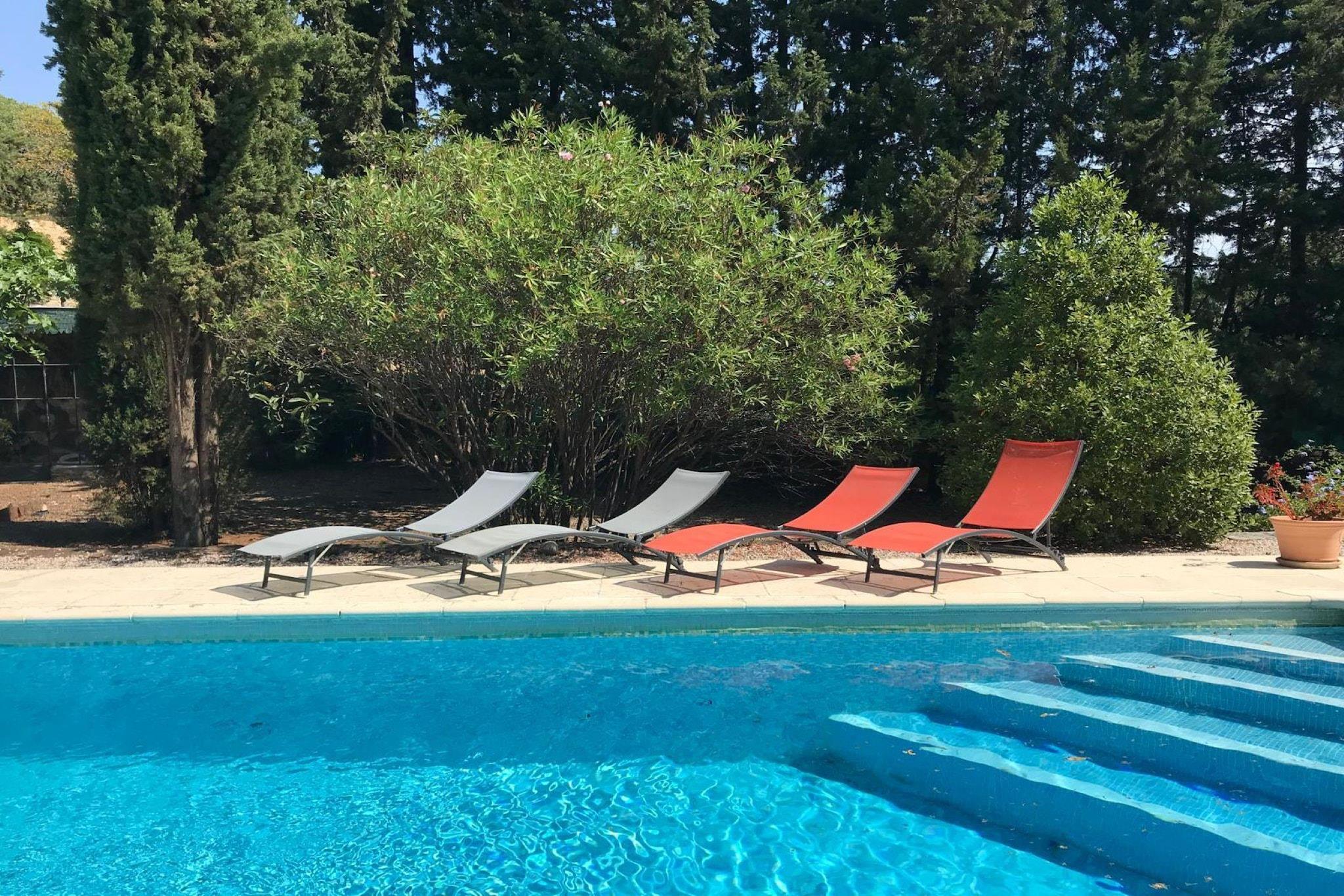 Denne charmerende bolig med swimmingpool er et rummeligt feriehus i Saint-Guiraud, Occitanie, beliggende i fredelige landlige omgivelser tæt på Hérault-dalen og Salagou-søen. Huset er perfekt til familier eller grupper og kombinerer generøs indendørs opholdsplads med fremragende udendørs faciliteter og tilbyder afslappende omgivelser til en mindeværdig ferie i Sydfrankrig. Ejendommen strækker sig over tre etager og har komfortabel plads til op til 10 gæster med fem soveværelser og tre badeværelser. Indenfor giver flere opholdsområder og et fuldt udstyret køkken fleksibilitet til hverdagsbrug og fællesspisning, mens individuelle møbler skaber en hjemlig atmosfære i hele huset. Udenfor kan gæsterne nyde både en udendørs swimmingpool og en separat indendørs pool, der giver muligheder for forfriskende svømmeture året rundt. Boligen inkluderer også en terrasse og have med møbler og grillfaciliteter, ideel til udendørs spisning, solbadning og afslapning i det franske landskab. Der er gratis privat parkering på stedet for ekstra bekvemmelighed. Dette hjem ligger i hjertet af det landlige Occitanie og tilbyder nem adgang til udendørsaktiviteter såsom vandreture og cykling gennem naturskønne vinmarker, kløfter og bølgende landskab. Det er også inden for rækkevidde af Montpellier og dens kulturelle attraktioner, samt historiske steder som Saint-Guilhem-le-Désert og den dramatiske Pont du Diable. Ideel til familier, venner eller grupper på flere generationer. Denne charmerende bolig kombinerer plads, fritid ved poolen og landlig charme for en uforglemmelig fransk ferieoplevelse.