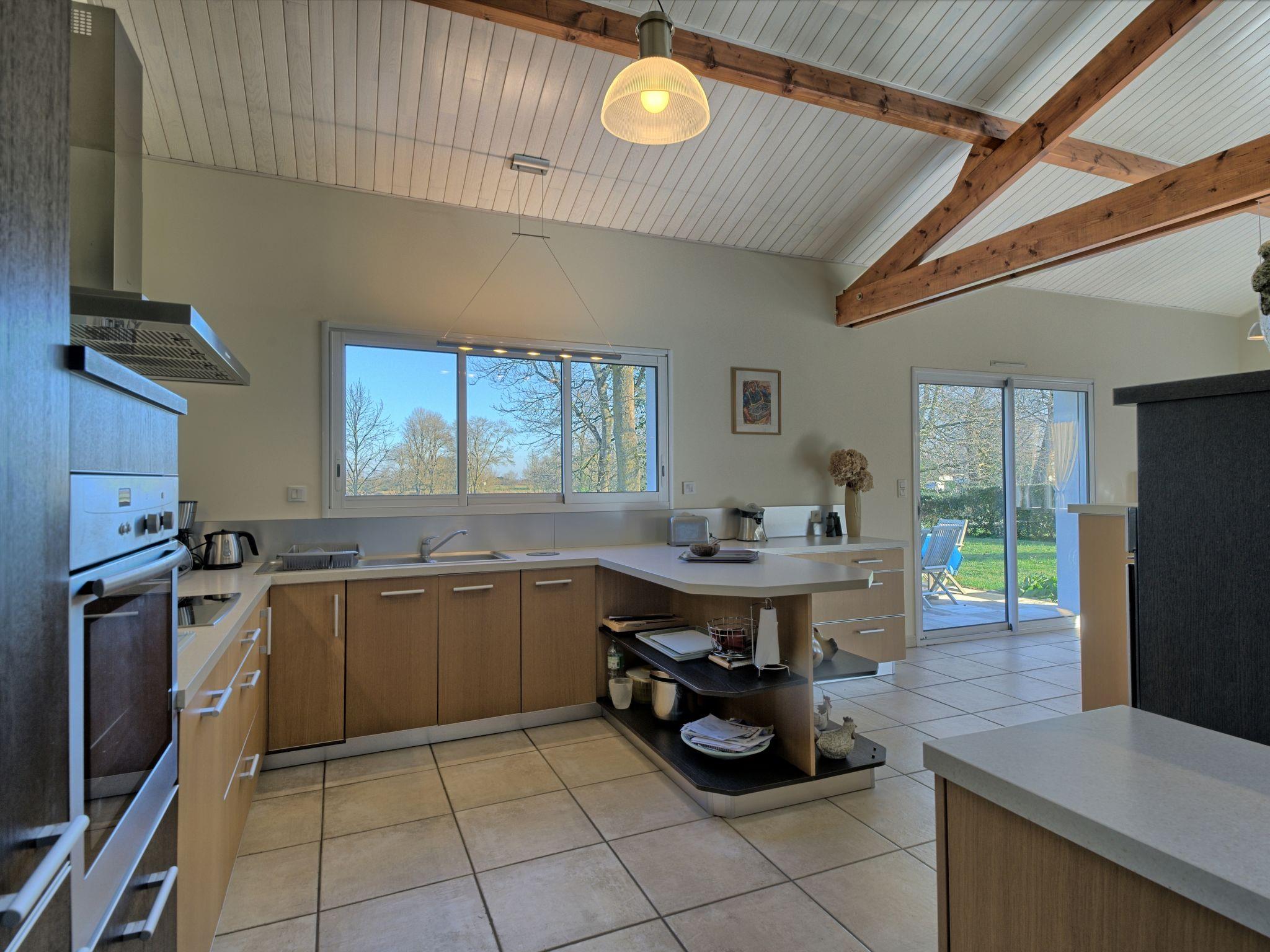 Beautiful single-family house "Charme de la Fradinière". 6 km from the centre of St. Hilaire-de-Riez, 3 km from the centre of Orouet, in the residential district, 6 km from the sea, in a cul-de-sac. Private: natural state property 1'500 m2 (fenced), trees. Terrace, garden furniture. Storeroom available. Parking. Carport. Shop 3 km, supermarket 6 km, bus stop 6 km, sandy beach 6 km. Nearby attractions: St-Gilles-Croix-de-Vie (depart pour Yeu) 9 km, Saint-Jean-de-Monts 10 km, Ile de Noirmoutier 30 km, Les Sables d'Olonne 35 km, Pornic 50 km, Nantes 70 km.