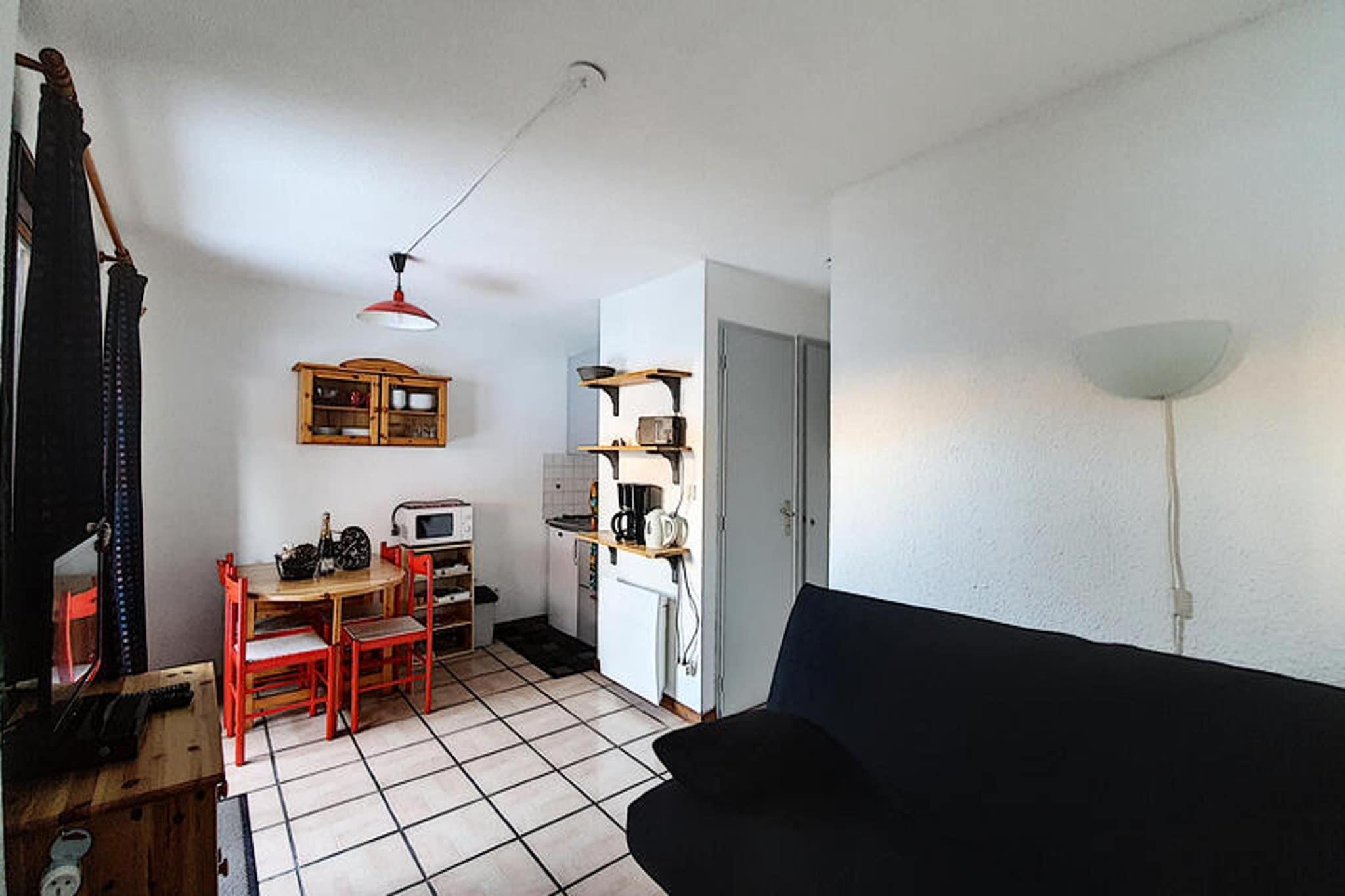 Denne hyggelige studiolejlighed på 25 m² kan rumme op til 4 personer, hvilket gør den perfekt til små familier eller grupper. Den har et separat soveværelse med to køjesenge og et hovedværelse med en sovesofa til ekstra soveplads. Lejligheden er kæledyrsfri og har dyner og puder til alle senge, dog er lagner og håndklæder ikke inkluderet. En raclettemaskine er tilgængelig til hyggelige måltider, og en skiboks sikrer sikker opbevaring af dit vinterudstyr. Beliggende kun 200 meter fra centrum af landsbyen Montriond, er lejligheden ideelt beliggende for nem adgang til lokale butikker og caféer. Den gratis shuttle til Avoriaz- og Morzine-skistationerne stopper lige ved foden af ??bygningen, hvilket giver problemfri adgang til pisterne. Lac de Montriond ligger kun 2 km derfra og byder på fredfyldte naturomgivelser, mens byen Morzine kun ligger 3,6 km derfra. Supermarkeder, herunder "Carrefour"-butikken, ligger inden for en kort afstand af 7 km. Lejligheden har et fuldt udstyret køkken med to elektriske kogeplader, et køleskab, en kaffemaskine, elkedel og brødrister. Spiseområdet omfatter bord og stole, med adgang til en sydøstvendt terrasse med havemøbler til udendørs afslapning. Badeværelset har bruser og håndvask, hvilket fuldender lejlighedens funktionelle faciliteter.