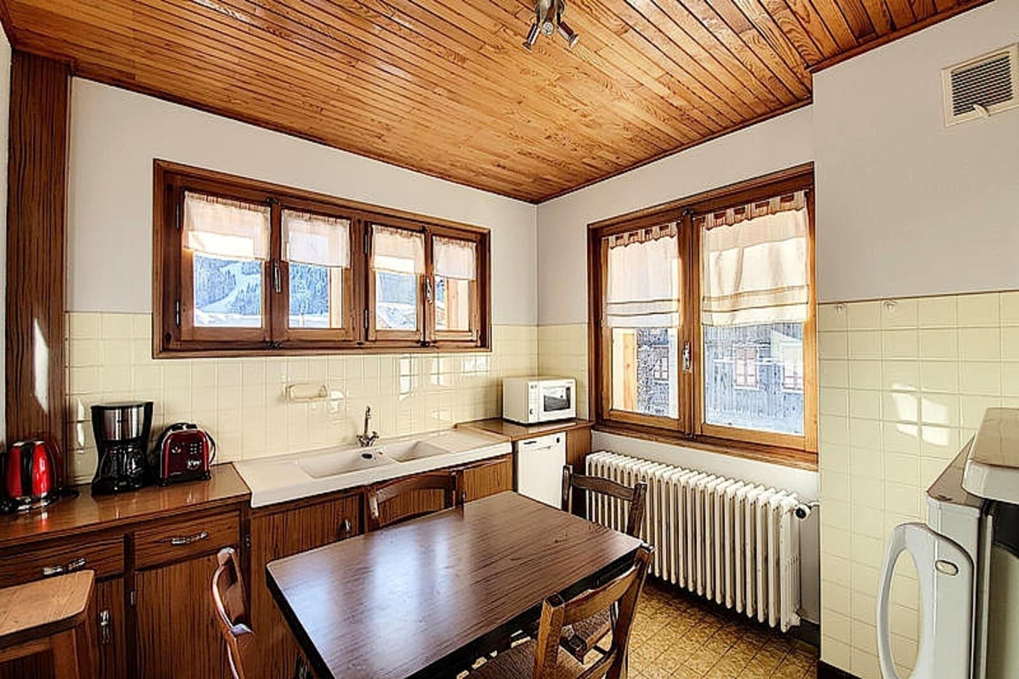 Denne charmerende lejlighed, beliggende på første sal, har komfortabel plads til 5 til 6 personer. Det har et hyggeligt soveværelse med en dobbeltseng og en enkeltseng samt en stue med en sovesofa, tv og en enkeltseng i soveværelset. Lejligheden er ikke kæledyrsvenlig, og gæsterne skal være opmærksomme på, at sengetøj og håndklæder ikke leveres, selvom dyner og puder er tilgængelige til alle senge. Indkvarteringen inkluderer også en babyseng, et strygebræt og et strygejern for nemheds skyld. Ideelt beliggende i Morzine, denne lejlighed tilbyder nem adgang til landsbyen og de omkringliggende områder. Den gratis shuttle-stop ved foden af ??hytten giver hurtig transport til skilifterne, der ligger 1,7 km væk ved Pleney og 2,2 km fra Super Morzine. Om sommeren kan du nyde den fantastiske udsigt over dalen fra balkonen. Byens centrum, der er travlt med caféer, butikker og markeder, er kun en kort afstand, og tilbyder alt hvad du behøver for et behageligt ophold. Derudover ligger den smukke Lac de Montriond kun 7 km fra lejligheden, perfekt til en naturskøn dag ude. Lejligheden er udstyret med et fuldt funktionelt køkken med gaskomfur, mikroovn, brødrister, kaffemaskine, køleskab og opvaskemaskine. Badeværelset er nyrenoveret med bruseniche og håndvask, og der er separat toilet for ekstra privatliv. Gæsterne kan også drage fordel af ski- og mountainbikerummet, som omfatter en vandstråle til rengøringsudstyr.