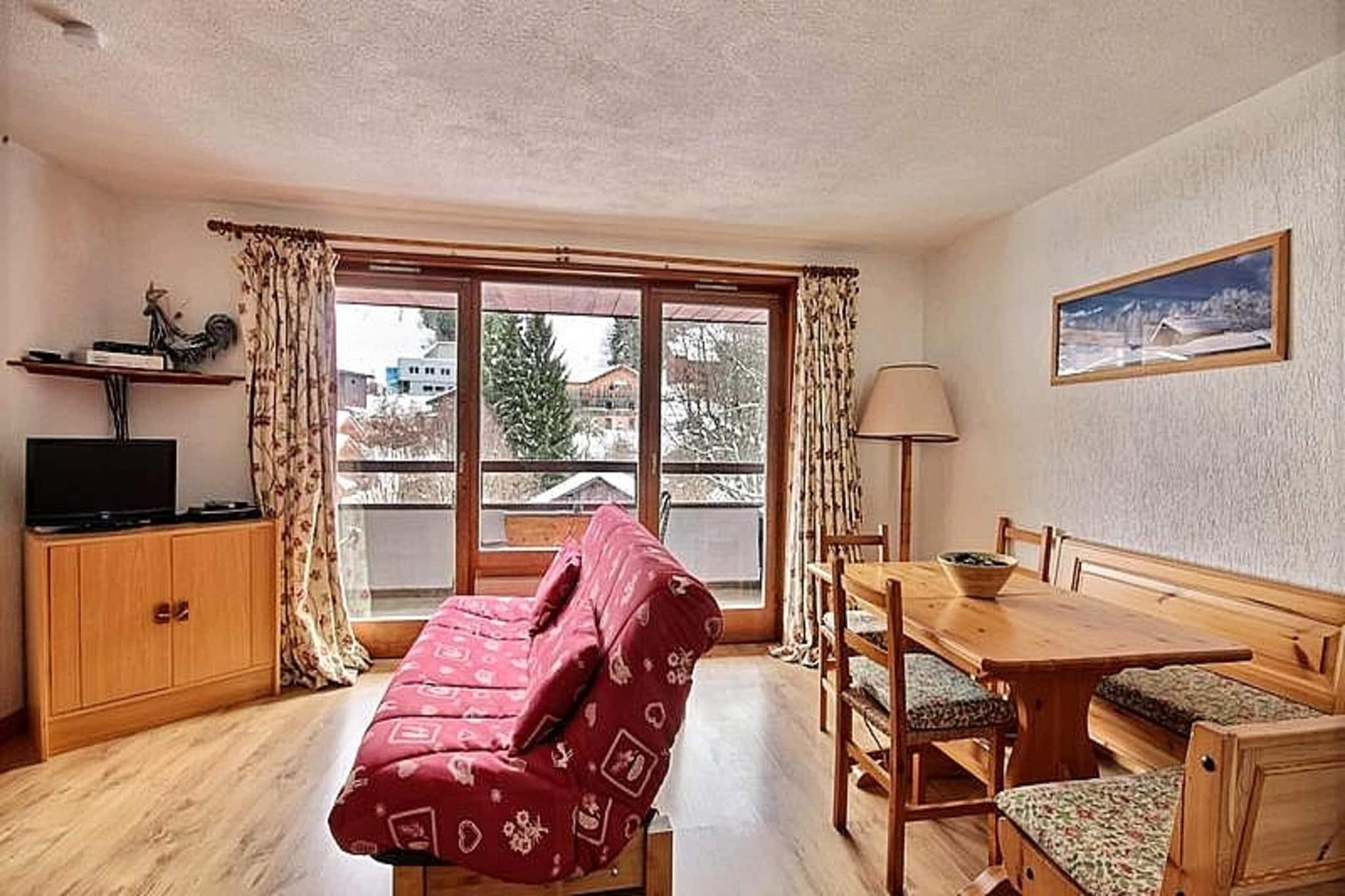 Denne rummelige 65 m² duplex er ideel til 6 til 9 gæster og tilbyder et hyggeligt og veludstyret rum til et mindeværdigt ophold. Ejendommen indeholder en entré med skabe, to loftsværelser med enkeltsenge og et mezzaninområde med ekstra soveplads. Opholdsstuen har en sovesofa, tv og en solrig balkon med havemøbler og grill. Gæsterne vil nyde en fantastisk udsigt over Aulps-dalen. Kæledyr er ikke tilladt, og sengetøj og håndklæder medfølger ikke, selvom dyner og puder er inkluderet i alle senge. Beliggende kun 50 meter fra skilifterne, er denne duplex perfekt placeret for skientusiaster. Gæsterne vil sætte pris på nærheden til caféer, butikker og skiskolen, hvilket gør det bekvemt at udforske resortet til fods. Det omkringliggende område byder også på vandreture, og det større skiområde Portes du Soleil kan nås inden for en kort køretur, hvilket gør det til en ideel base for aktiviteter året rundt. Det fuldt udstyrede køkken giver rigelig opbevaringsplads, en filterkaffemaskine og alle de nødvendige ting til at tilberede måltider. Lejligheden indeholder desuden to badeværelser, det ene med badekar og vaskemaskine, samt separat toilet. For ekstra bekvemmelighed tilbyder bygningen adgang til en kollektiv overdækket og opvarmet swimmingpool, perfekt til at slappe af efter en dag med skiløb eller vandreture. Andre faciliteter omfatter en raclettemaskine, fonduemaskine og Nespresso-kaffemaskine. Der er også kollektiv parkering.