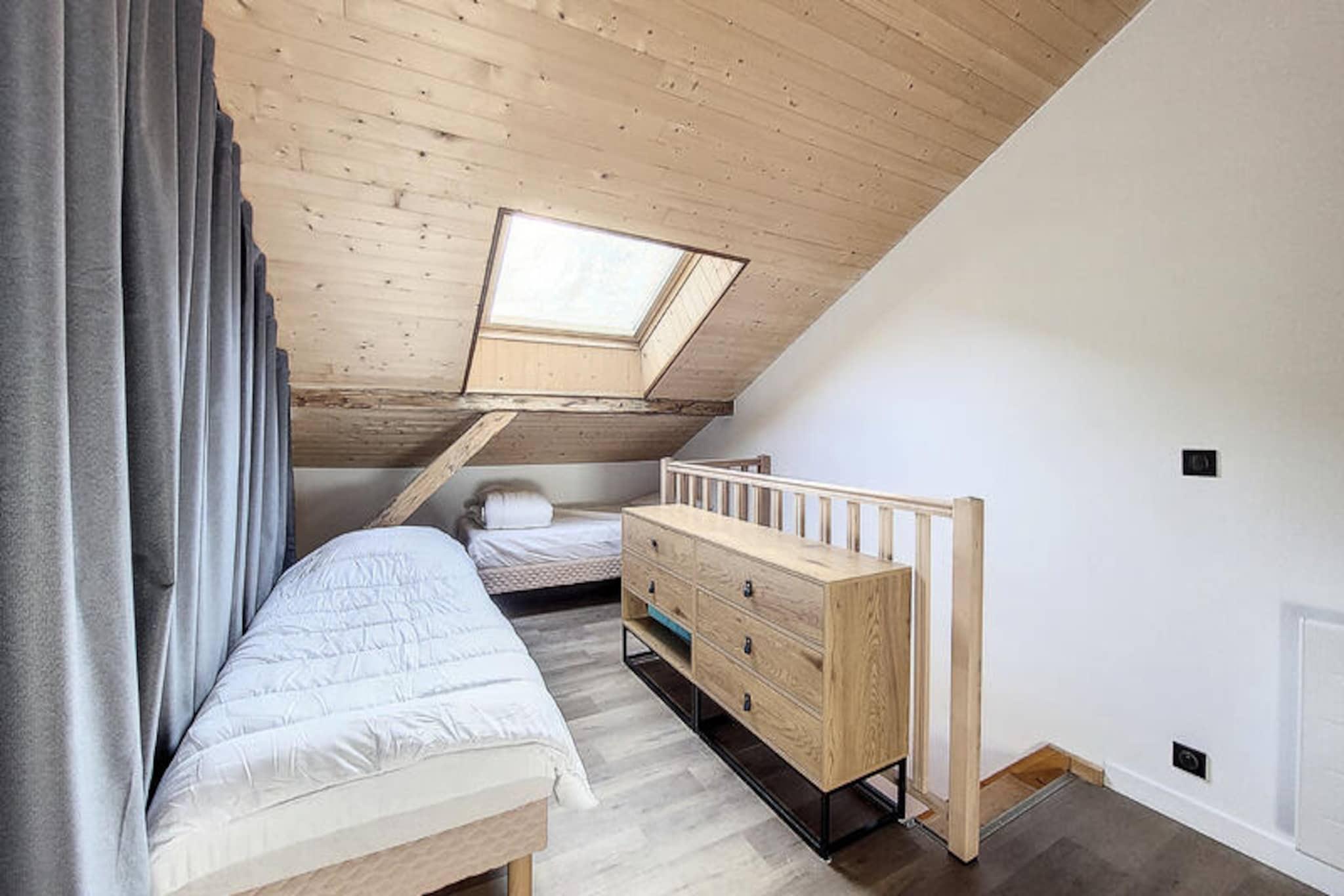 Denne rummelige lejlighed på 1. sal kan rumme 6 til 8 personer, hvilket gør den perfekt til familier eller grupper. Det tilbyder en master suite med to enkeltsenge og et brusebad, samt et andet soveværelse med to enkeltsenge og rigelig opbevaring. Mezzaninen har fire enkeltsenge, ideel til børn eller ekstra gæster. Kæledyr er tilladt (undtagen kategori 1 og 2 hunde), så du kan medbringe dine lodne ledsagere. Sengelinned og håndklæder medfølger ikke, men dyner og puder er tilgængelige til alle senge. Beliggende ved foden af ??pisterne i Saint Jean d'Aulps Station, er lejligheden perfekt beliggende for skiløb og vintersport entusiaster. Området byder på en række nærliggende attraktioner, herunder caféer, restauranter og butikker, hvilket gør det nemt at nyde de lokale smagsoplevelser og faciliteter. Derudover ligger lejligheden kun i kort afstand fra skilifterne, hvilket giver nem adgang til pisterne. Lejligheden er veludstyret med et fuldt funktionelt køkken, herunder induktionskomfur, opvaskemaskine, køleskab, ovn og mikroovn, hvilket gør det praktisk at tilberede måltider. Det rummelige brusebad har en håndklædetørrer og dobbelt håndvask, og et separat toilet er også tilgængeligt. Gæsterne kan også drage fordel af et fælles skirum og vaskeri, som omfatter en vaskemaskine, tørretumbler og sko-/handsketørrer. Den østvendte balkon giver et dejligt sted at slappe af, og der er trådløs internetadgang i hele lejligheden.