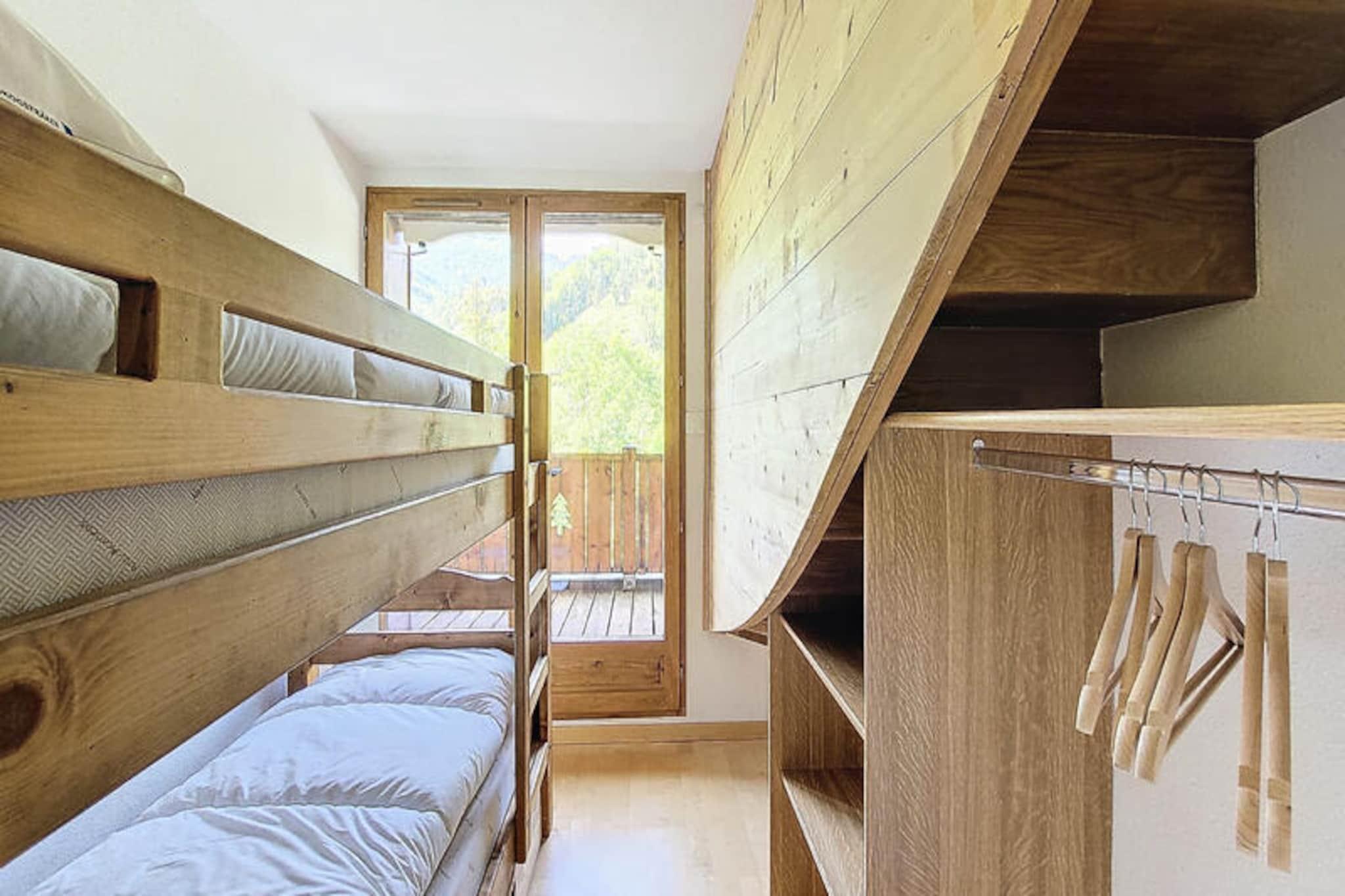 Denne rummelige lejlighed kan komfortabelt rumme 6 til 8 gæster med tre velindrettede soveværelser. Det store soveværelse har en dobbeltseng og et en-suite brusebad, mens det andet soveværelse har endnu en dobbeltseng. Det tredje soveværelse har to enkeltsenge, ideel til børn eller venner. Yderligere sovearrangementer omfatter et bjerghjørne med køjesenge. Lejligheden er udstyret med moderne bekvemmeligheder, herunder elvarme, Wi-Fi, et Smart TV og en brændeovn til hyggelige aftener. Kæledyr er ikke tilladt, og sengetøj og håndklæder leveres ikke, selvom dyner og puder er tilgængelige til alle senge. Denne lejlighed ligger i hjertet af Saint Jean D'Aulps Village og tilbyder nem adgang til nærliggende attraktioner. Et gratis shuttle-busstoppested ligger tæt ved, og tilbyder bekvem transport til skiløjper, vandrestier og lokale butikker. Det omkringliggende område byder på et udvalg af caféer, restauranter og markeder, hvor du kan prøve lokale delikatesser eller shoppe friske råvarer. Gæsterne kan også nyde den smukke udsigt over dalen fra lejlighedens store terrasse, som har udsigt over en fredelig strøm - perfekt til at slappe af efter en dag med udforskning. Lejligheden har et fuldt udstyret køkken med alt hvad du behøver for at tilberede måltider, herunder en mikrobølgeovn, køleskab/fryser, induktionskomfur, traditionel ovn, opvaskemaskine og vaskemaskine. Opholds- og spiseområdet i åbent plan er ideelt til at tilbringe kvalitetstid sammen, og den store udendørs terrasse er perfekt til udendørs spisning, udstyret med en plancha og havemøbler. En garage og udækket parkeringsplads er til rådighed for gæsterne, som tilbyder praktisk opbevaring af skiudstyr eller cykler.