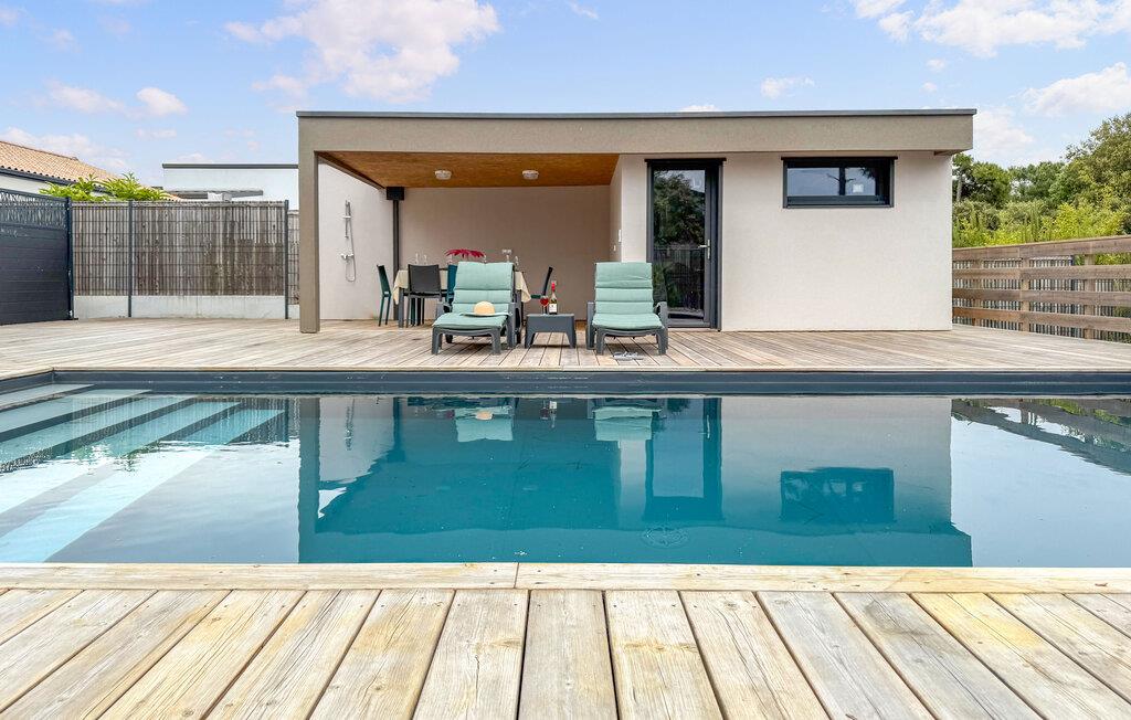 Denne smukke, moderne villa byder jer velkommen i den solrige og livlige badeby Saint-Jean-de-Monts. Det lyse og stilfuldt indrettede indre giver jer masser af plads til fælles madlavning og hyggelige måltider med venner eller familie.