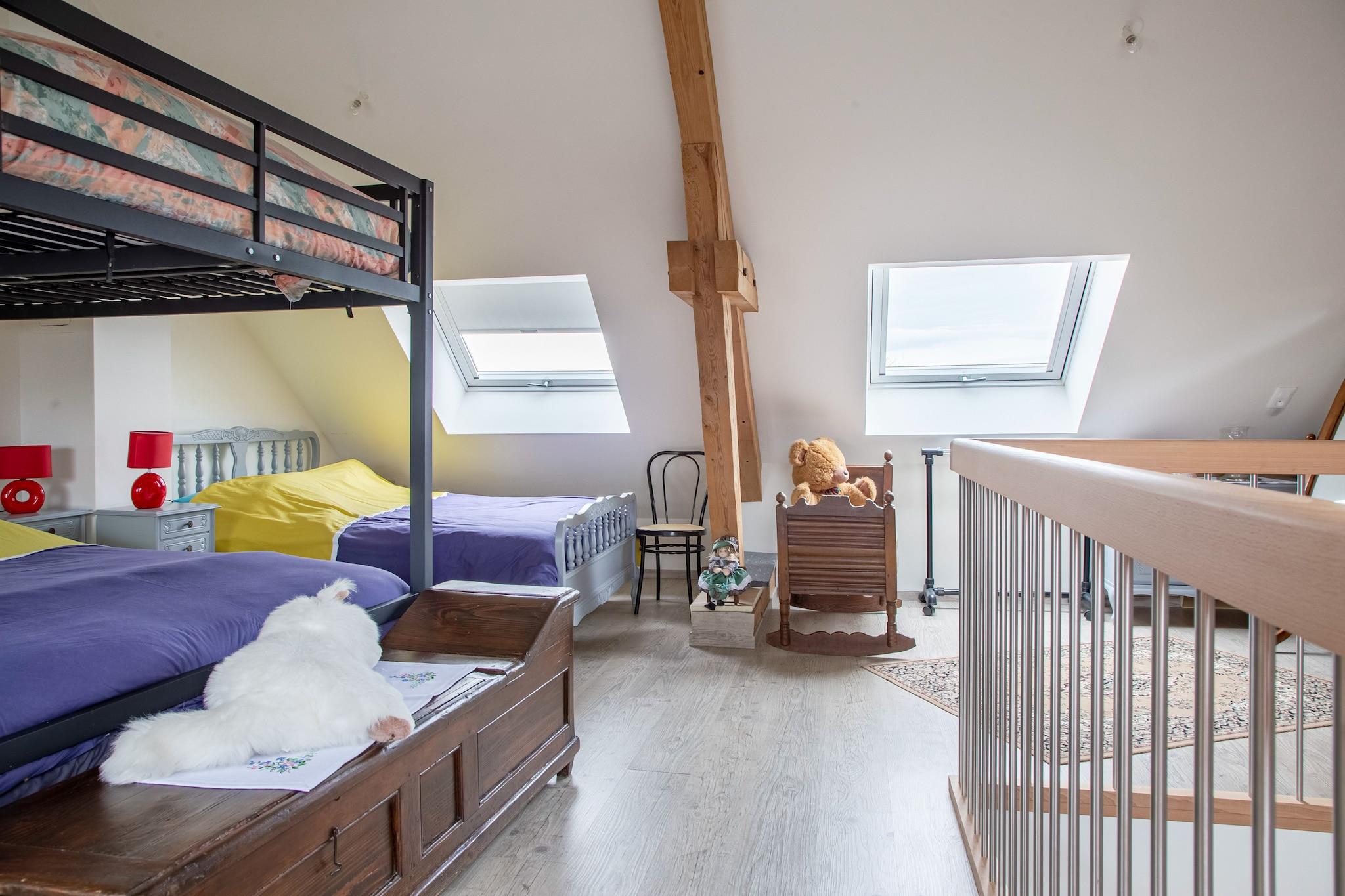 Beliggende i den fredelige landsby Saint-Louis byder dette charmerende feriehus dig velkommen til en verden, hvor natur, komfort og enkelhed smelter sammen. Omgivet af skov og frisk luft på landet er det et perfekt tilflugtssted for familier eller grupper på op til 10 gæster, der ønsker at sætte farten ned, genoprette forbindelsen og nyde livets stille glæder. Uanset om du udforsker nærliggende søer eller nyder stilheden i haven, tilbyder dette hjem en sand flugt fra hverdagens travlhed. Indenfor finder du et varmt og indbydende rum fyldt med naturligt lys og hyggelige hjørner. Den åbne opholdsstue indbyder til lange samtaler, latter og fælles måltider, mens det veludstyrede køkken gør det til en fornøjelse at lave mad sammen. Gå udenfor i den private have, et ideelt sted til afslappede grillfester, middage under stjernerne eller blot at slappe af med en bog, mens børnene leger i nærheden. Når natten falder på, lover de komfortable soveværelser en afslappende søvn, inklusive en sjov hems med køjesenge, som små eventyrere vil elske. De nærliggende byer Phalsbourg og Sarrebourg tilbyder charmerende glimt af den lokale kultur, mens skovture og solnedgange langs søen bringer ro i sjælen. Her føles hver dag let og fuld af livets enkle, smukke øjeblikke.