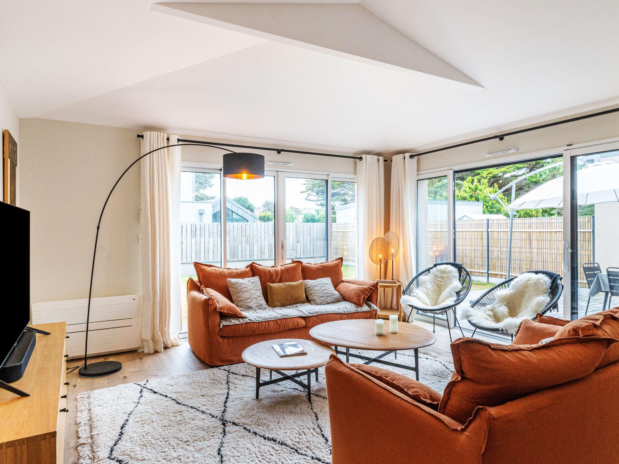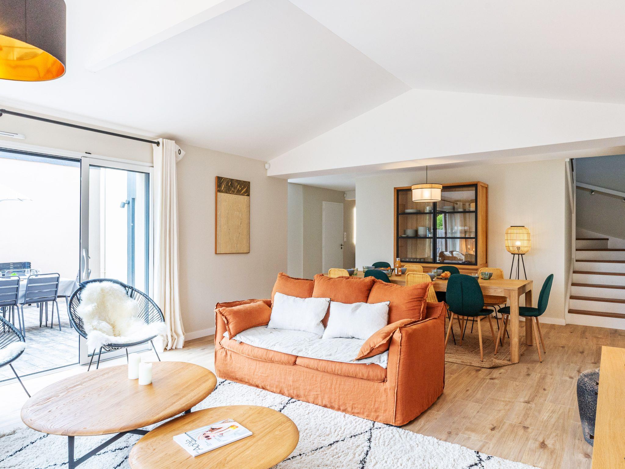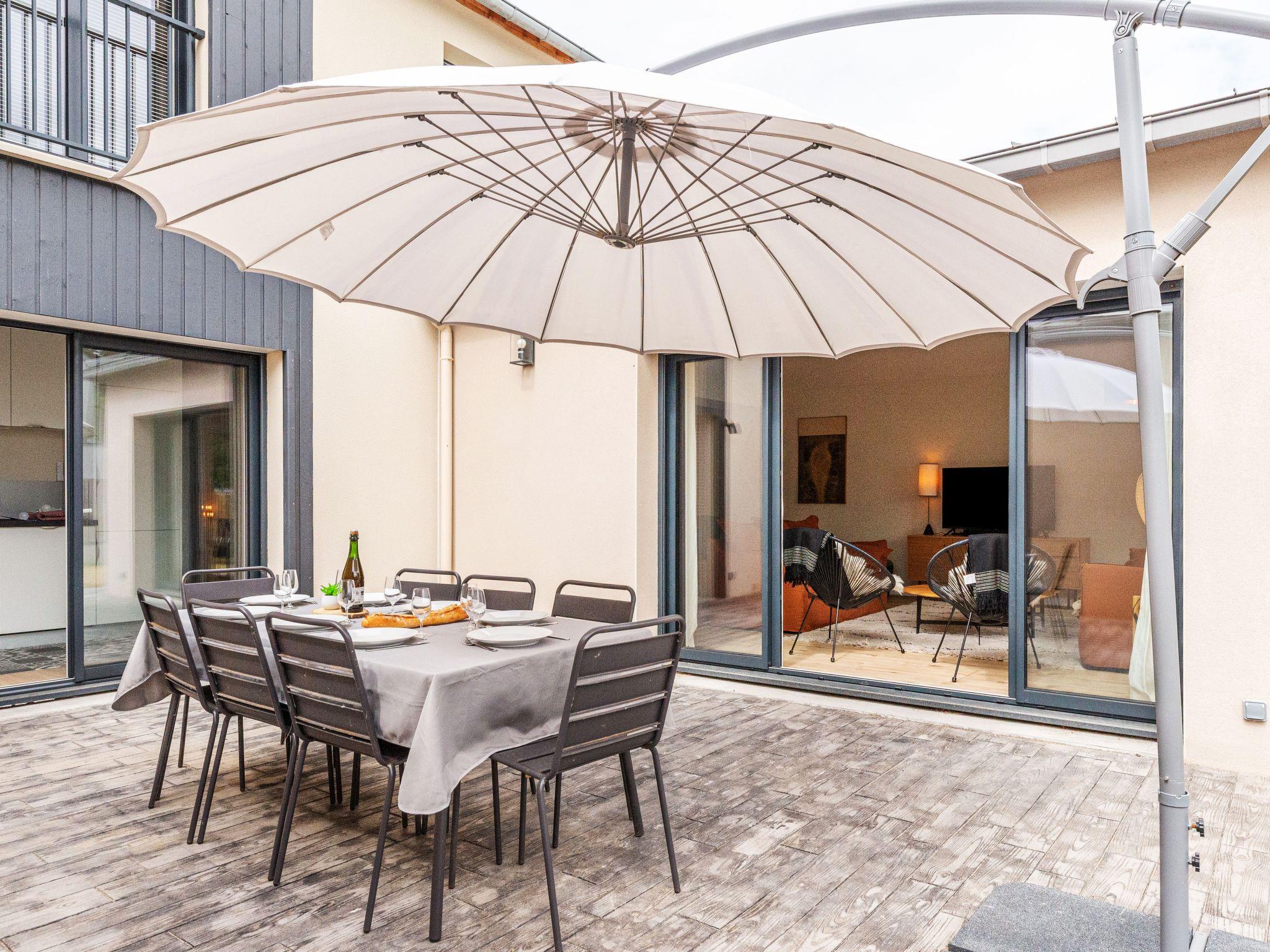 5-room terraced house 137 m2 on 2 levels. Comfortable and modern furnishings: living/dining room with TV (flat screen). Exit to the garden. 1 room with 1 double bed (160 cm, length 200 cm). Open kitchen (oven, dishwasher, 3 induction hot plates, toaster, kettle, microwave, electric coffee machine, Capsules for coffee machine (Nespresso) extra). Shower, sep. WC. Air-conditioning, forced-air heating. Upper floor: 2 rooms with Dressing room, each room with 2 beds (80 cm, length 200 cm). 1 room with Dressing room with 1 double bed (160 cm, length 200 cm). Bath/shower, 2 showers, 3 sep. WC's. Air-conditioning. Large terrace. Terrace furniture, barbecue. Facilities: washing machine, dryer, hair dryer. Internet (WiFi, free). Parking. Please note: suitable for families. Non-smoking house. Smoke alarm. Sonos soundbar. Ground floor bathroom PRM access. Offer by a private individual according to Art. 155, IV of CGI.