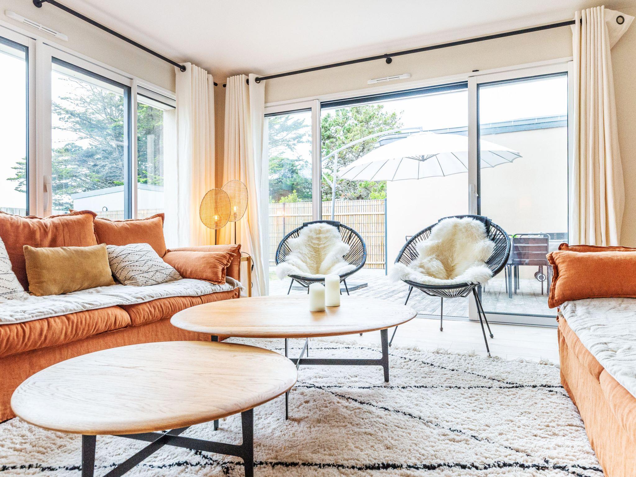 Terraced house "Maison les Dunes", built in 2021. In the resort 950 m from the centre of Saint-Lunaire, 50 m from the sea, from the beach, road to cross. Private: well-kept garden 100 m2 (fenced) with lawn. Terrace, garden furniture, barbecue, parking on the premises. Shop 1.3 km, grocery 1.3 km, supermarket 8 km, restaurant 1.3 km, bakery 950 m, café 900 m, bicycle rental 5.5 km, bus stop "Longchamp" 100 m, railway station "SNCF de Saint Malo" 16 km, ferry "Gare maritime du Naye" 16.3 km, sandy beach "de Longchamp" 50 m, indoor swimming pool 6 km, thermal baths "Thalasso de Dinard" 4.9 km. Sports harbour 6.1 km, golf course (18 hole) 1.4 km, tennis 1.3 km. Nearby attractions: Intramuros 16.7 km, Grand aquarium de St Malo 13 km, Cancale 27.8 km, Dinan 25.8 km, Cap Fréhel et Fort La Latte 31.5 km, Le Mont Saint Michel 56 km. The keys‘ handover takes place by the agency Interhome in Dinard, 3 km.