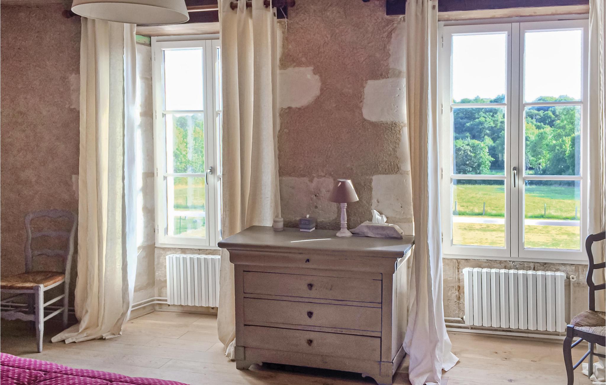 Til dette herlige feriehus hører en storslået swimmingpool og et stor, privat grund med plads til badminton og bordtennis. Den grundigt renoverede ejendom, der prydes af naturlige materialer som sten og træ, er meget komfortabelt indrettet og godt udstyret. I kan gå ture igennem den behagelige by Coulonges (4 km), hvor I også kan handle dagligvarer og i andre butikker. 11 km længere væk venter badebyen Chassenon. Ved Mervent har I et bredt udvalg af vandsportsaktiviteter, og I kan slentre igennem den gamle by af La Rochelle, der begge kann nås i en radius på 80 km. Fritids- og temaparken Puy du Fou sørger ligeledes for godt humør.